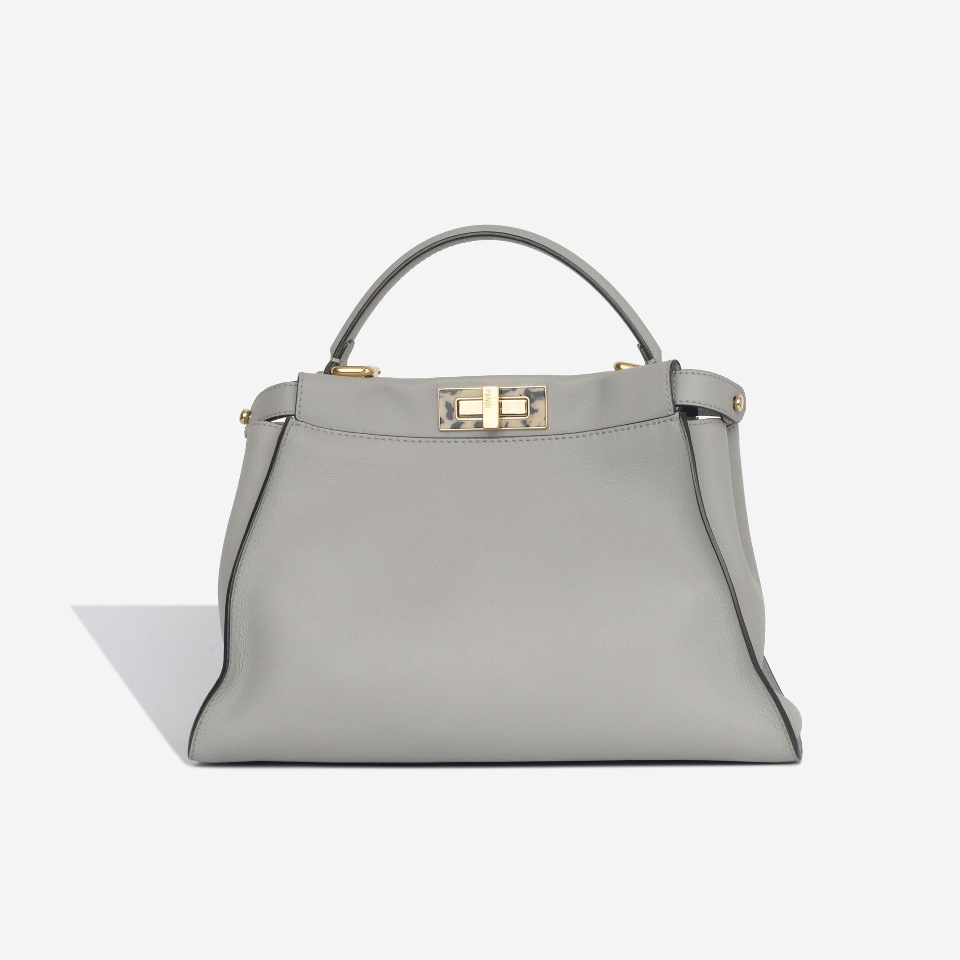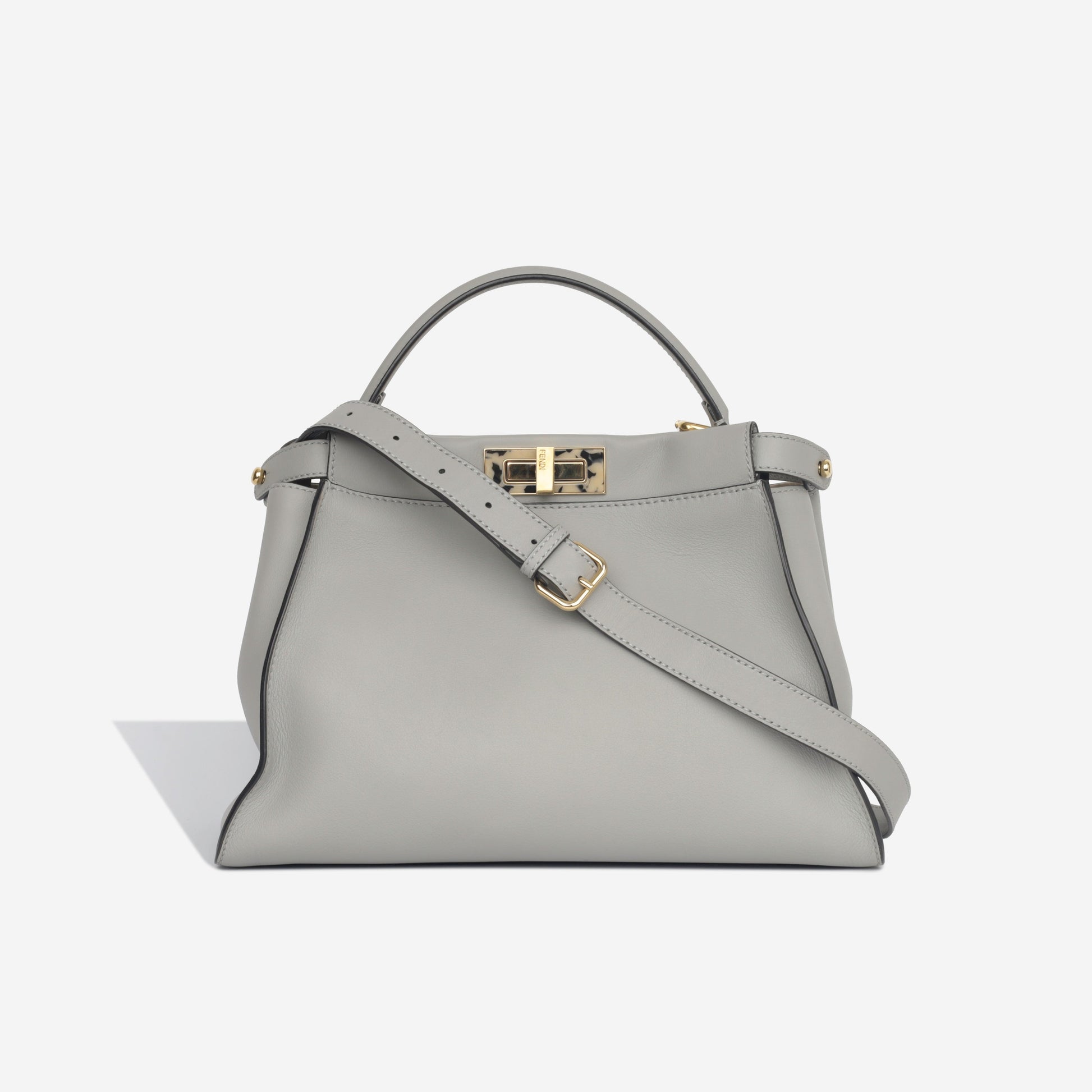 An iconic signature from the Italian fashion house, the Fendi Peekaboo is a timeless classic. Sleek, stylish and effortless, the Peekaboo is carefully crafted from smooth calfskin leather and accentuated with pale gold-tone hardware. The removable strap and light lambskin lining allows you to navigate the contents of the bag easily.