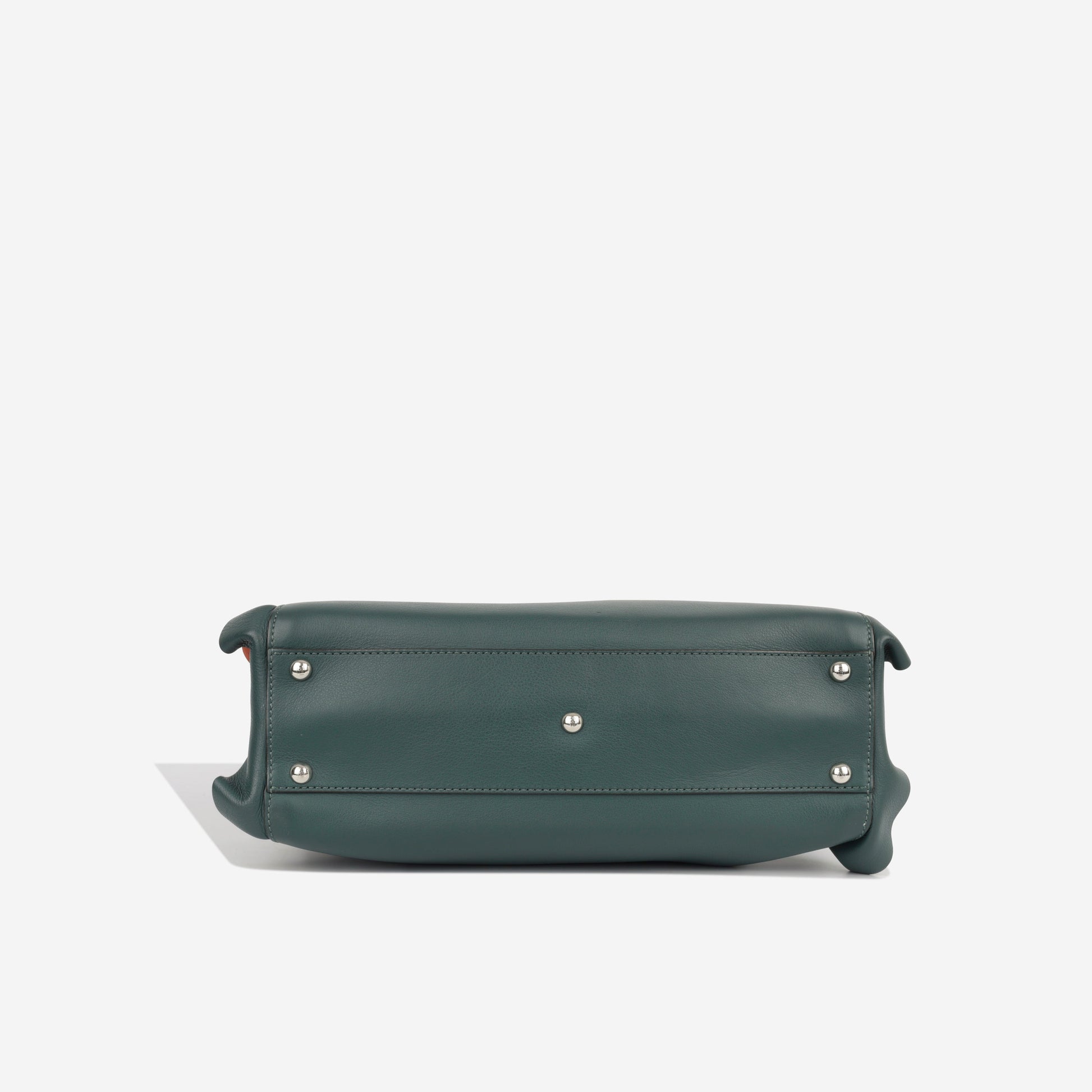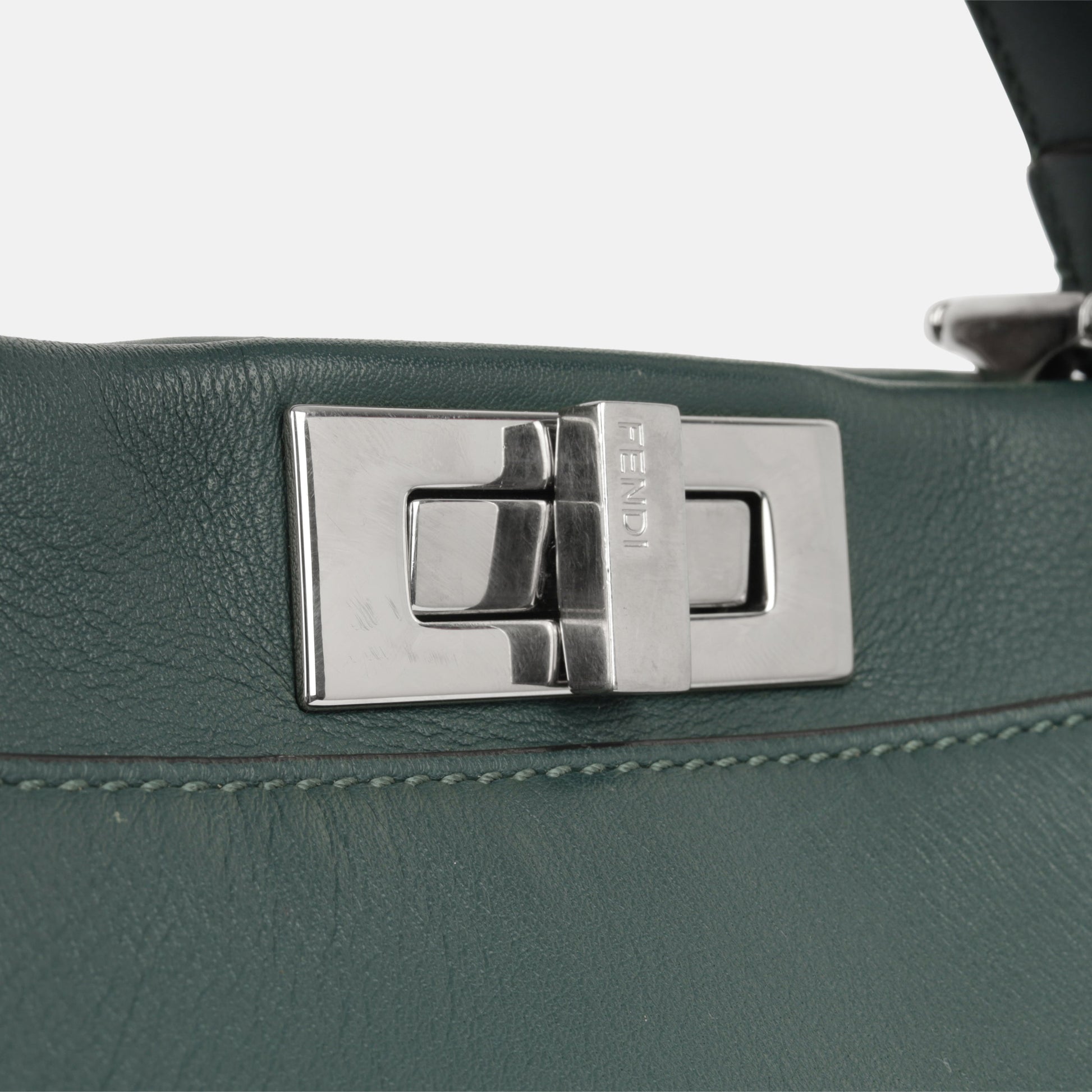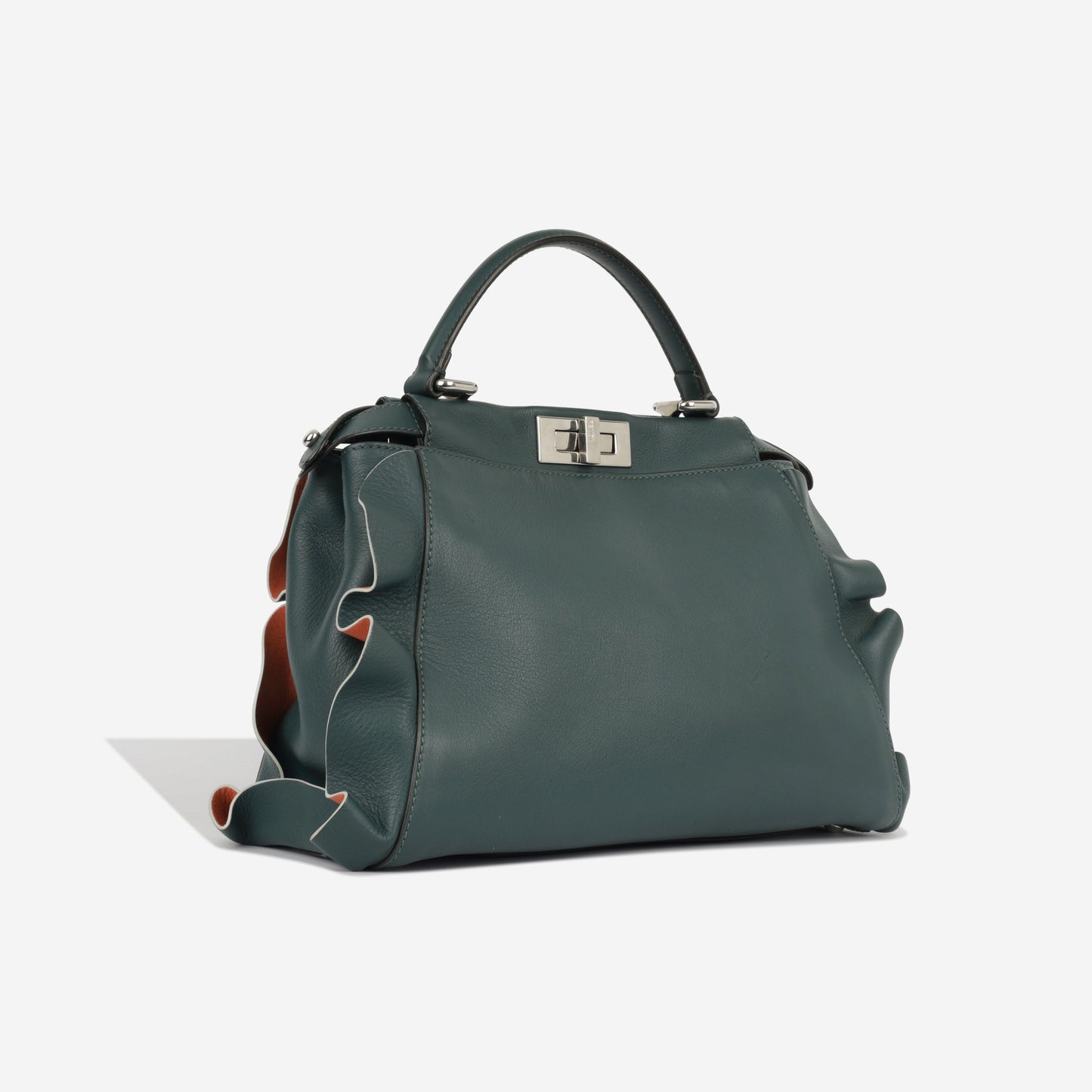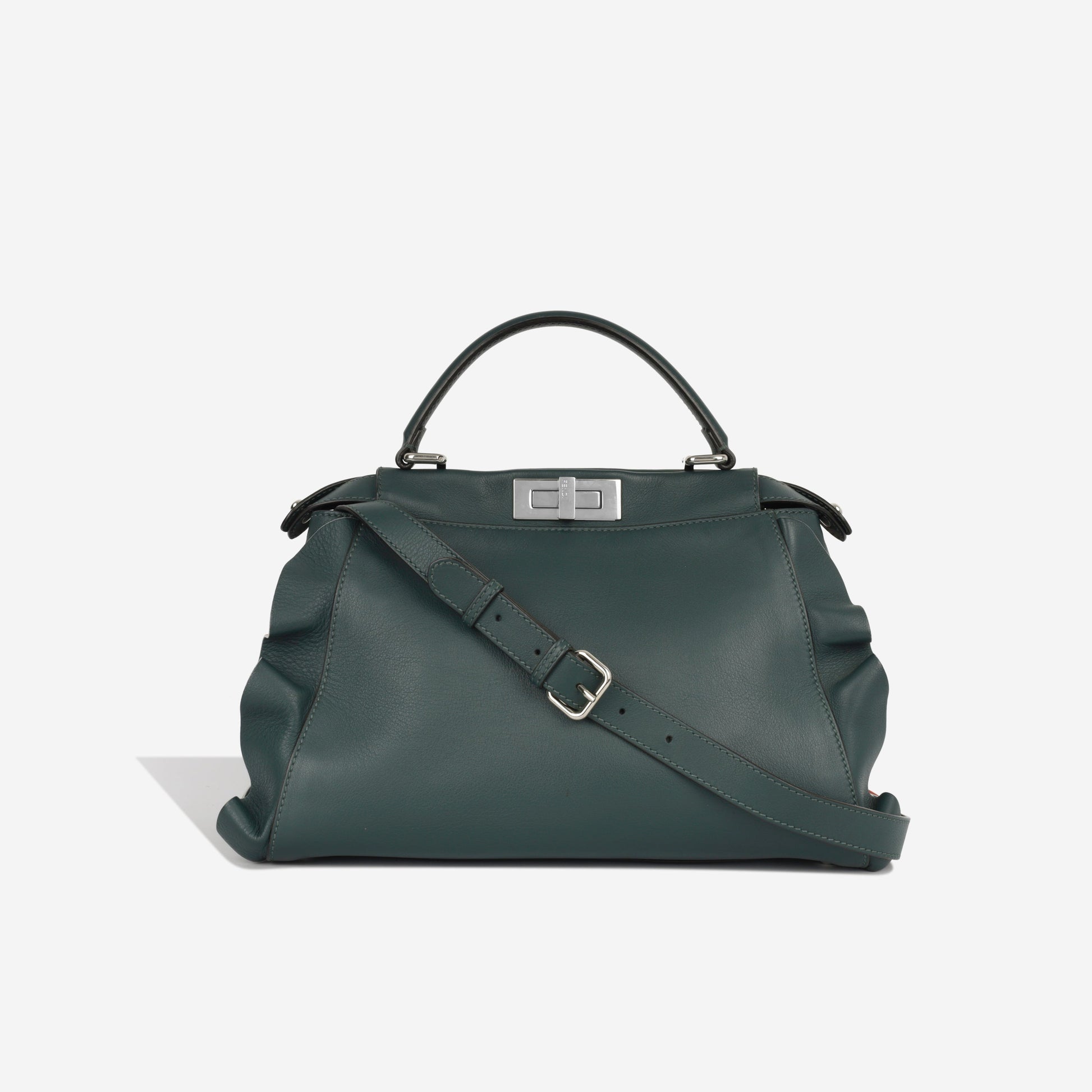 An iconic signature from the Italian fashion house, the Fendi Peekaboo is a timeless classic that will never go out of style. Sleek, stylish and effortlessly chic in the most discreet way possible, the Peekaboo was made for the refined woman with a love for luxury and an understated sense of style. This is the Wave edition, featuring gathered leather to outline the edges of the bag. Carefully crafted from grained teal nappa leather and palladium hardware, the Peekaboo is an accessory that will compliment any and every outfit for any and every occasion.