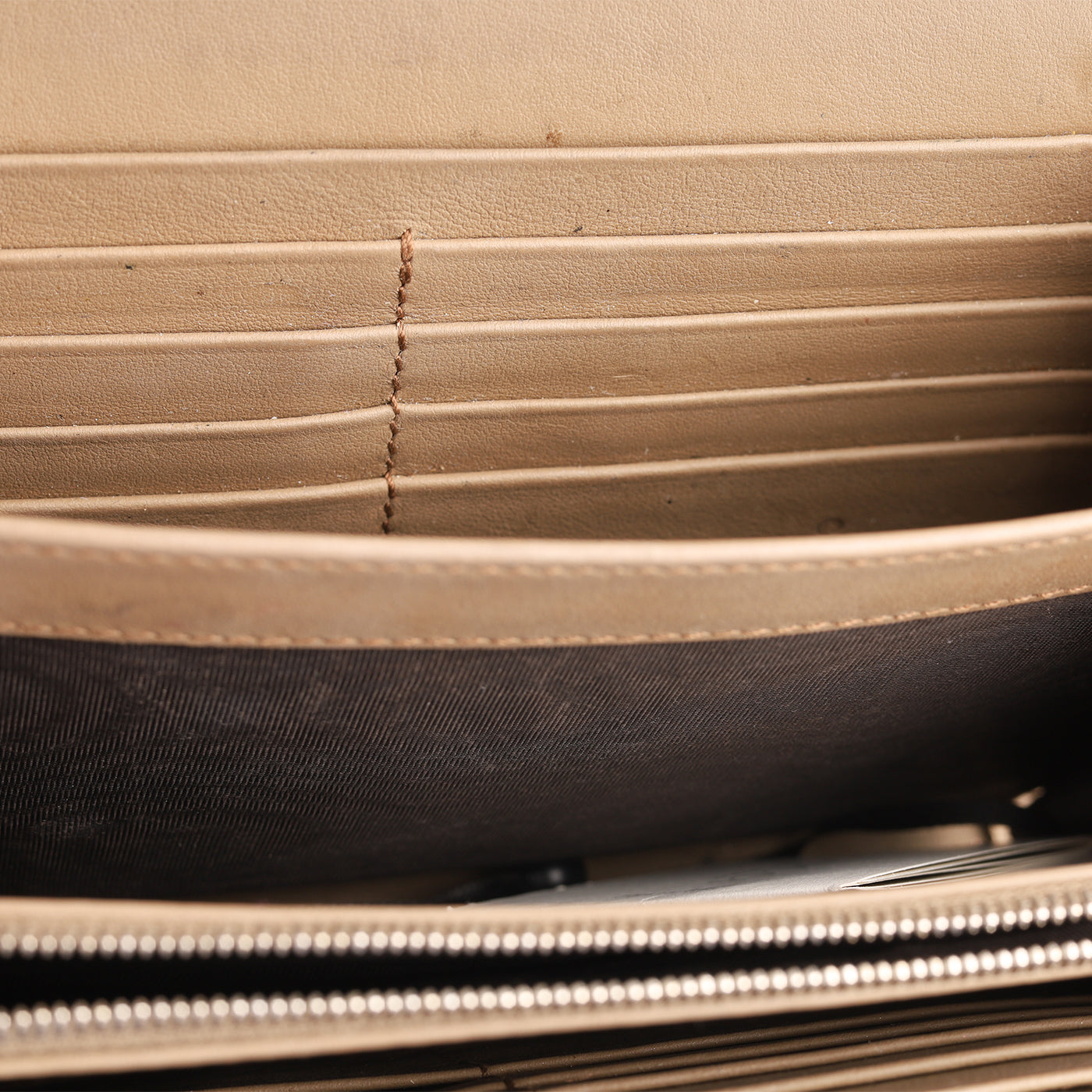 The very popular Gucci signature GG motif has been worked into the classic Dionysus WOC. Made in Italy the Dionysus shoulder bag is suspended from a shoulder chain that can be worn multiple ways. The tiger head remains an eye catching feature on this defining silhouette. The Dionysus WOC is the perfect statement handbag to be added to any collection, and perfect classic piece for your next night out.