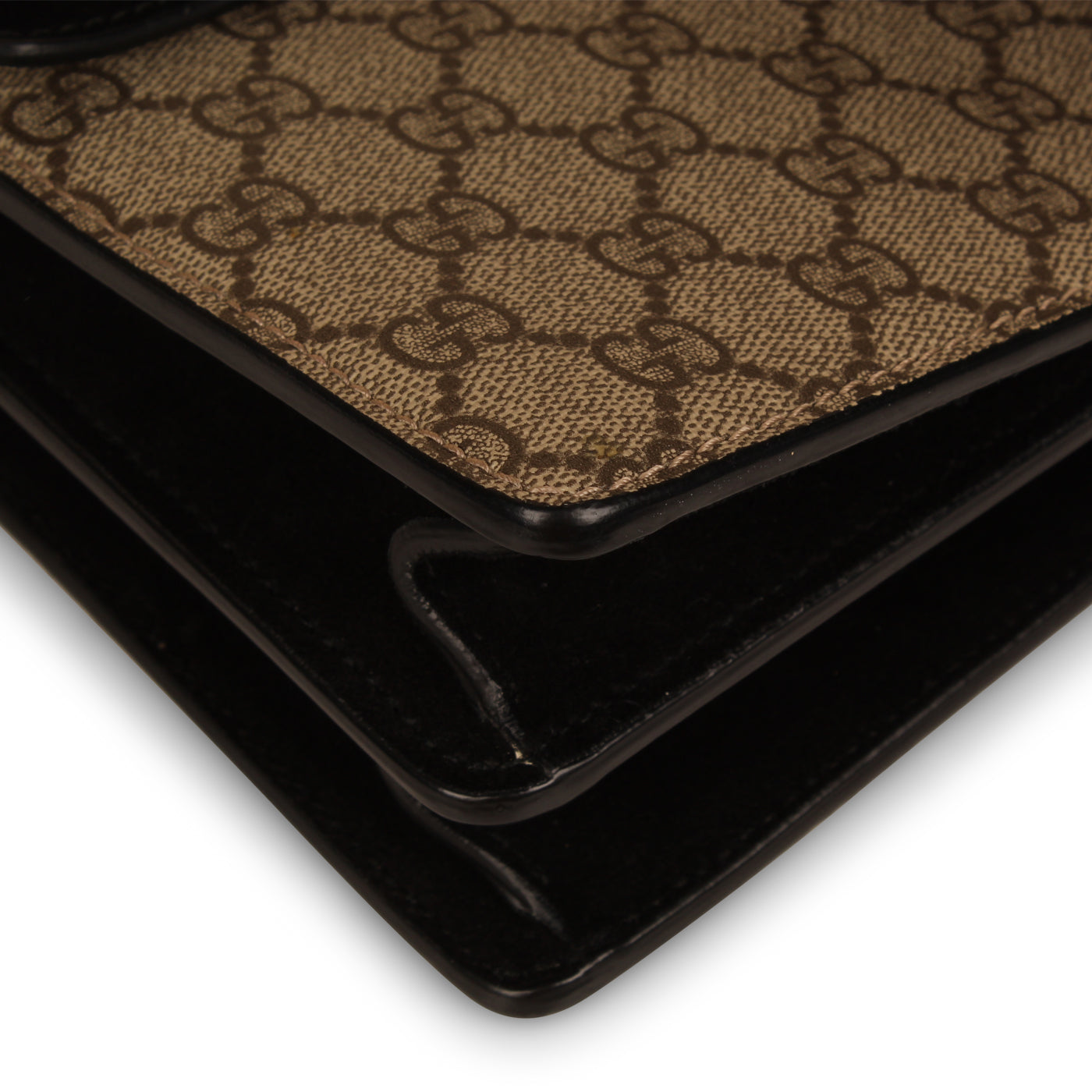 Inspired by the Greek God of wine and celebration, the Gucci Dionysus is an absolute must have for any woman with a love for luxury and a special spot for monograms. An instant classic, the Dionysus has become one of the most coveted bags of the past five years. The perfect companion for any and every occasion, you can easily pair your Dionysus with anything in your wardrobe. Decorated with the GG Supreme print and the signature tiger clasp, this shoulder bag can easily fit all your every day essentials comfortably inside. Sleek, stylish and sophisticated, this stunning bag is the perfect balance between feminine and edgy. A classic piece you'll have for life, the Dionysus is one you'll never fall out of love with.