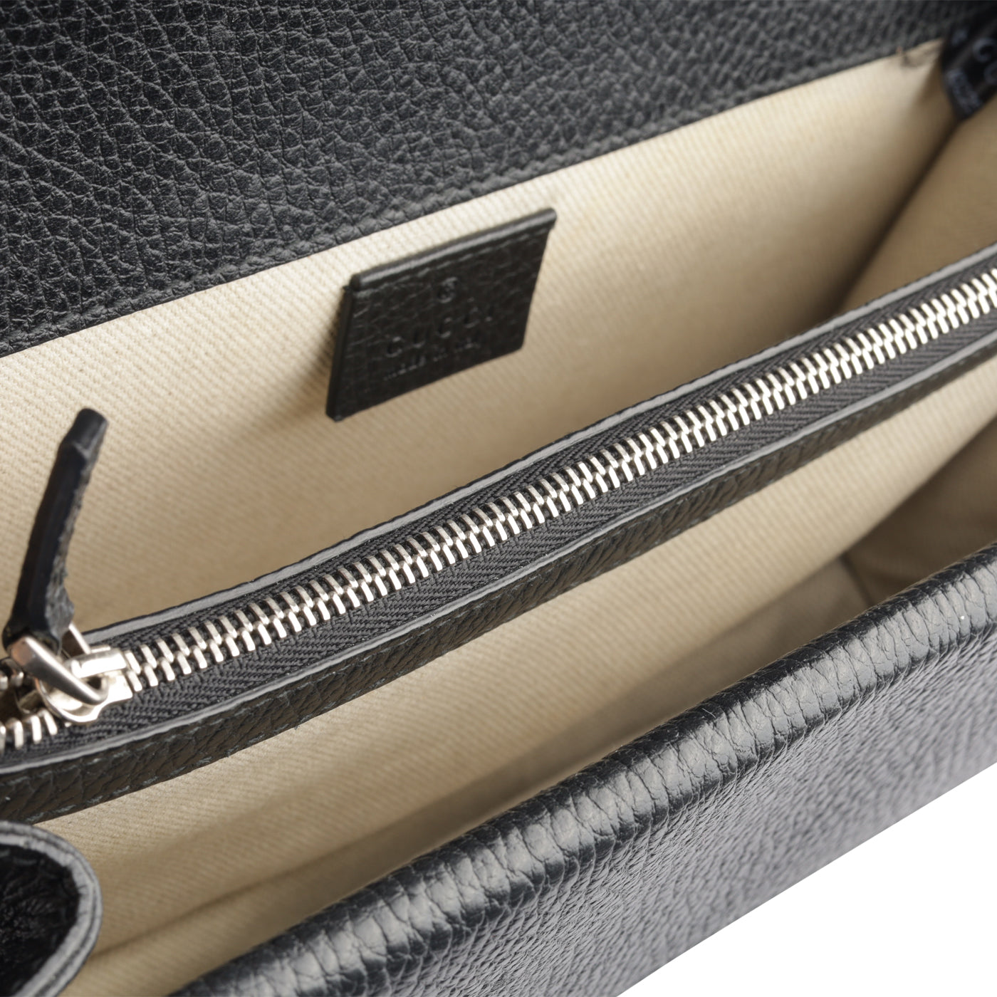 - Gucci embossed leather logo tag