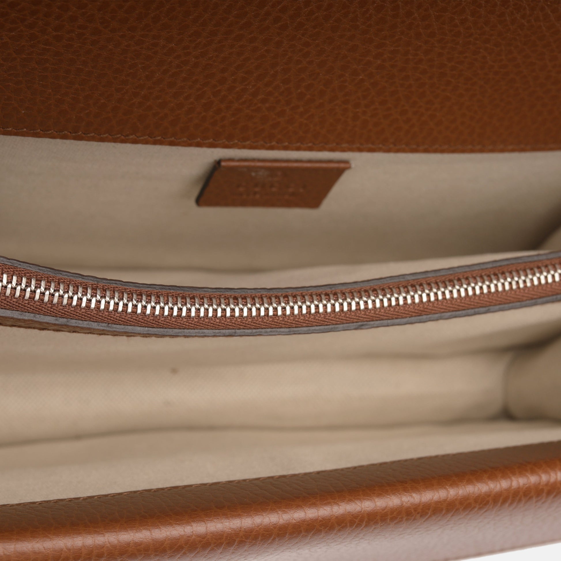 - Gucci embossed leather logo tag
