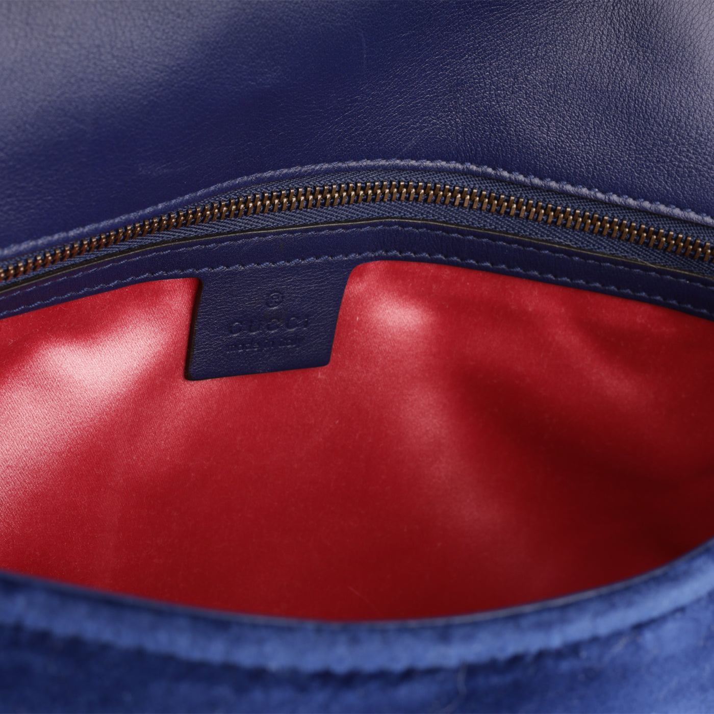 - Gucci embossed leather logo tag