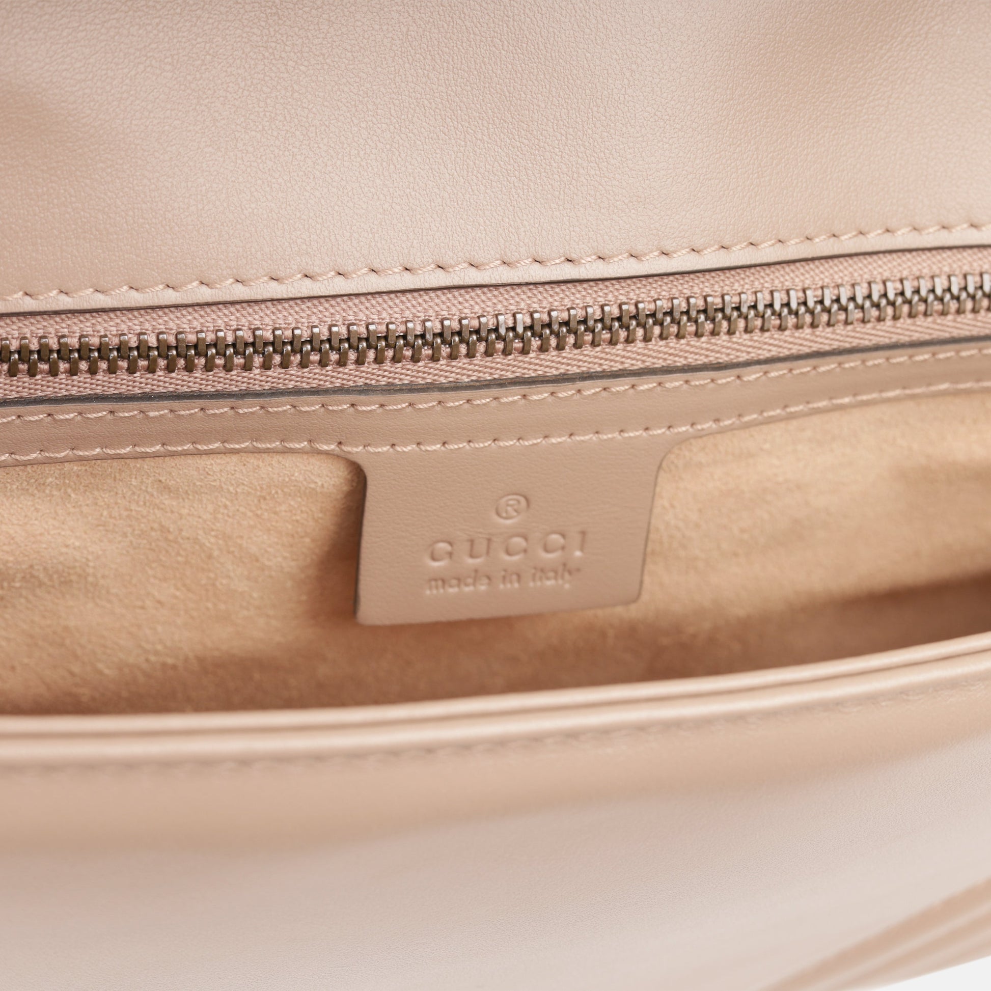 The softly structured and�beautifully crafter medium marmont bag by Gucci is a firm favourite at Bagista for both it's iconic, striking details and it's everyday usability factor! The buttery soft matelass� leather has been quilted expertly in Gucci's signature chevron detailing and is finished in a perfectly�neutral nude tone, making it the perfect addition to you AW22 wardrobe.��