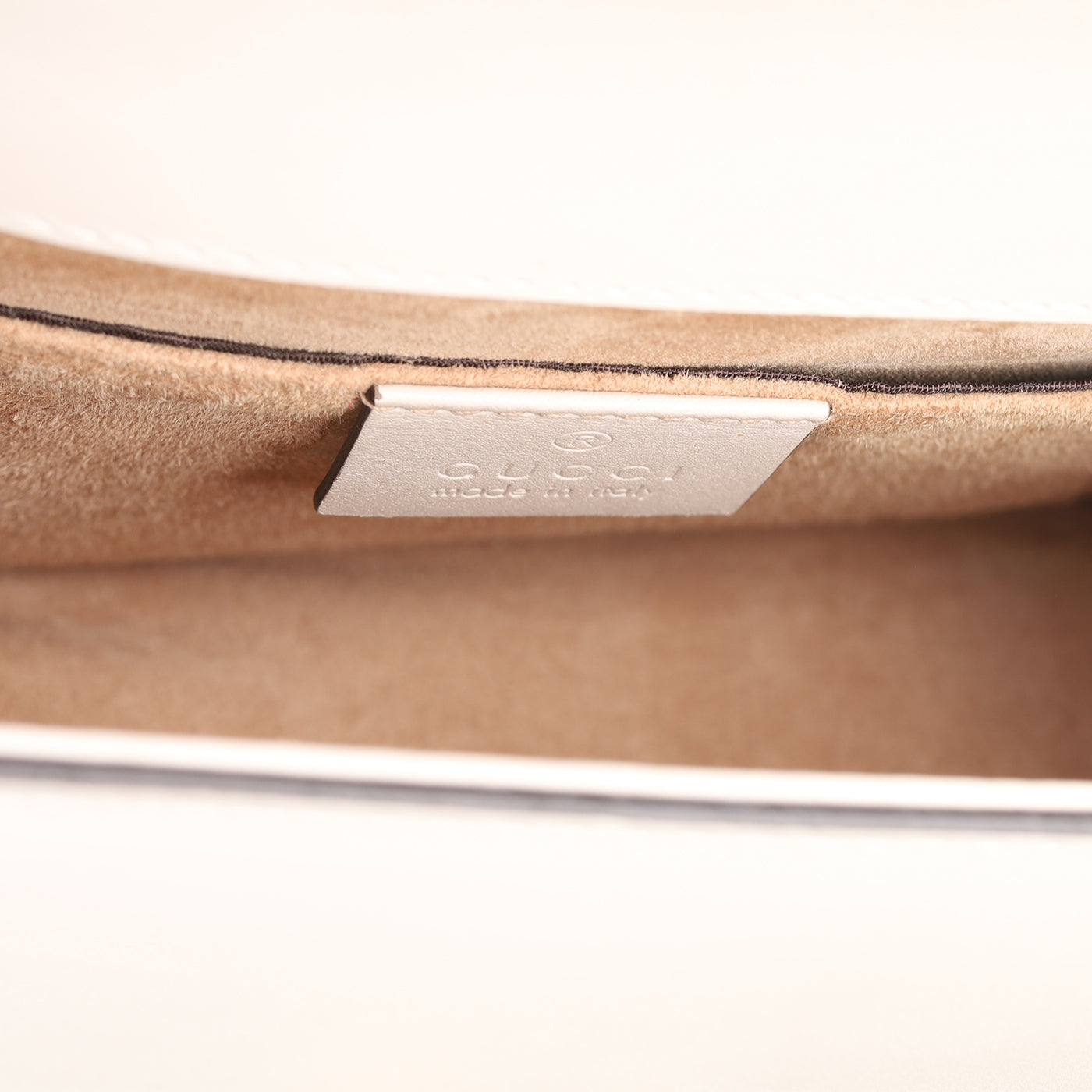 The Gucci Sylvie is one of those bags that became a classic the moment it landed in stores. Featuring the brand�s signature green and red front fabric stripe and a�charming gold tone hardware chain strap, this mini Gucci is an absolute must-have.