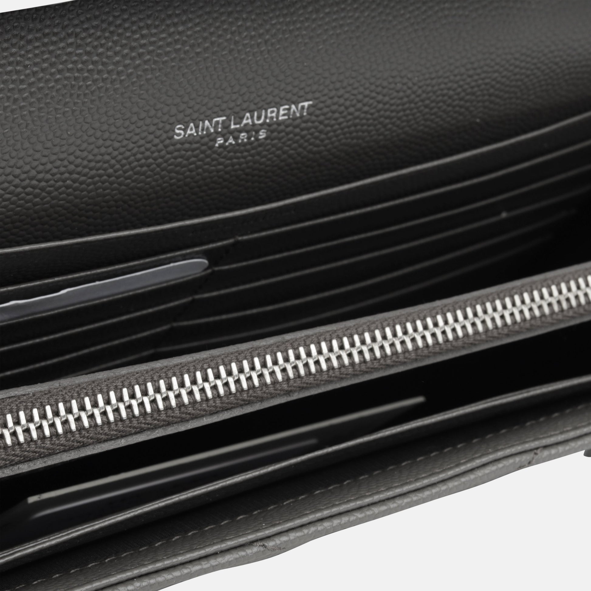 A classic piece from Saint Laurent, the Cassandre wallet-on-chain is the ideal accessory to compliment any look from day to night. Carefully crafted from grained, grey calfskin leather with a matelassé design, featuring a delicate silver chain and prominent YSL logo - this bag is suitable for any occasion.
