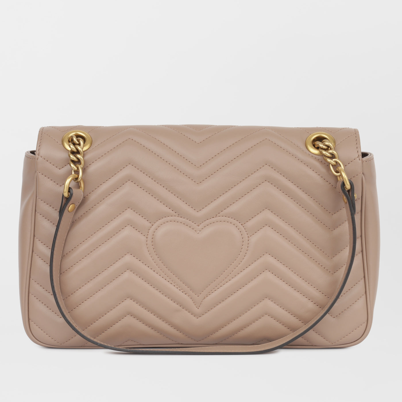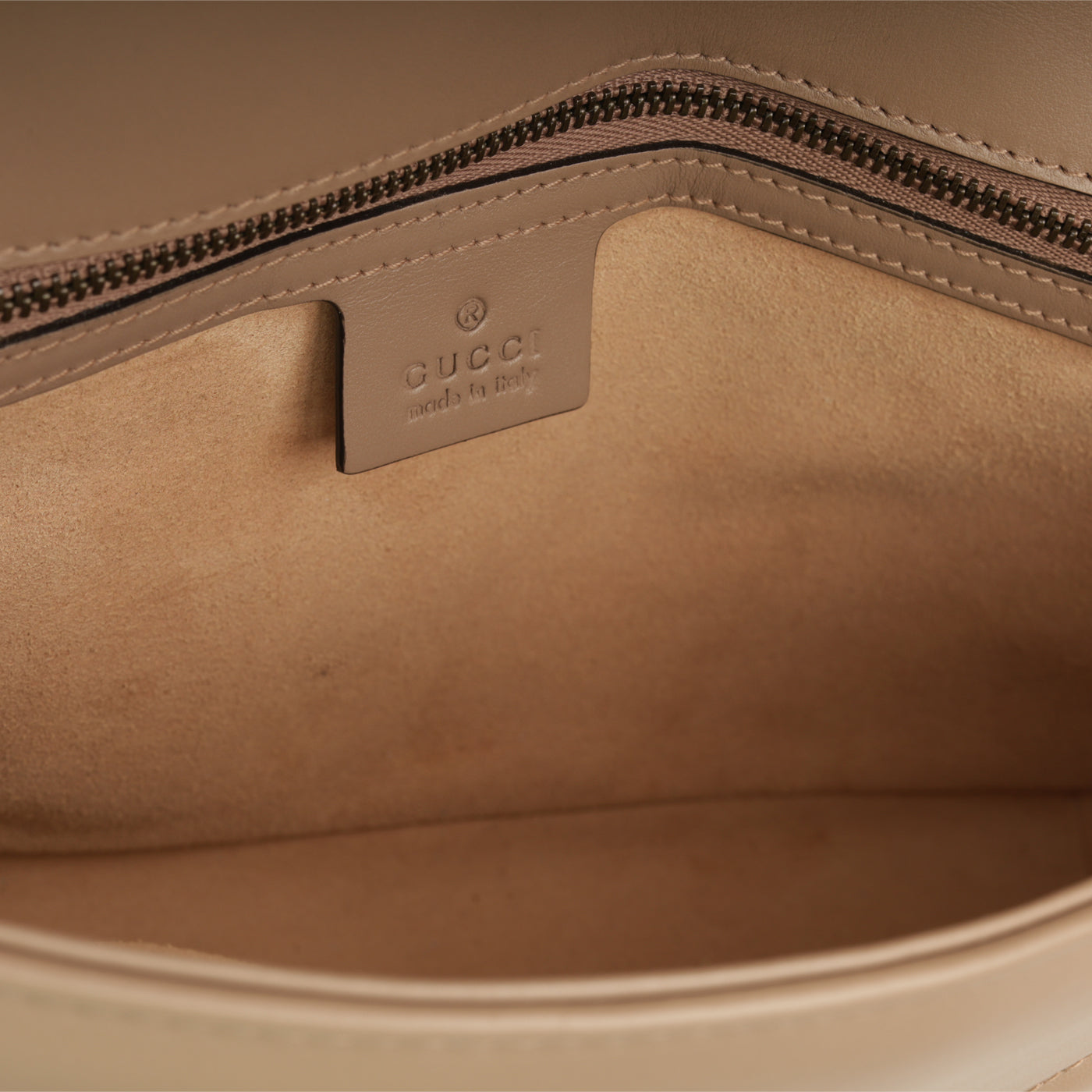 The softly structured and�beautifully crafter medium marmont bag by Gucci is a firm favourite at Bagista for both it's iconic, striking details and it's everyday usability factor! The buttery soft matelass� leather has been quilted expertly in Gucci's signature chevron detailing and is finished in a perfectly�neutral nude tone, making it the perfect addition to you AW22 wardrobe.��