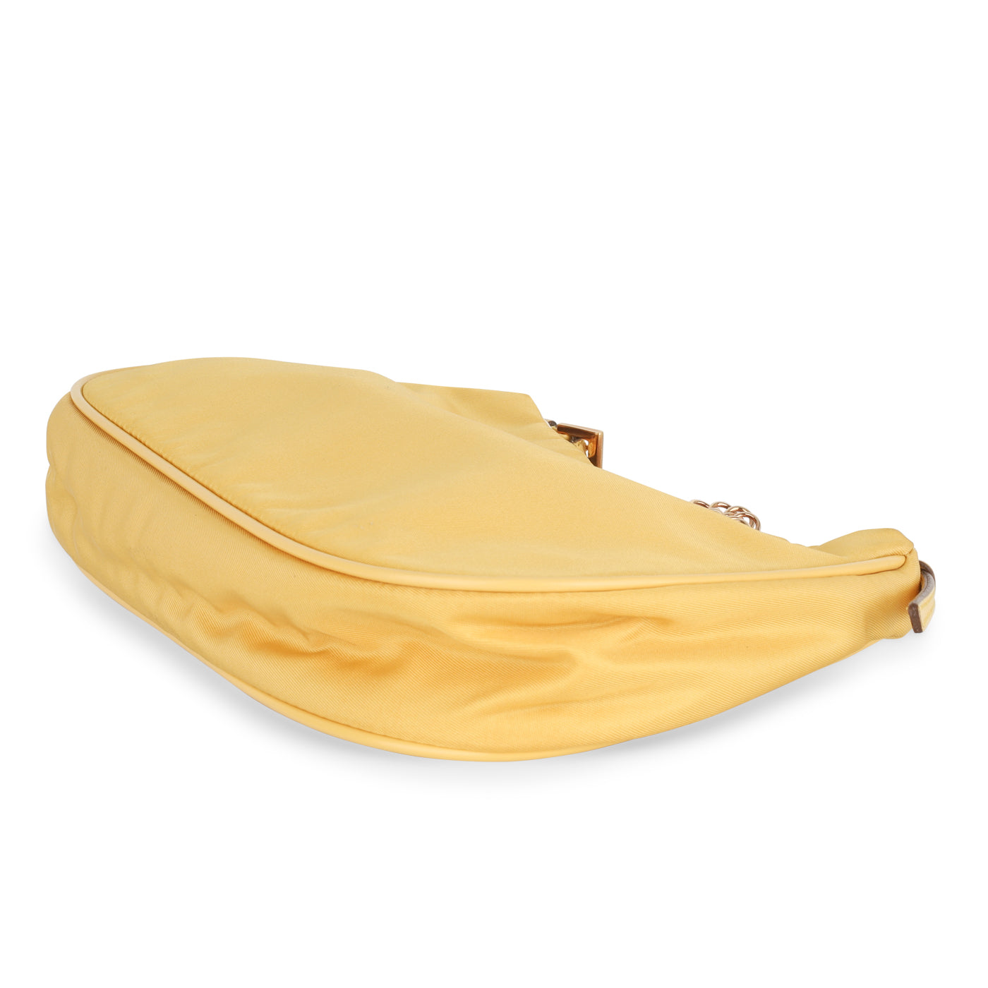The sweetest spring shoulder bag from Prada is crafted in yellow nylon and features a gold removable shoulder chain. The mini bag trend is back and this vintage piece will fit right in with your style today. Its small but practical enough to carry around all your essential items throughout the day, or through to the evening.