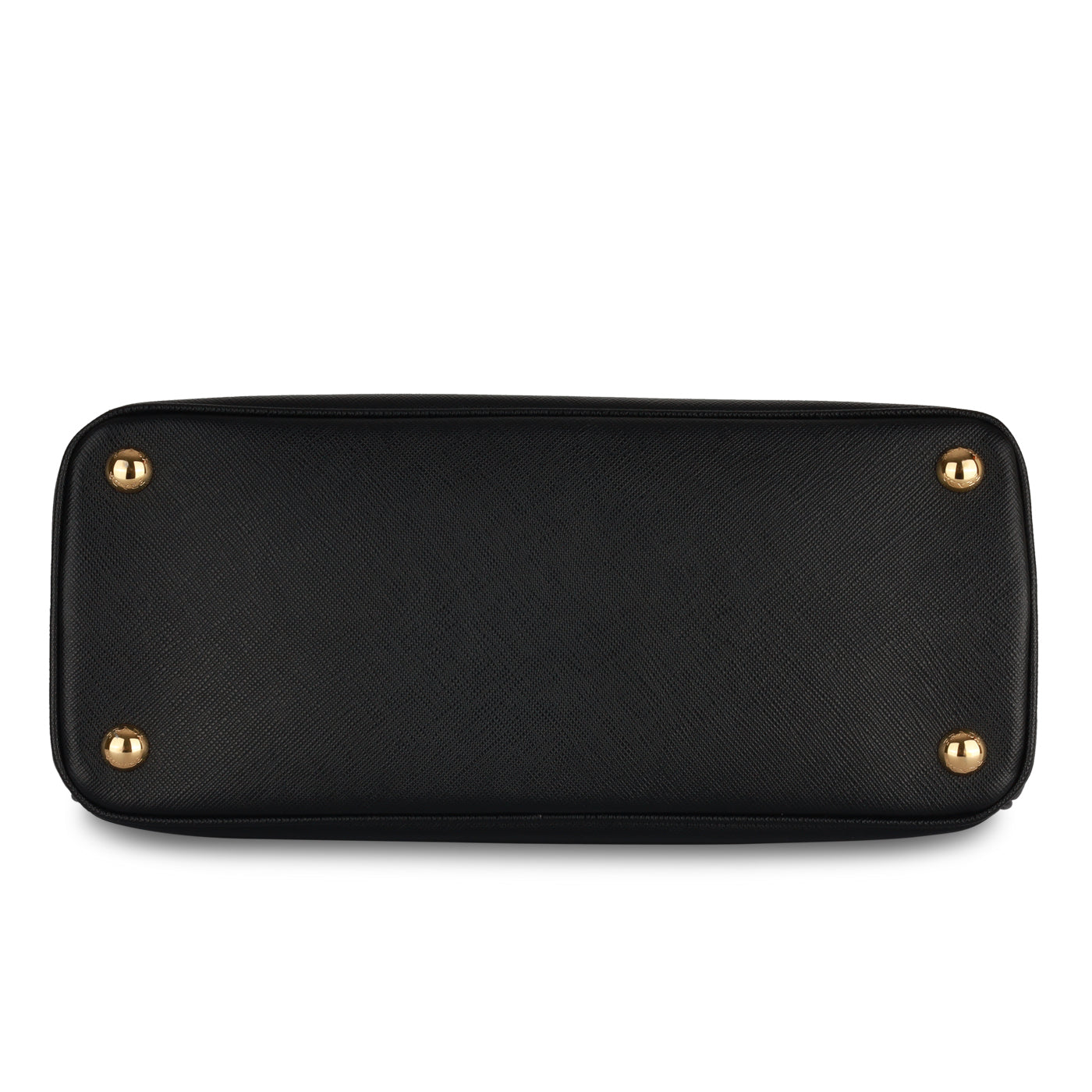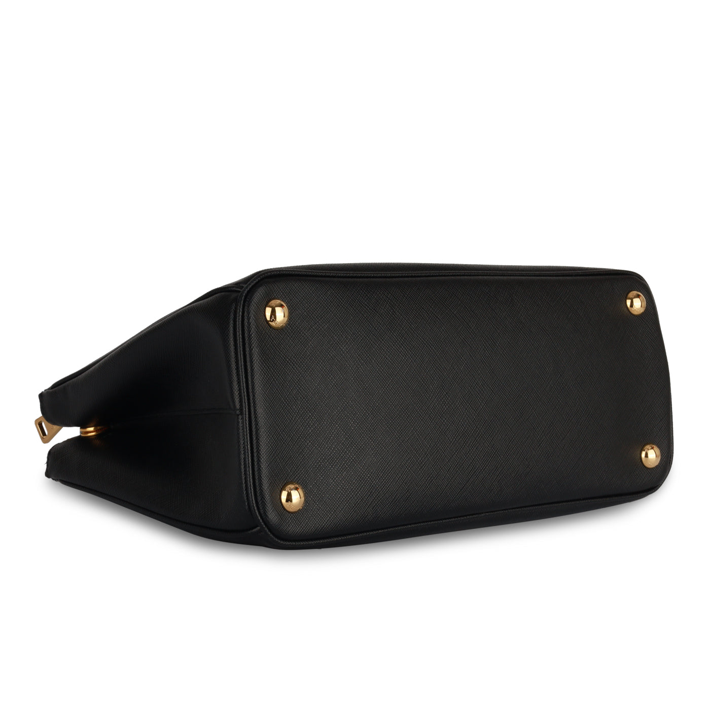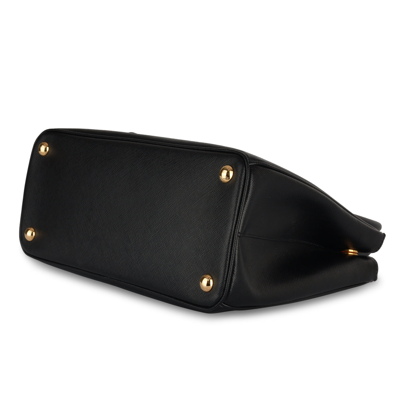For a compact and chic city accessory, this Prada Galleria is the perfect choice. Although a small bag, it is large enough to hold all of your essentials and comes complete with a detachable shoulder strap, making it an ideal choice for a day to evening bag. Crafted out of luxurious classic black Saffiano leather, and complete with gold hardware, this bag displays the Italian craftsmanship the brand is known for.