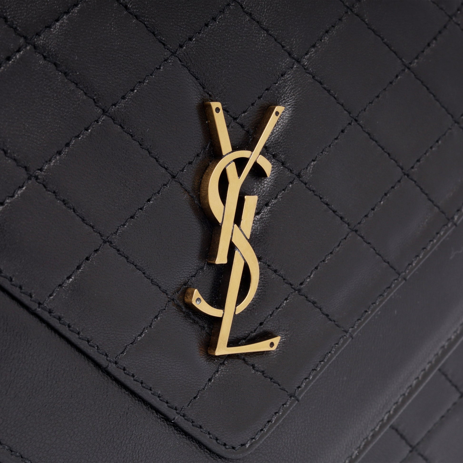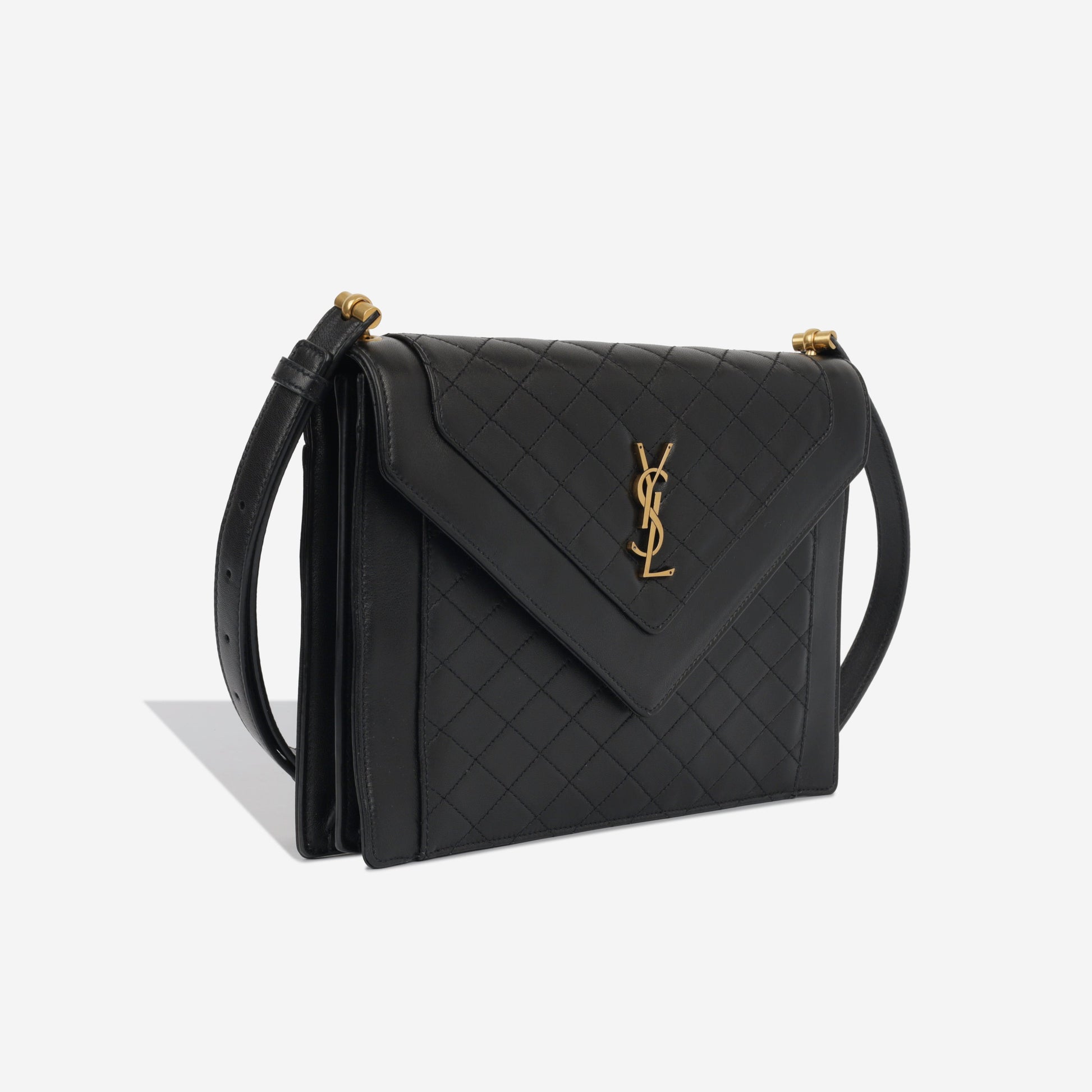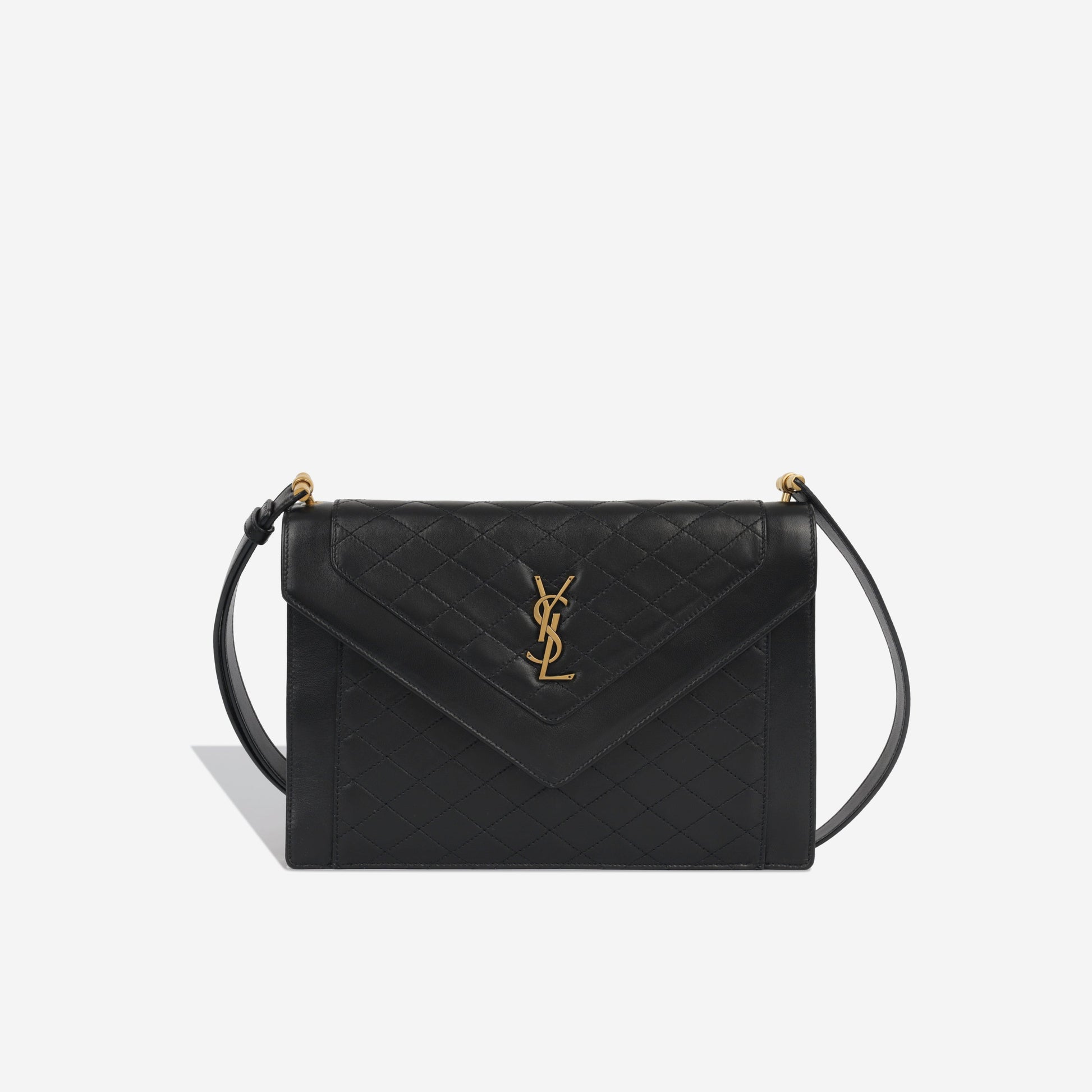 Perfect for any woman with a love for luxury, the Gaby Satchel bag is the one for you. Slim, streamline and sophisticated, this bag is crafted in smooth lambskin black leather and complimented by antique gold-tone hardware, this is suitable for every occasion, day or night.