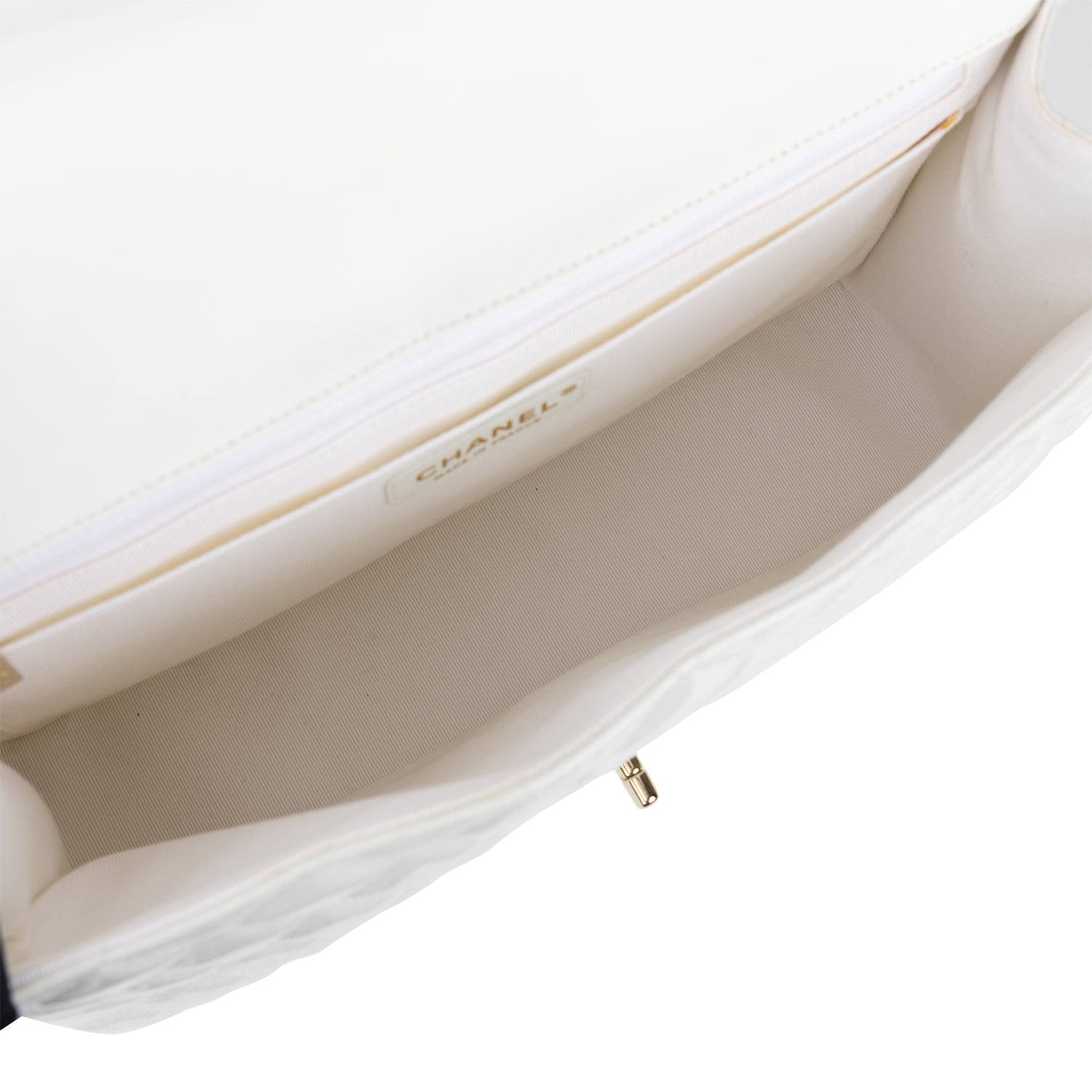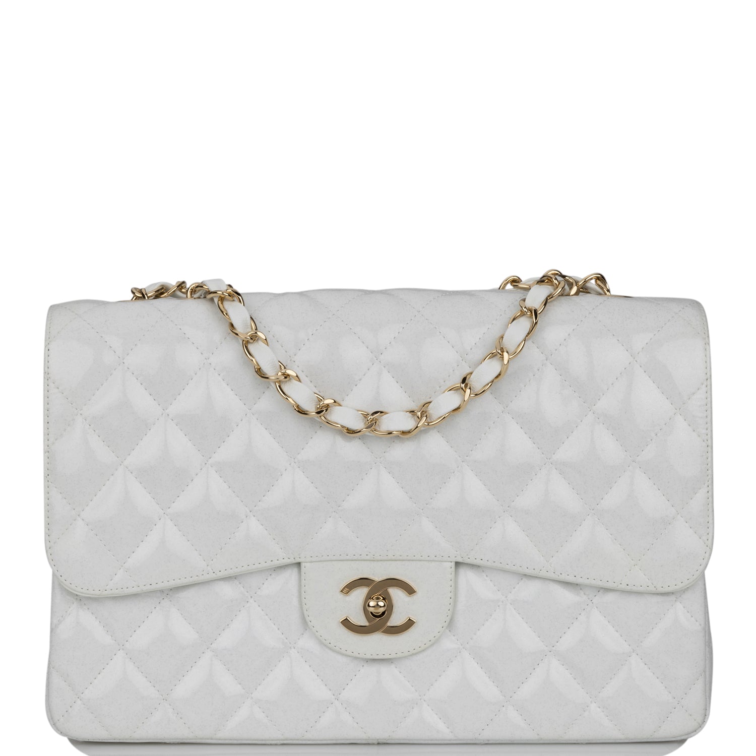 Chanel Jumbo Classic Single Flap Bag White Glitter Patent Leather Gold Hardware
