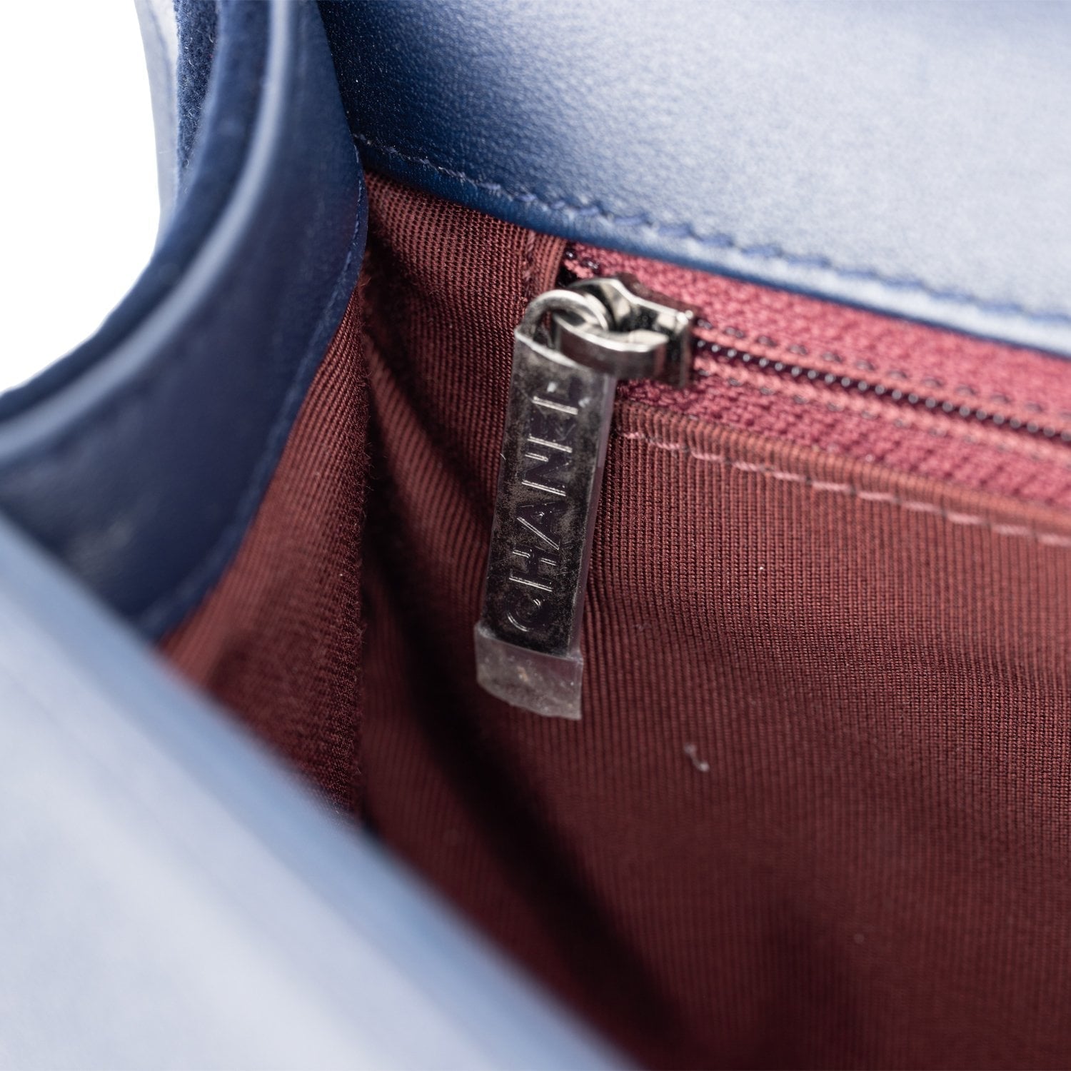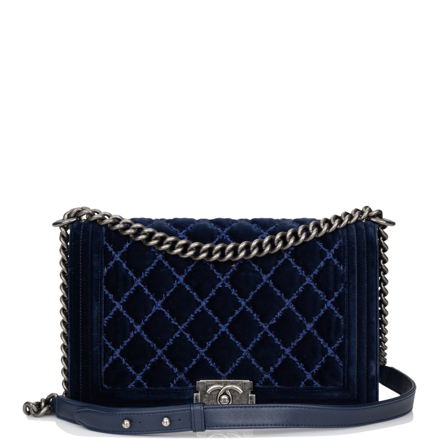 Chanel Large Boy Bag Blue Velvet Ruthenium Hardware