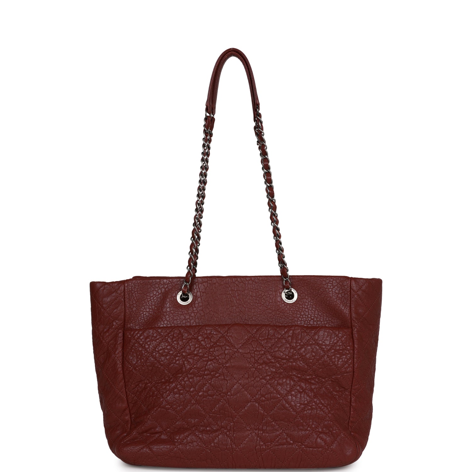 Chanel Large Duo Tote Bag Burgundy Calfskin Ruthenium Hardware