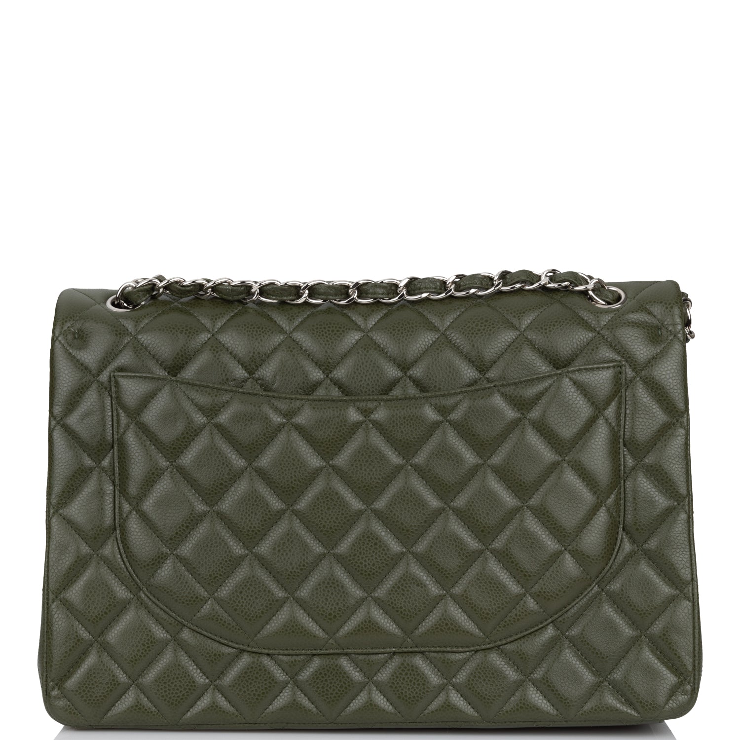 Chanel Maxi Classic Double Flap Bag Dark Green Caviar Silver Hardware