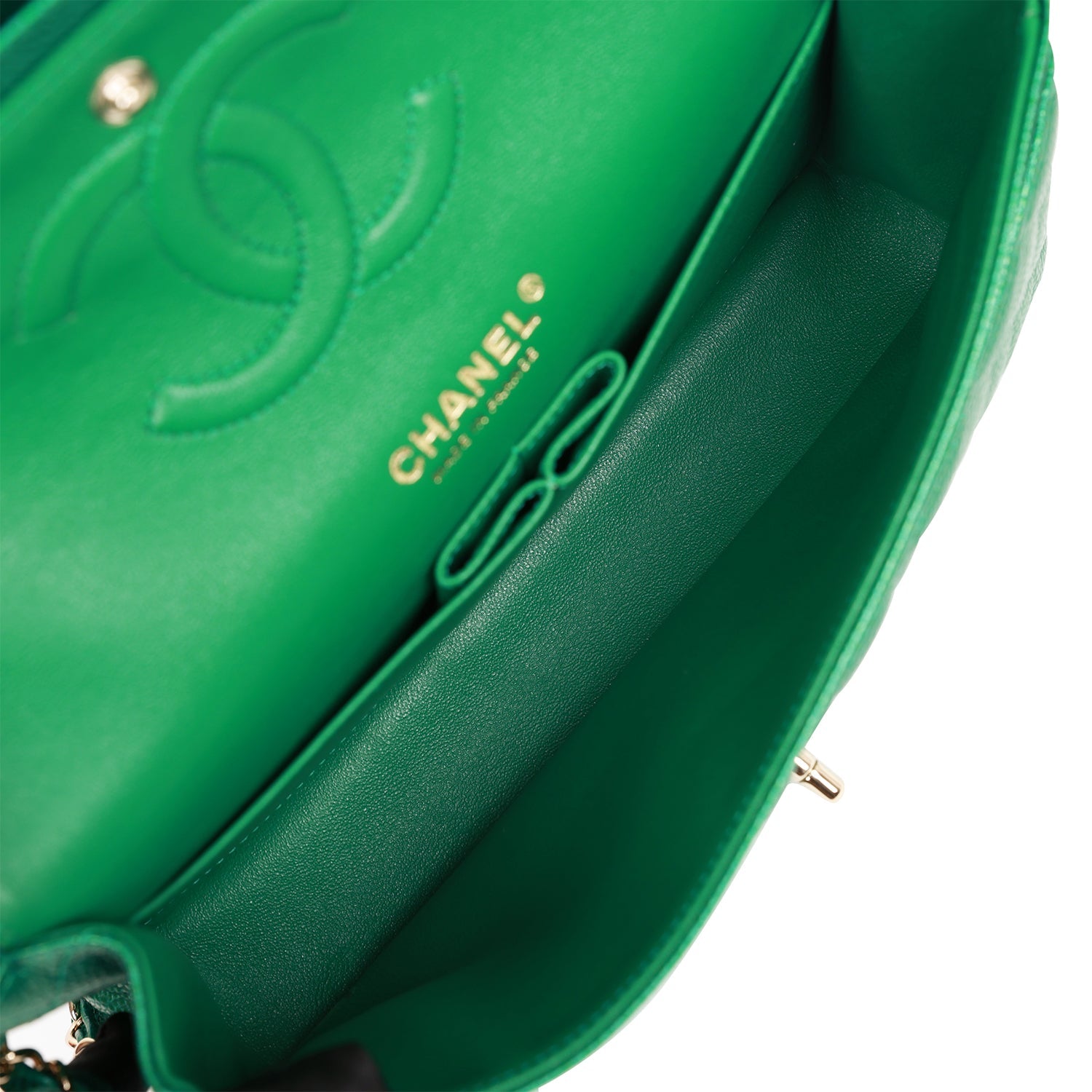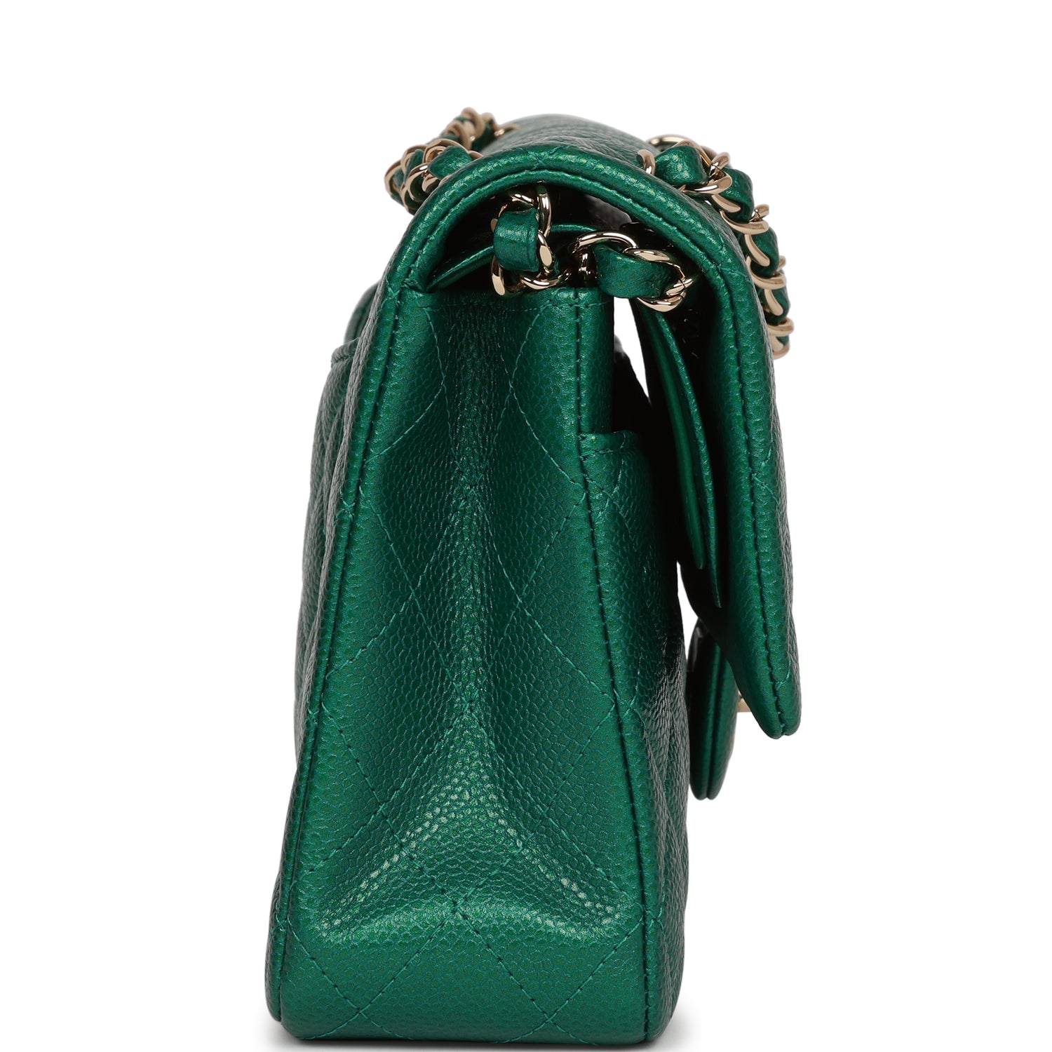 Chanel Medium Classic Double Flap Bag Green Metallic Caviar Light Gold Hardware