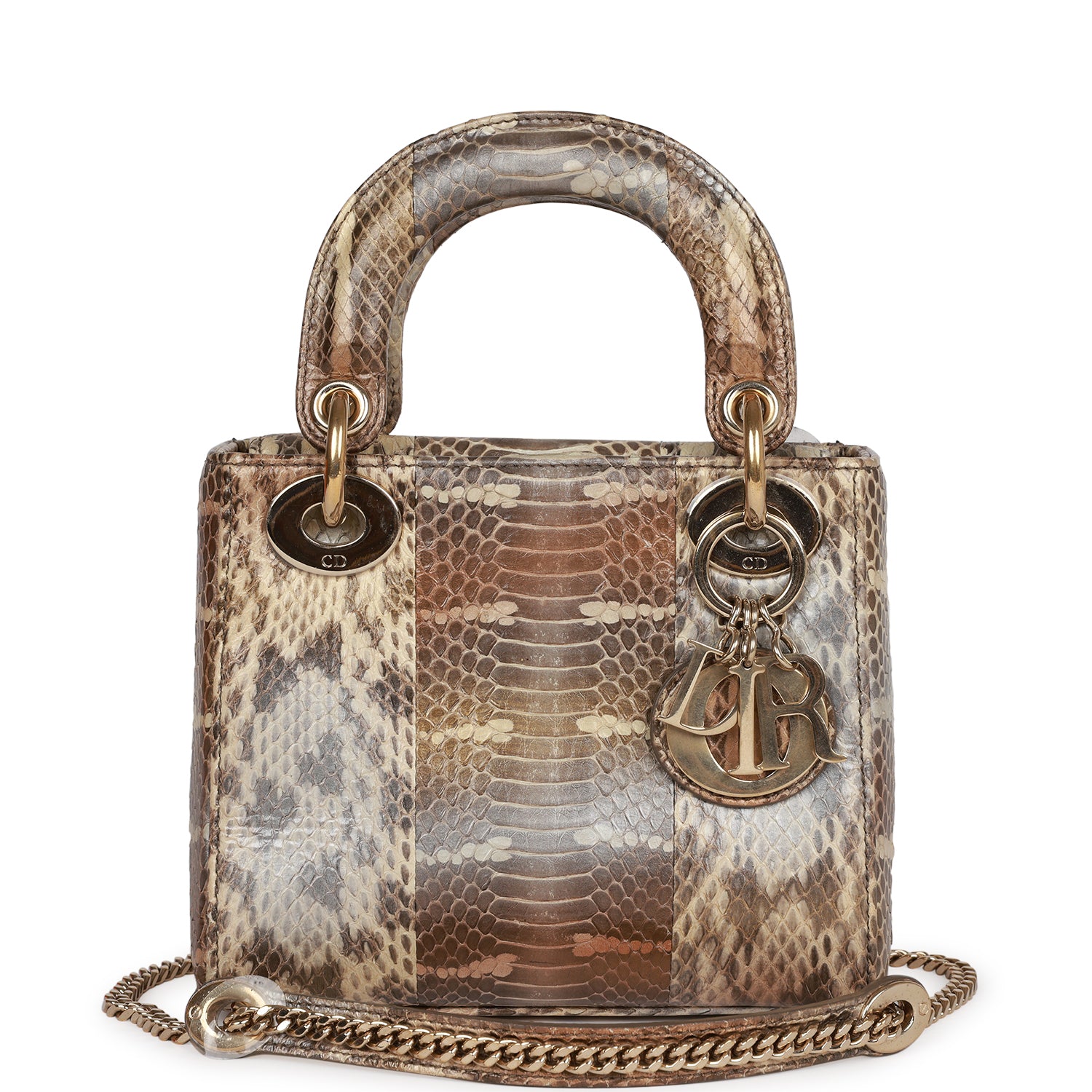 Christian Dior Mini Lady Dior Tote Python Gold Hardware