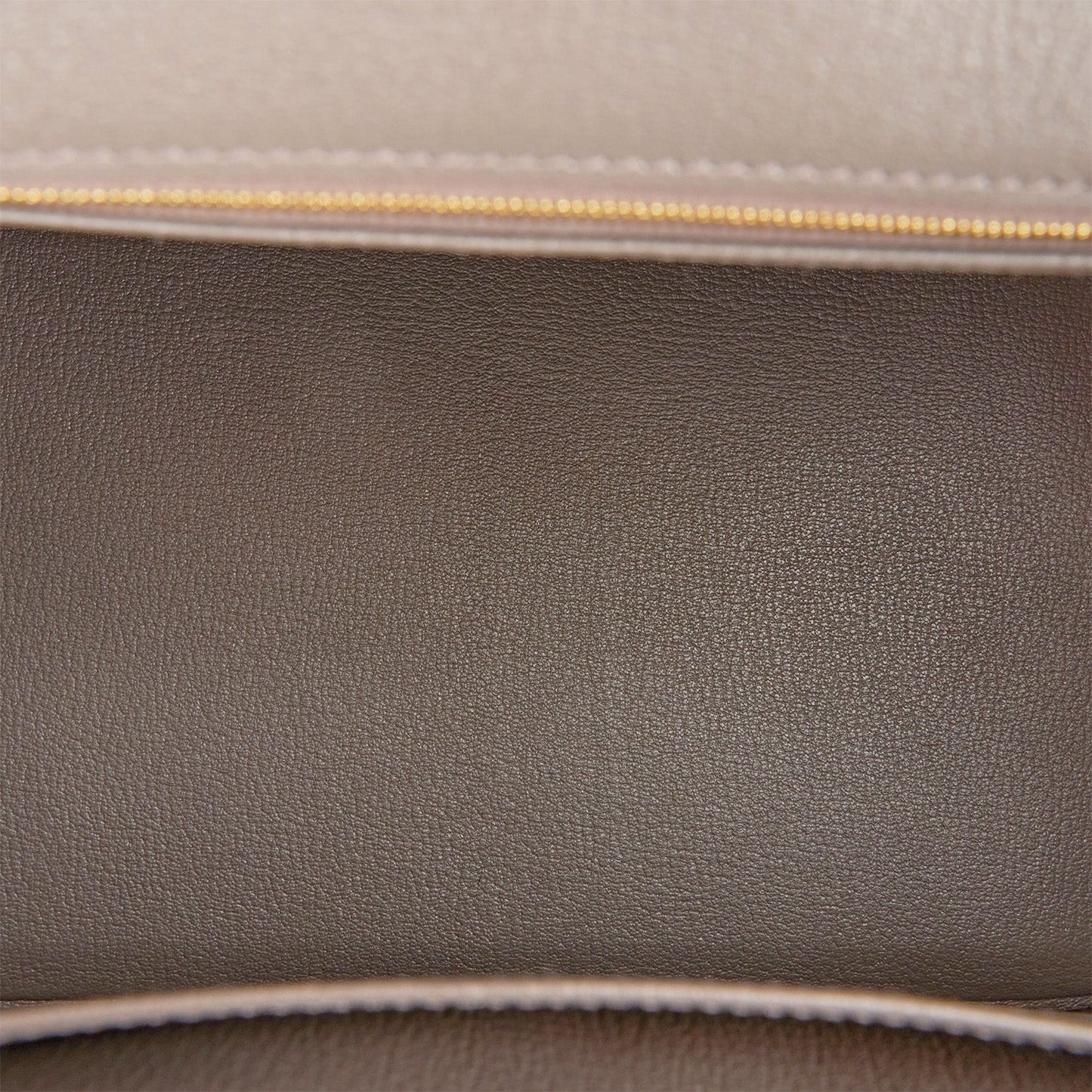 This Birkin is in Etain togo leather with gold hardware and has tonal stitching, two straps with front toggle closure, clochette with lock and two keys and double rolled handles.
