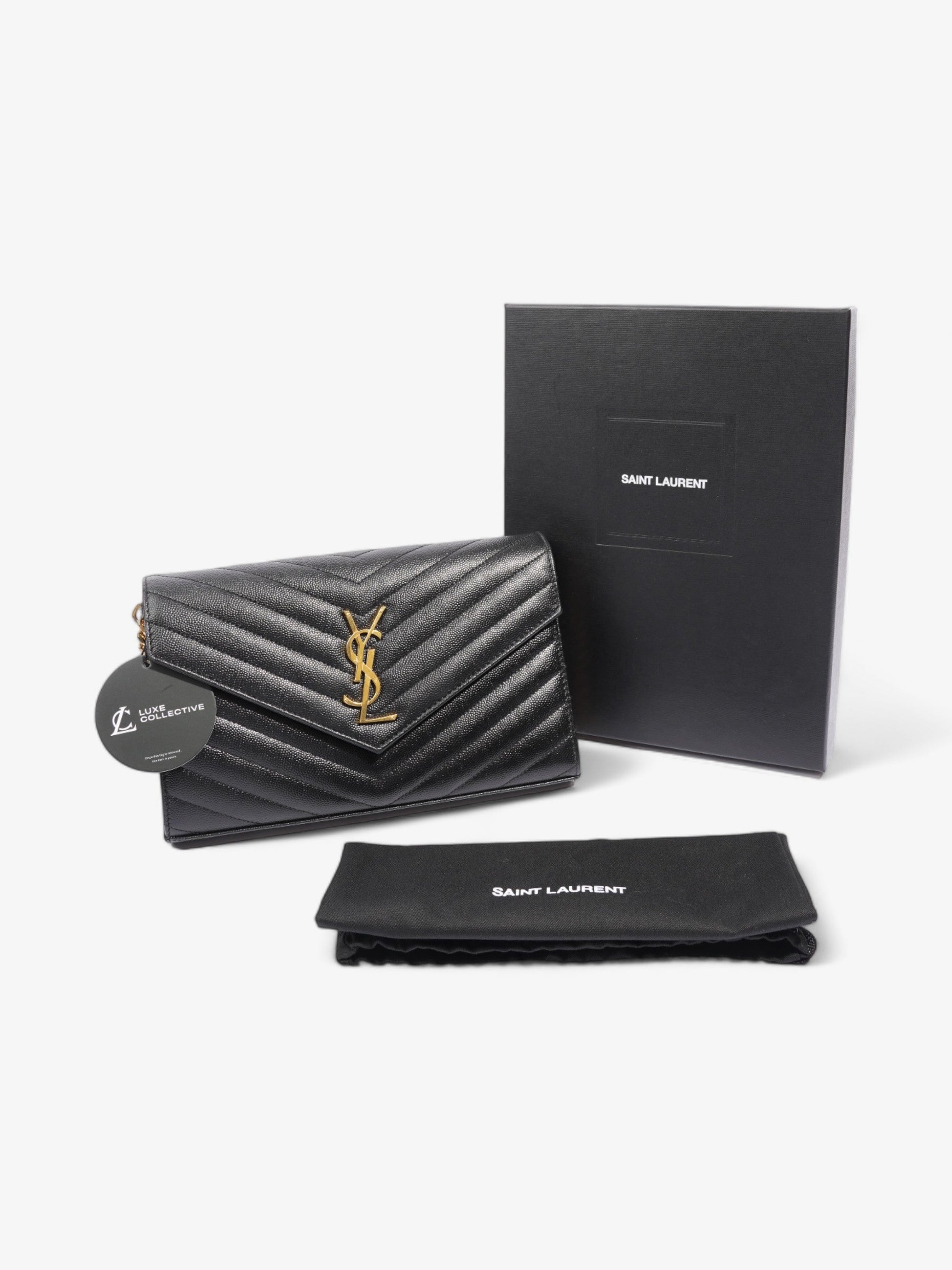 Saint Laurent Quilted Envelope Clutch Black Grained Leather