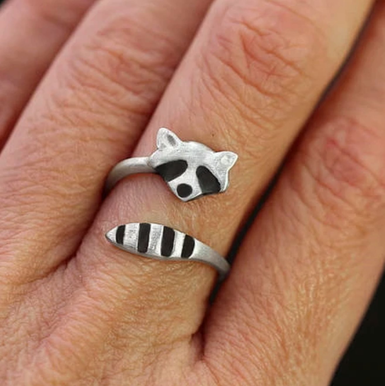 Raccoons are incredibly curious, full of energy, and always making a mess somewhere. Having these animals play in your garden may lead to a big disaster, but having this adorable raccoon ring on your finger will definitely brighten up your day.