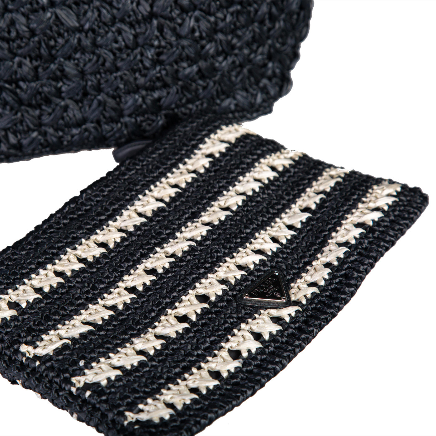 Add some fun to your wardrobe with this chic prada raffia bag in black and cream. With it’s open top and matching clutch, this lovely set really stands out from the crowd. Use the removable cream fabric strap to wear by day and remove for a more formal outfit in the evening. This is a versatile and unique bag for the Prada lover!