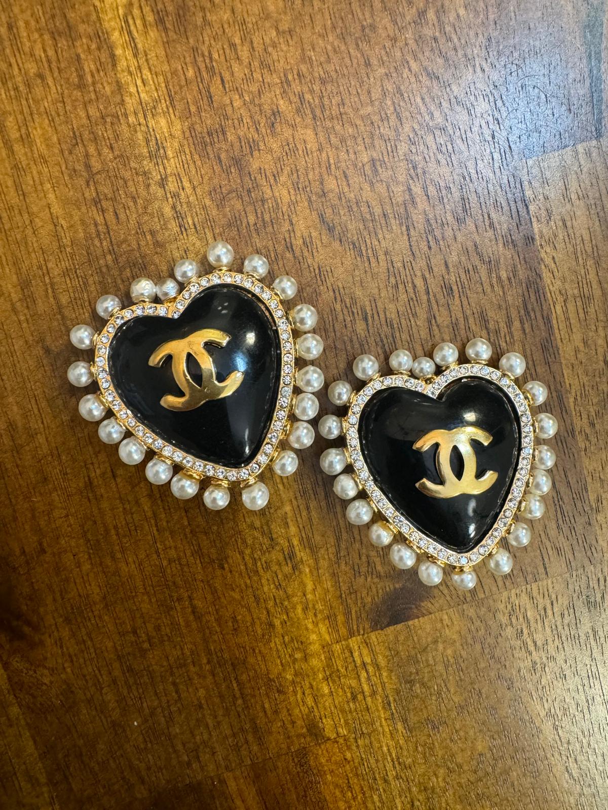 Add these stunning Rare Chanel 1980 large heart pearl clip on earrings to your collection! These earrings exude sophistication and elegance with their unique and exclusive design. The rarity of these earrings makes them a must-have for any fashion lover. Enhance your outfit with a touch of luxury and timeless beauty.