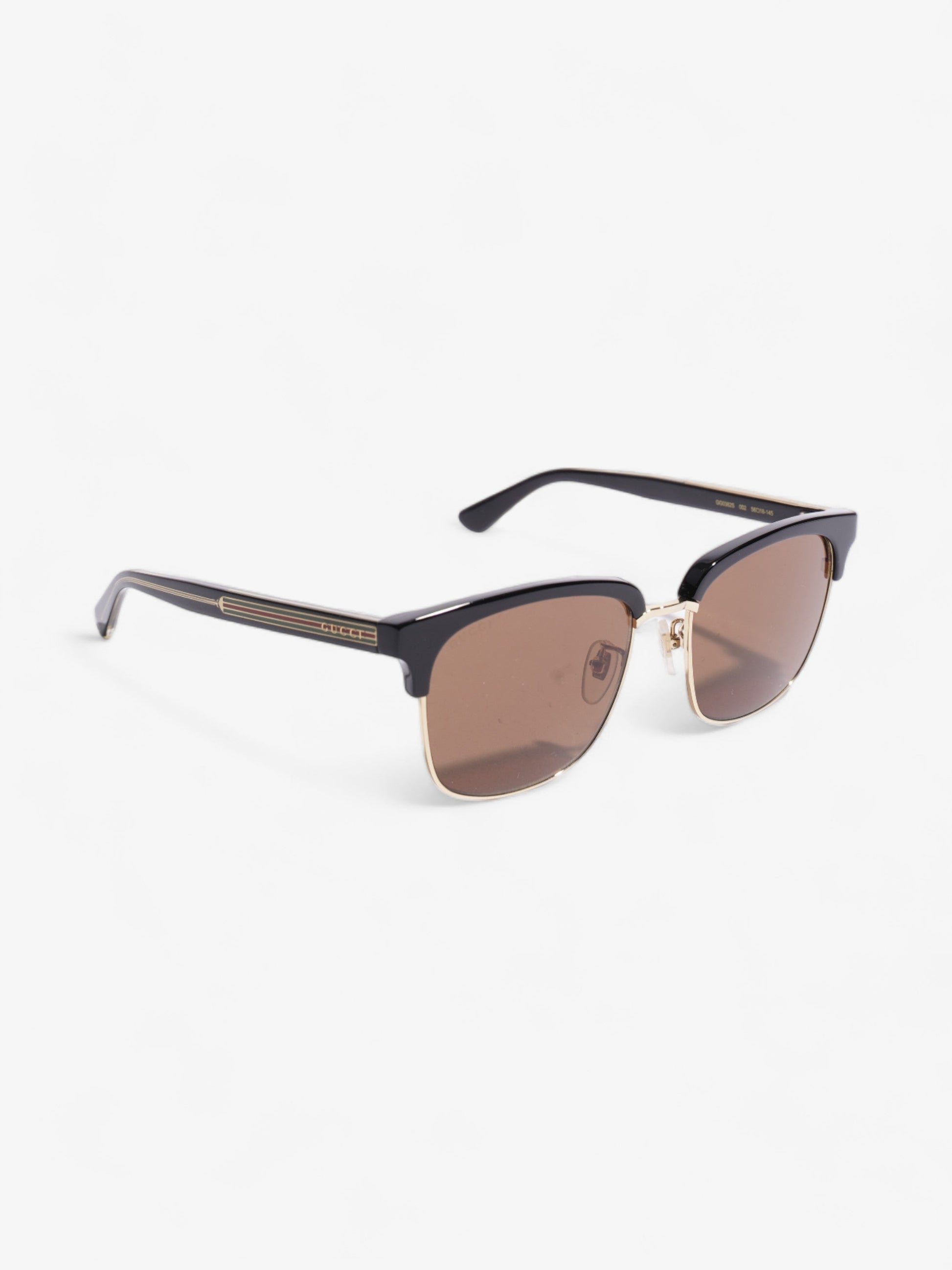 Gucci Rectangular Framed Sunglasses Black / Gold Acetate 145mm
