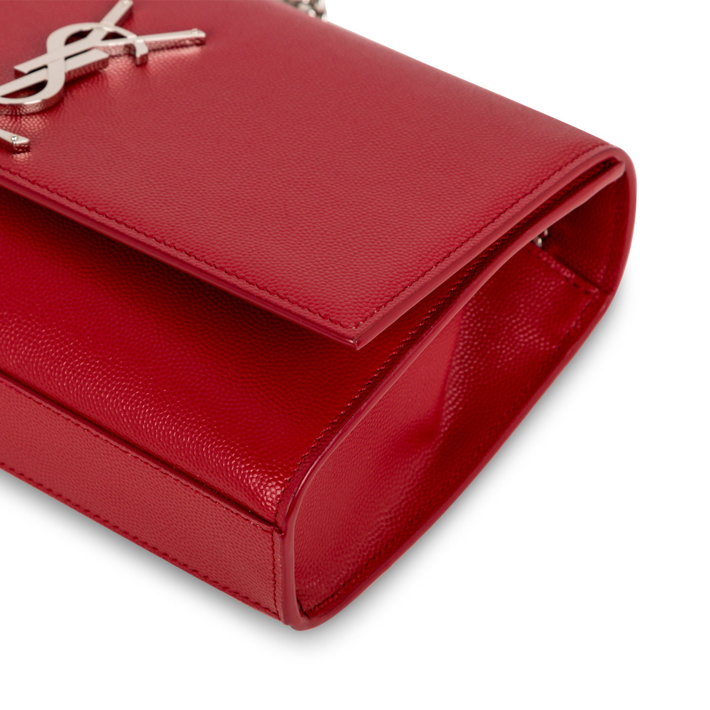 A timeless and iconic YSL signature, the Kate bag displayed in a rich, deep Red hue is an absolute necessity for any handbag enthusiast. Crafted from grainy leather, this bag is the ideal accessory to take you from day to night. Offering the best of both worlds, the Kate bag is your go-to for any occasion. Wear this piece with pretty much anything in your wardrobe - whether you dress it up or down, the Kate is the perfect accessory to compliment your look. The Red leather complimented by the glossy, silver-tone hardware and prominent YSL logo is a match made in heaven. The perfect balance between classic and contemporary, the Kate is a well worthy addition to any luxury handbag collection.