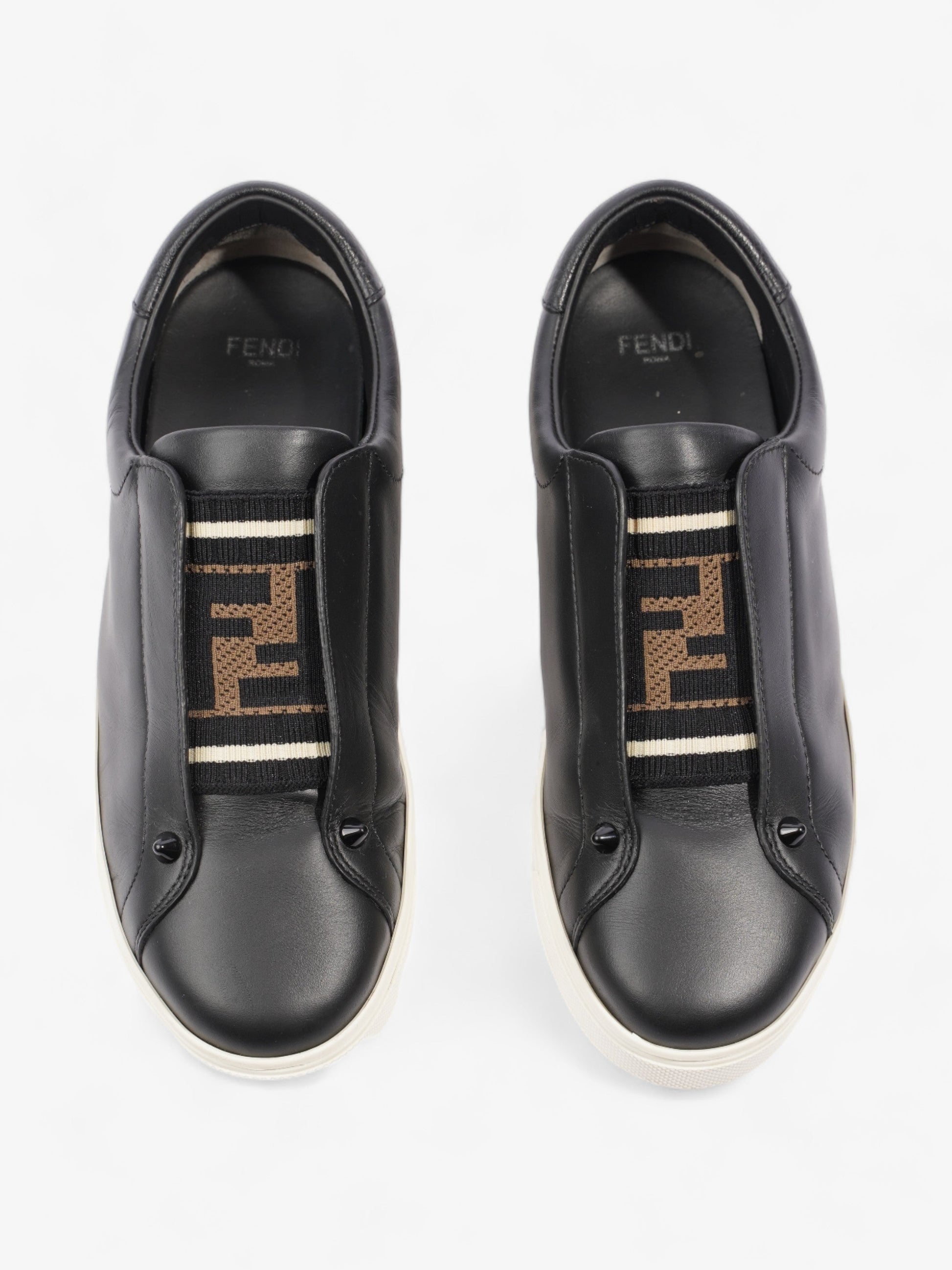 Fendi Rockoclick Knitted Logo Sneakers Black / Brown / White Leather EU 36 UK 3