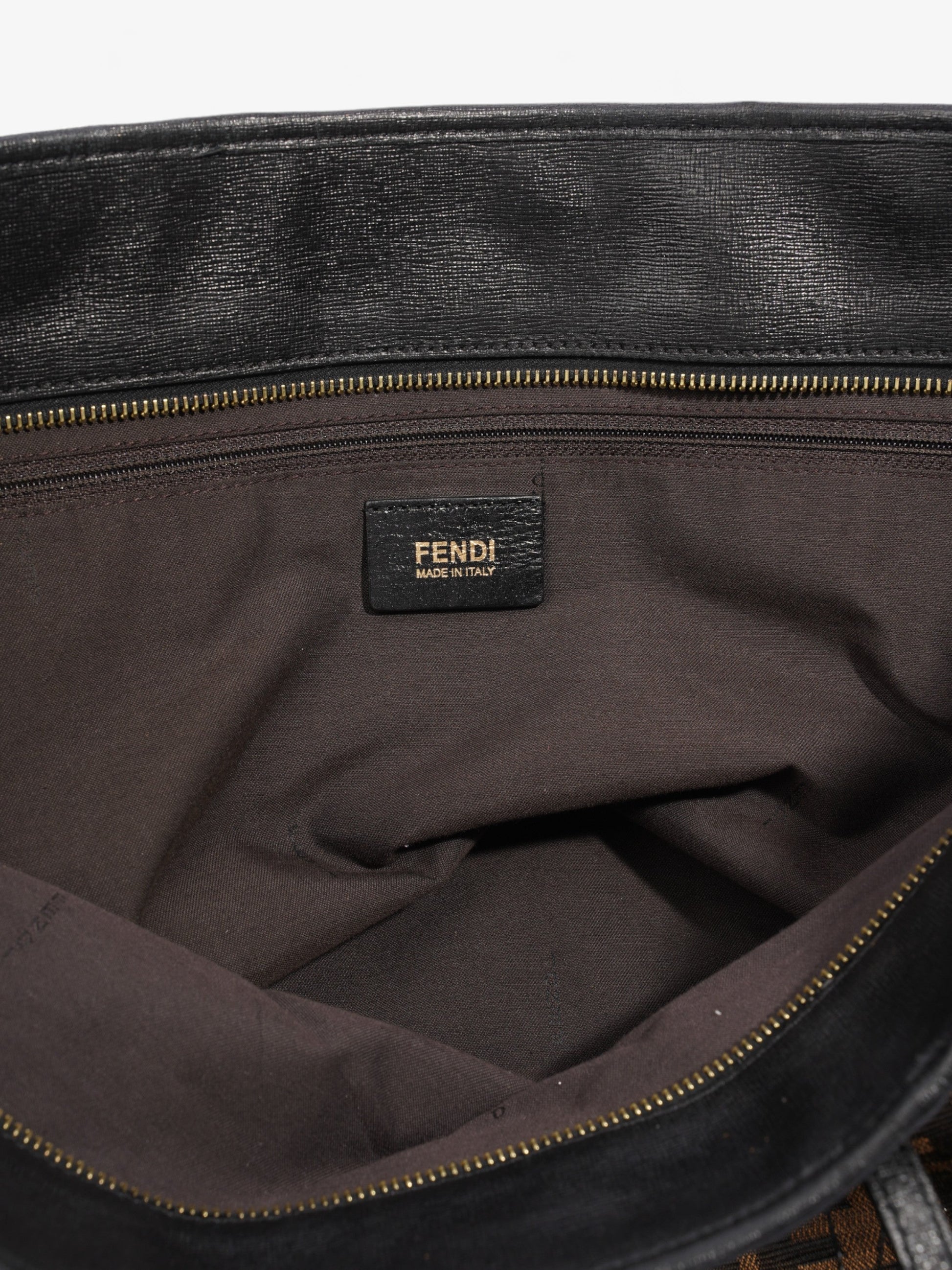 Fendi Roll Tote Tobacco / Black Zucca Canvas