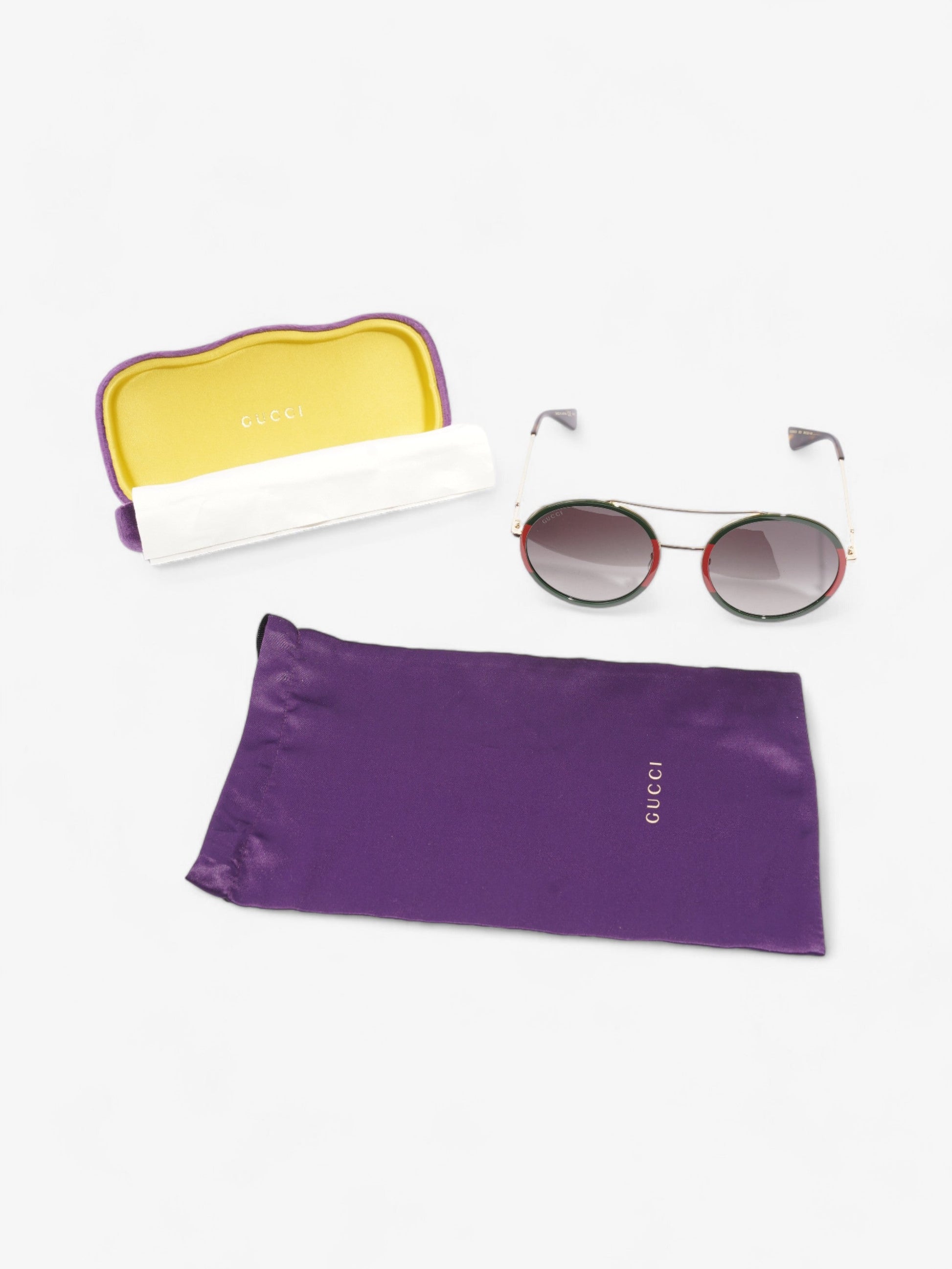 Gucci Round Sunglasses Green / Red Base Metal 140mm