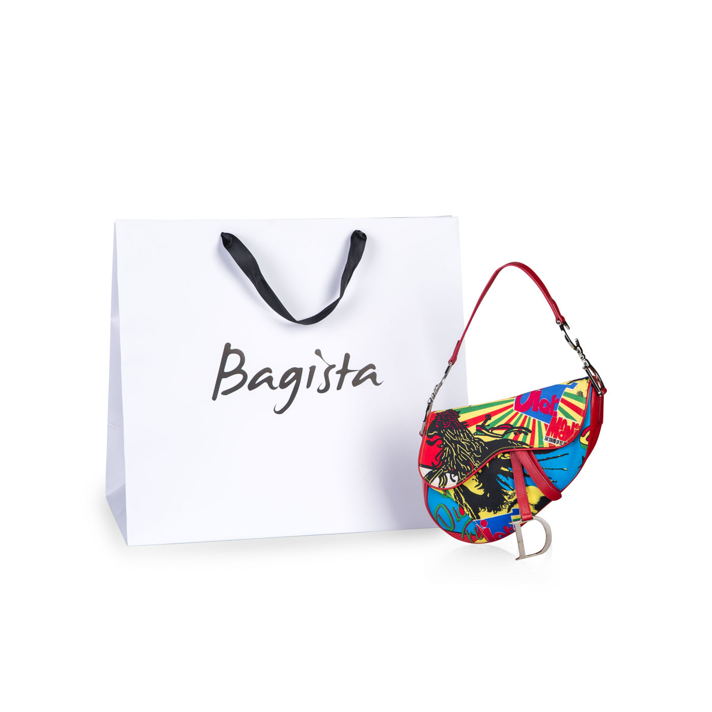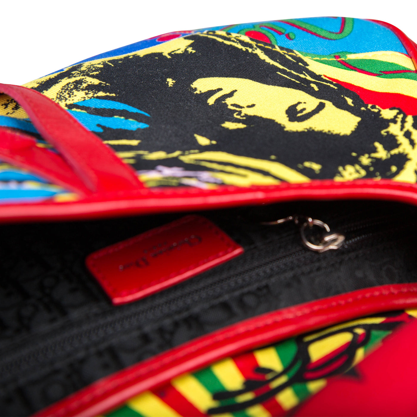 The Christian Dior saddle bag is known to Dior fans as an instant classic, as it is such an iconic design for the label. The exterior is crafted out of canvas meaning it is long lasting and timeless. It also comes with a chunky D motif in beautiful silver tone. This is a special edition version which features a bright multi-coloured Bob Marley print.