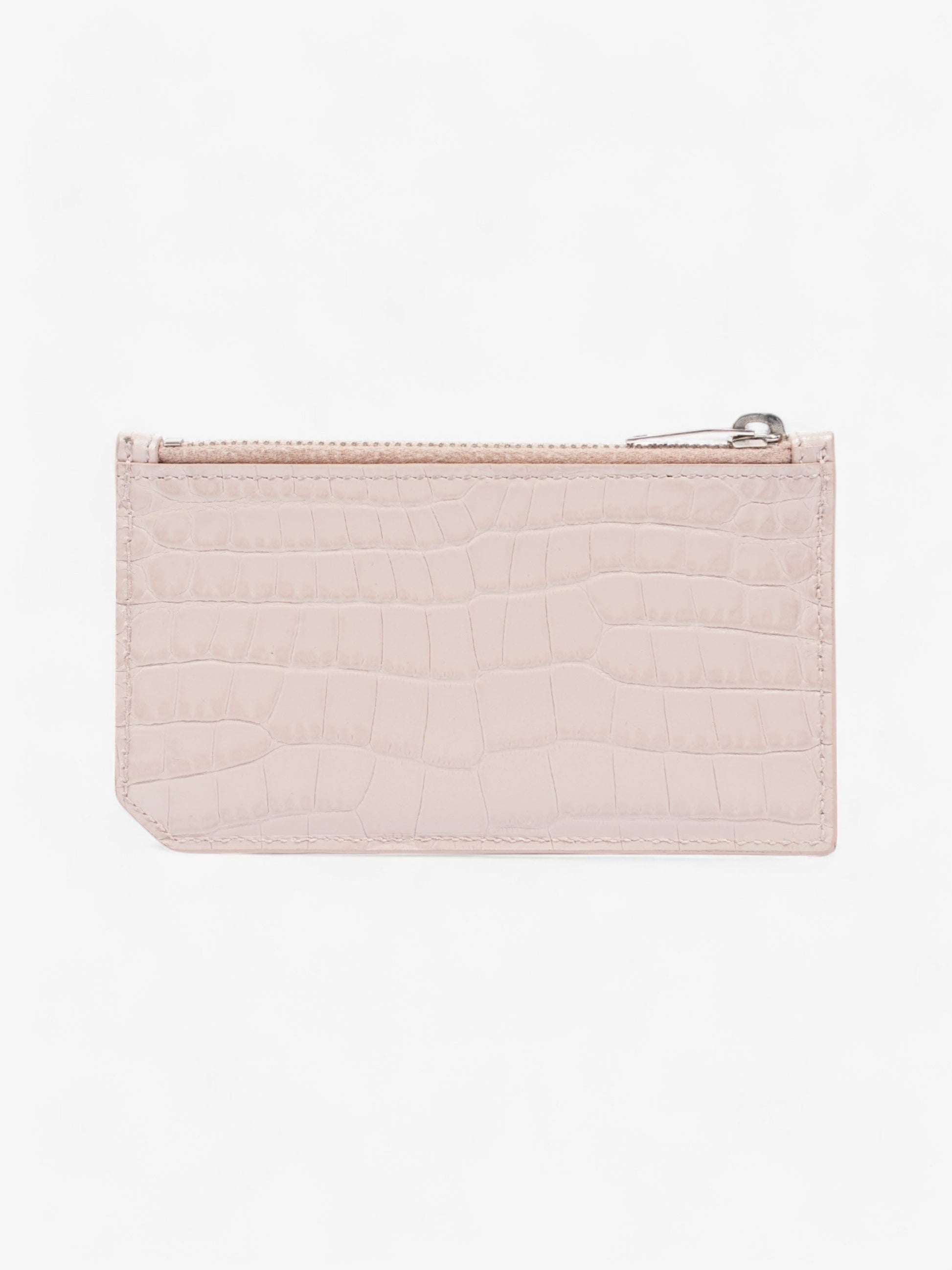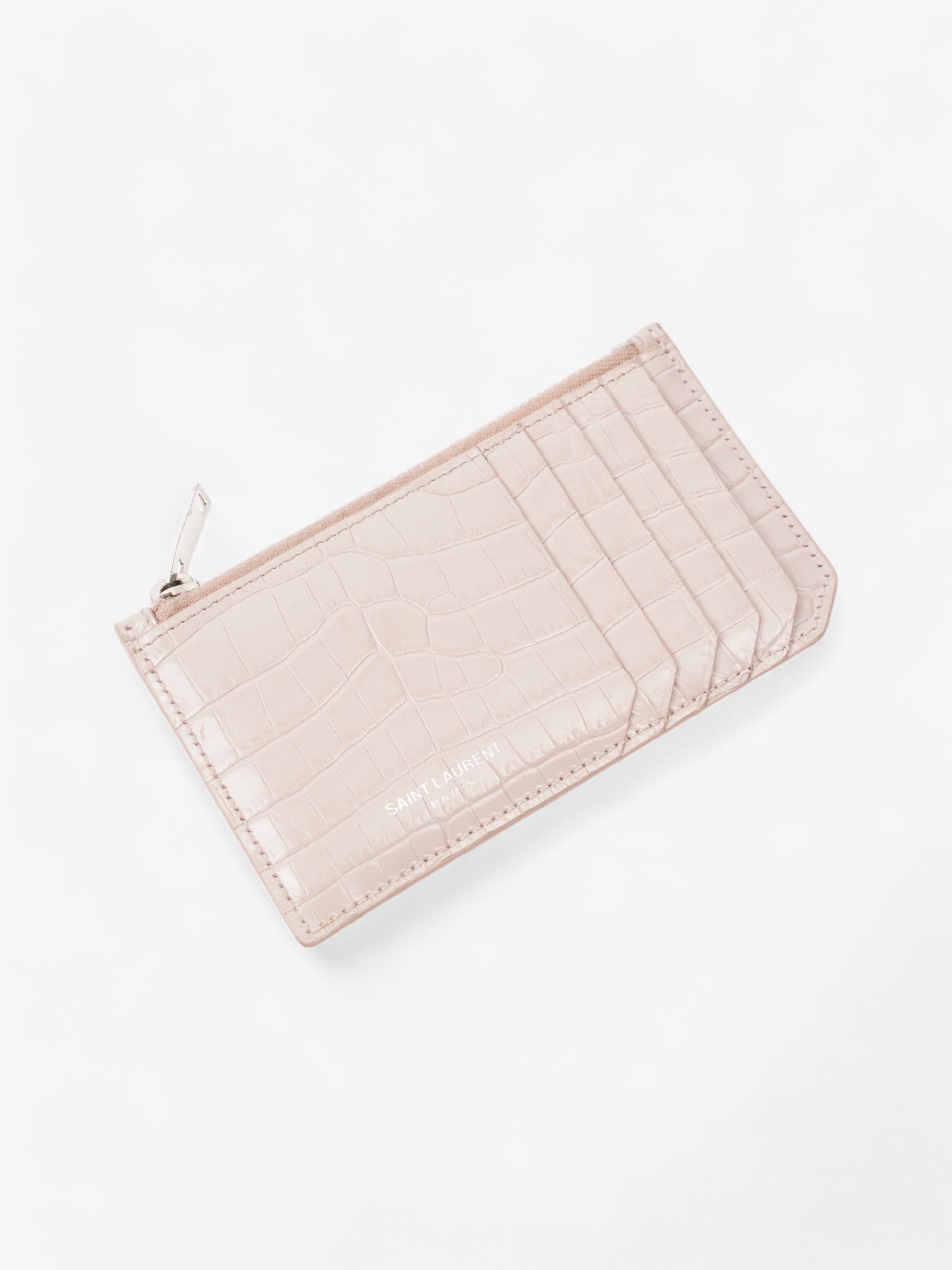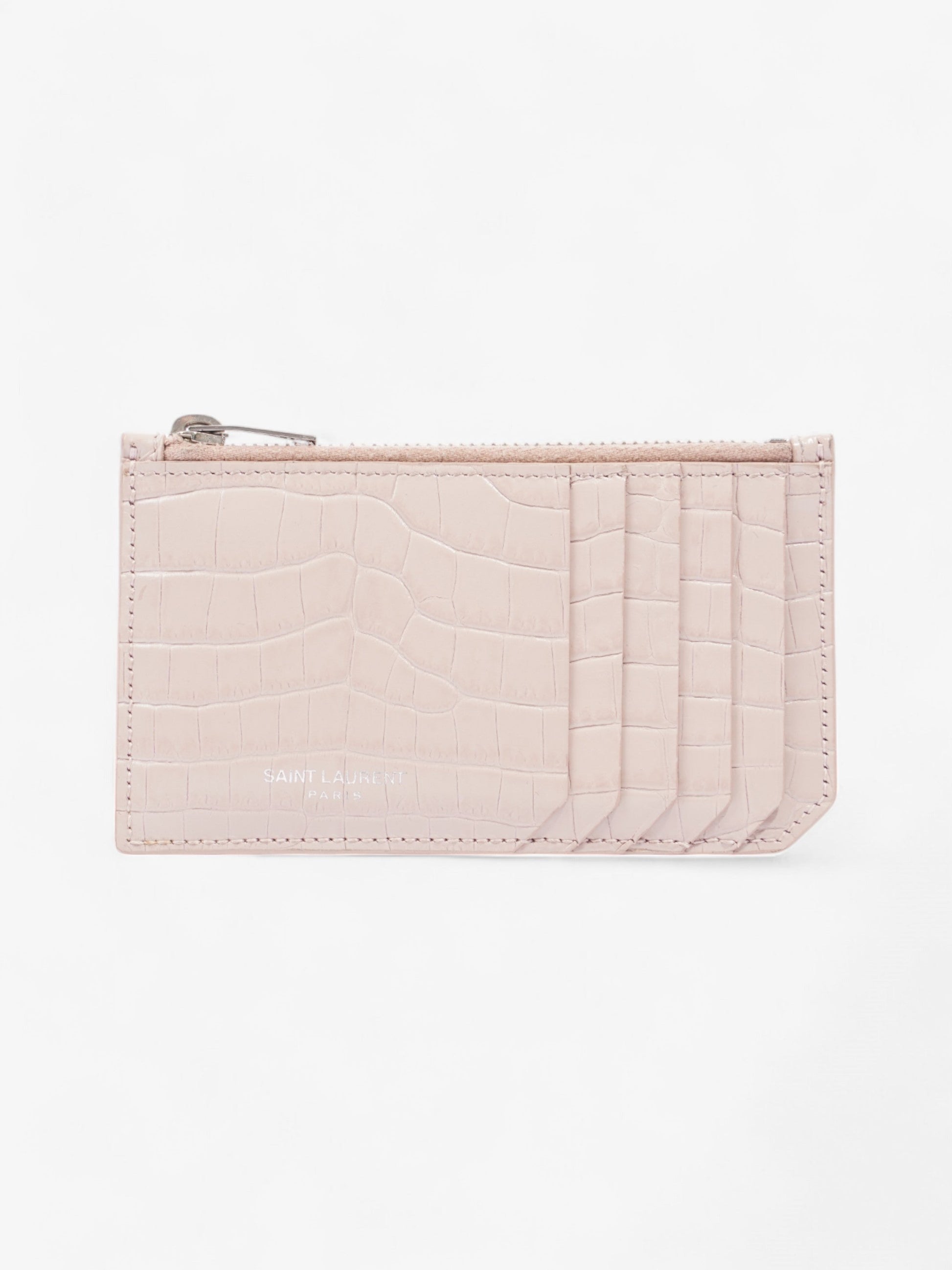 Saint Laurent 5 Card Holder Rose Beige Embossed Leather