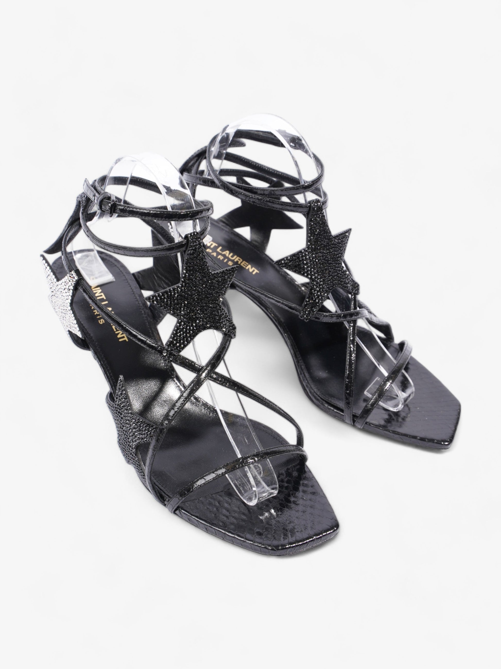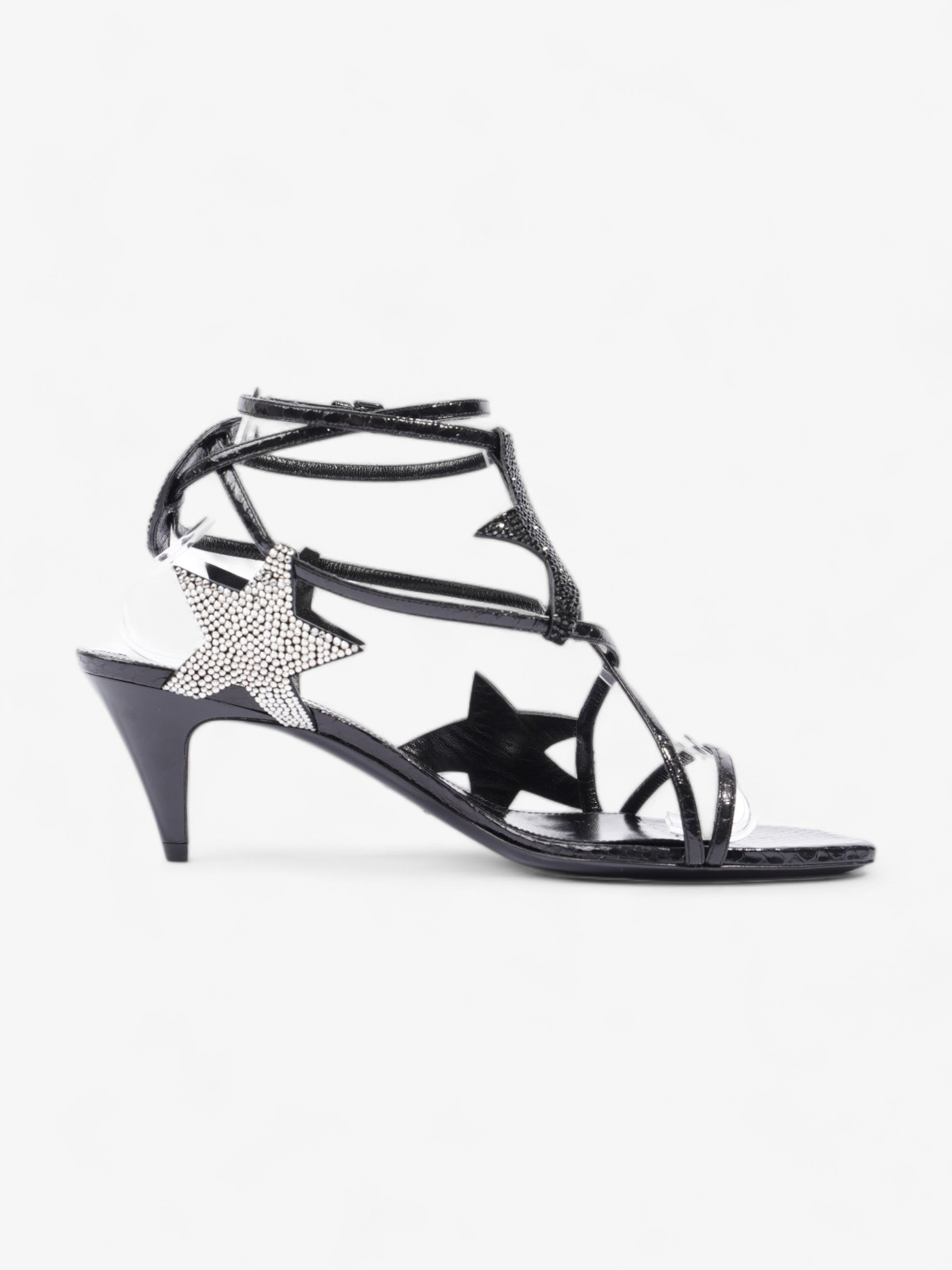 Saint Laurent Ayers Lacquer Stars Heels 60 Black / Silver Sequins Leather EU 40 UK 7