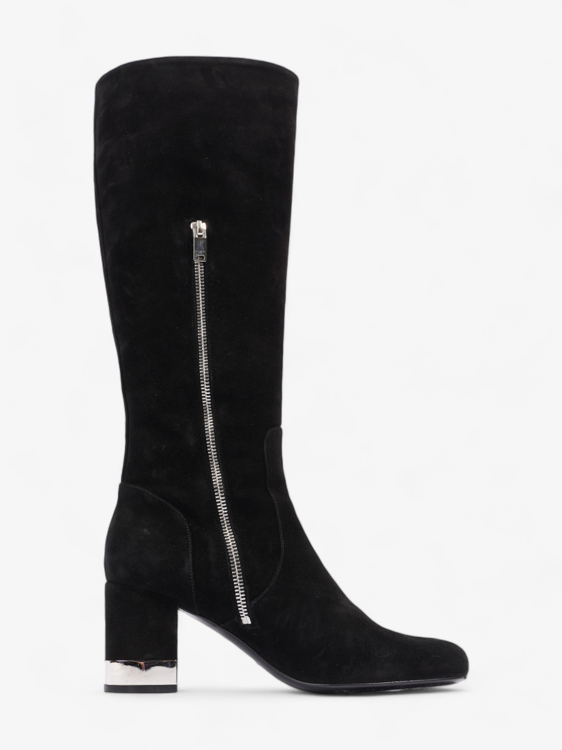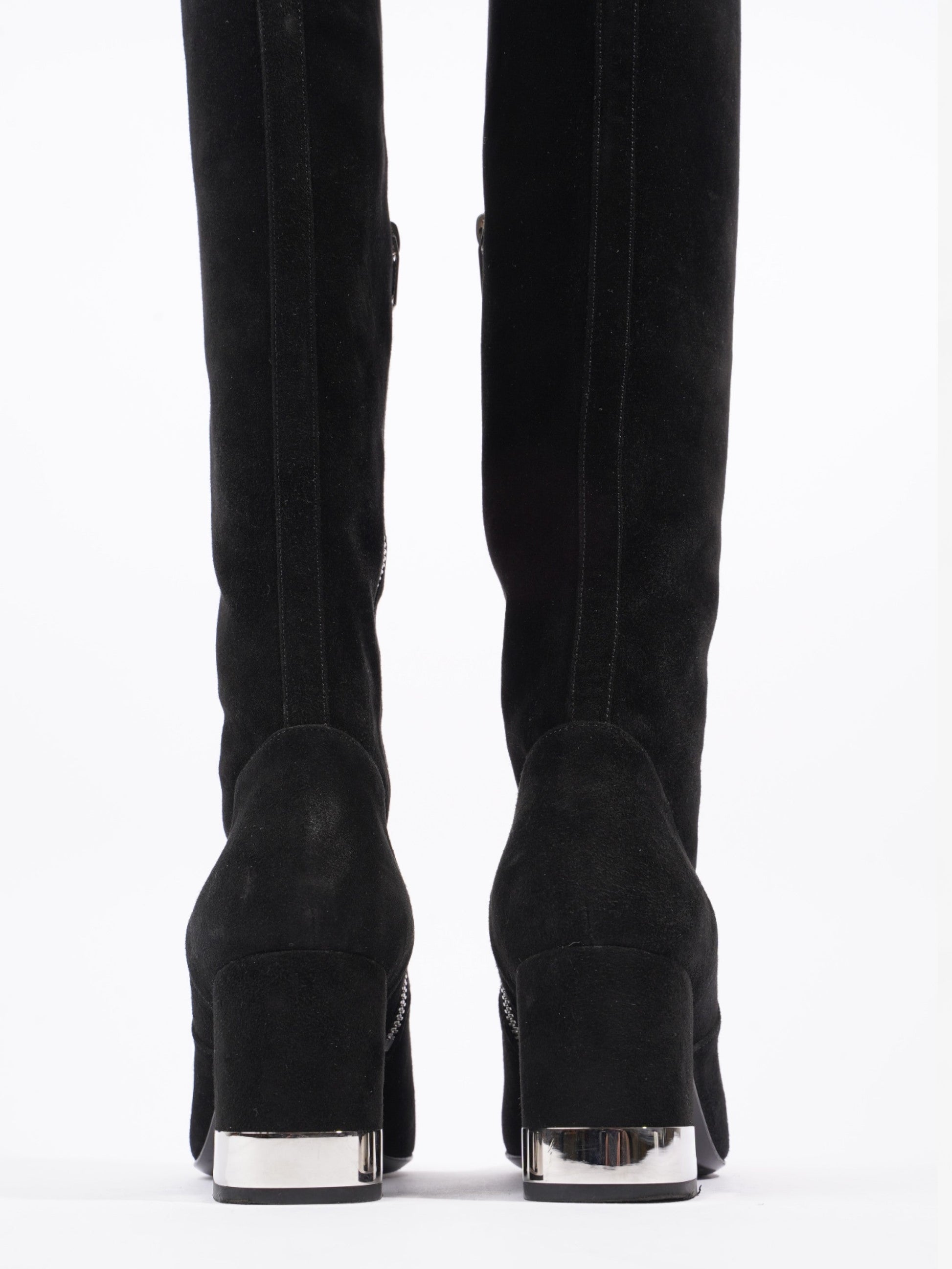 Saint Laurent Babies 70 Tall Boots 70mm Black / Silver Suede EU 37 UK 4