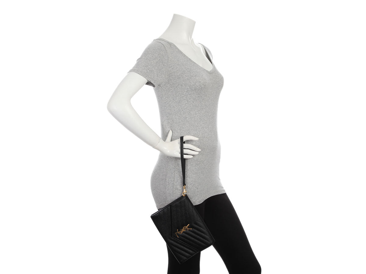 Saint Laurent Black Grain De Poudre Cassandre Matelassé Flap Pouch