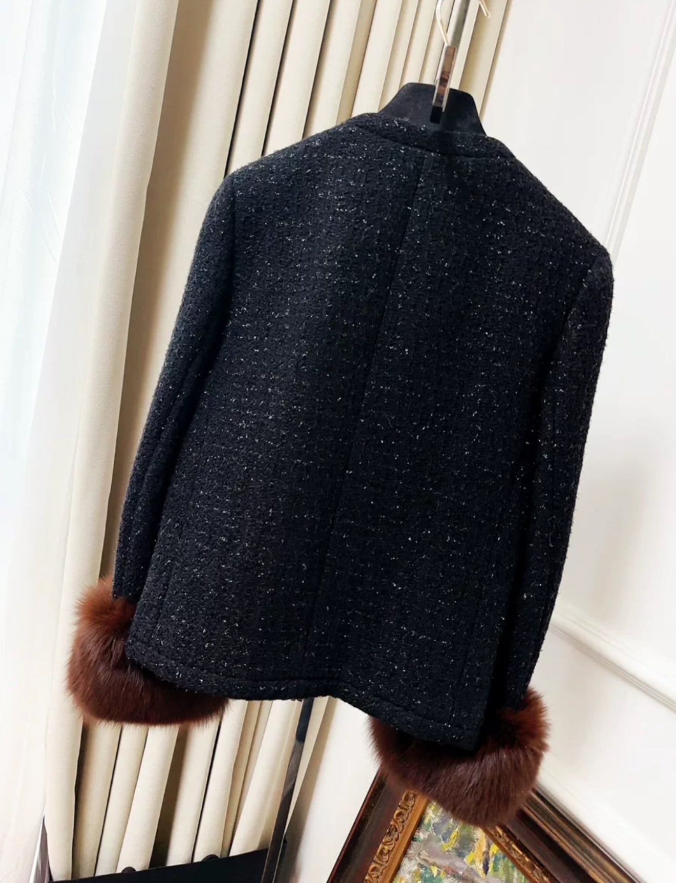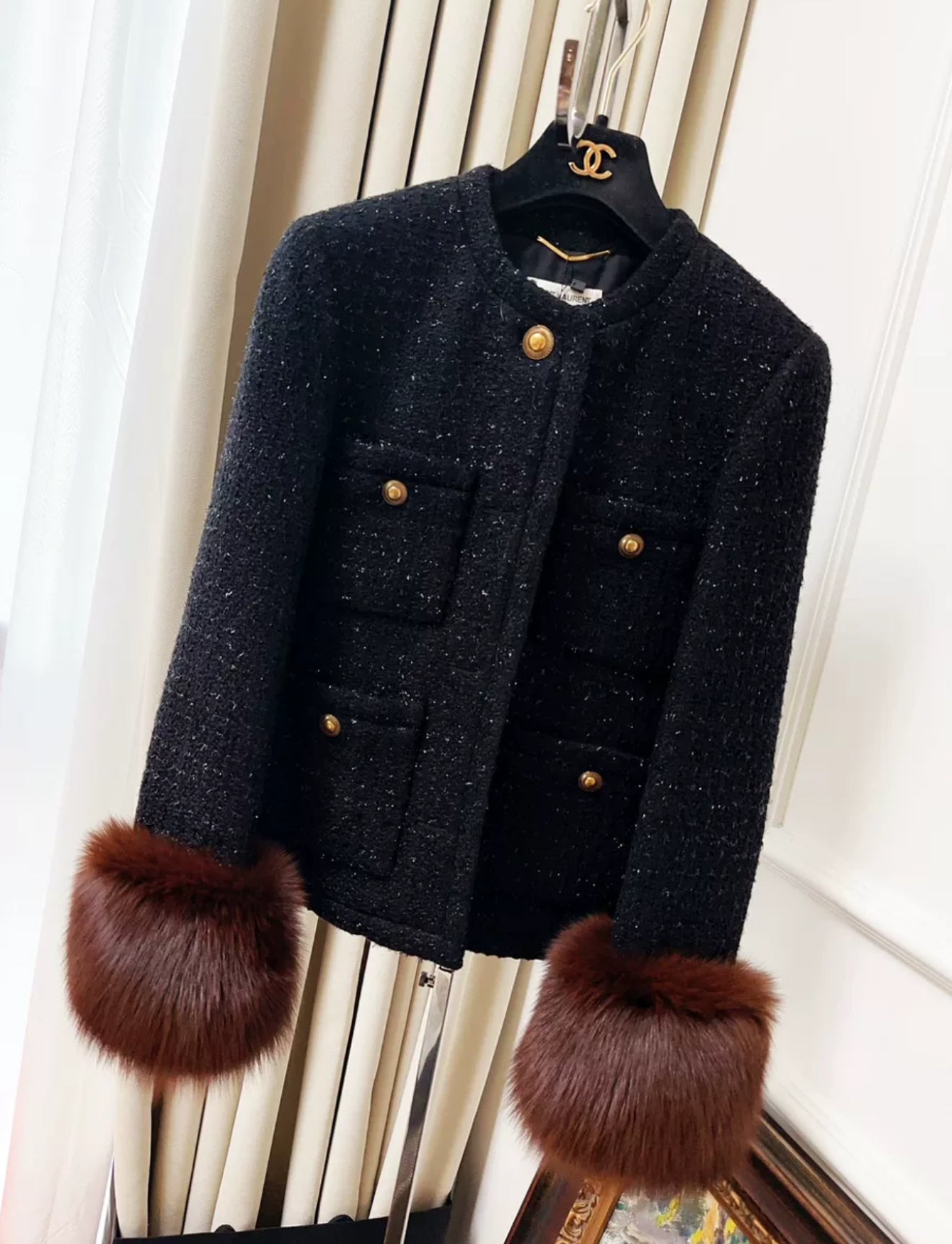 This black tweed and fur jacket from Saint Laurent is a timeless piece of luxury. In very good condition and size 36, it combines classic materials with contemporary style. Expertly crafted, it exudes sophistication and elegance. A must-have addition to any wardrobe.