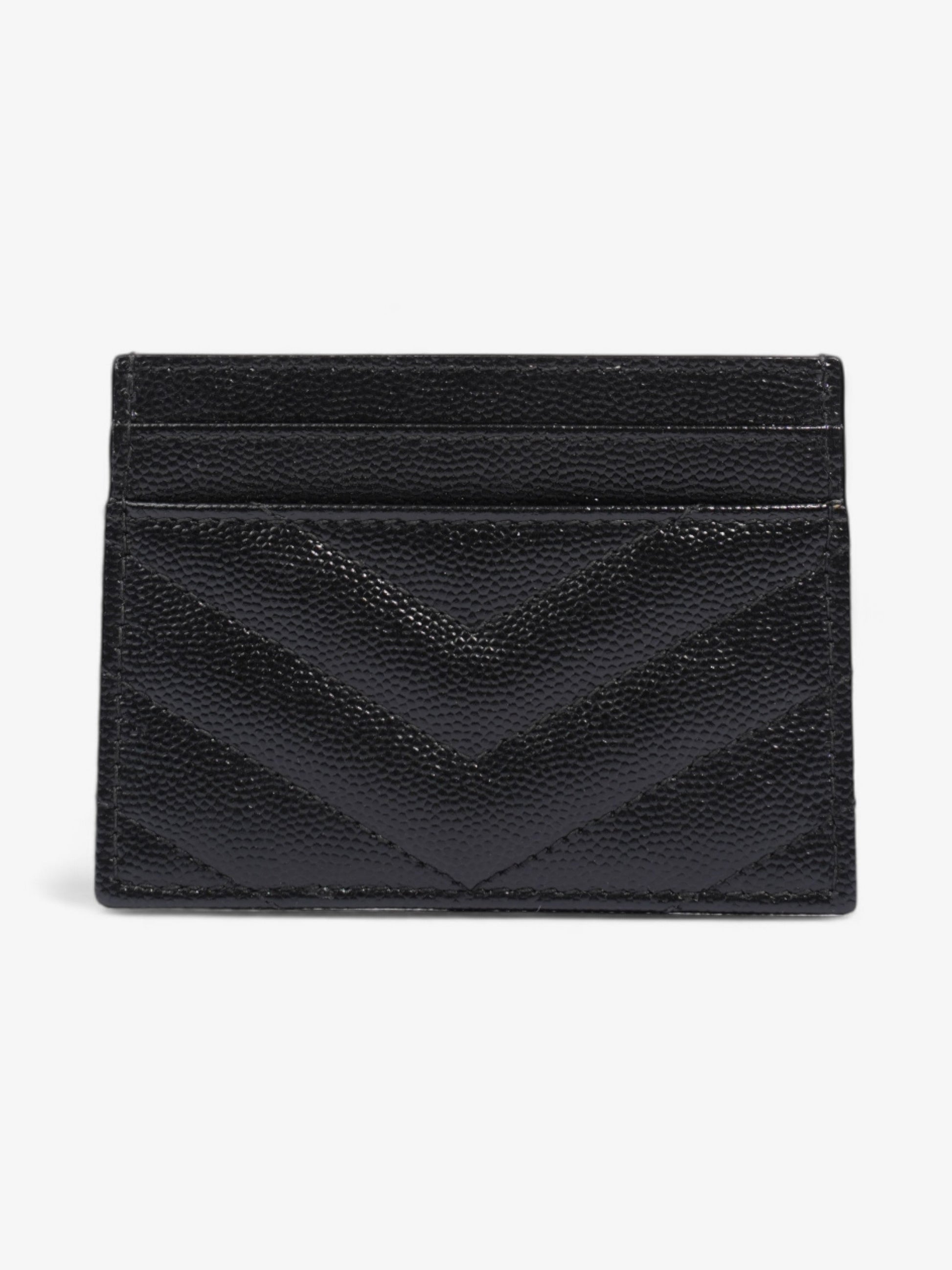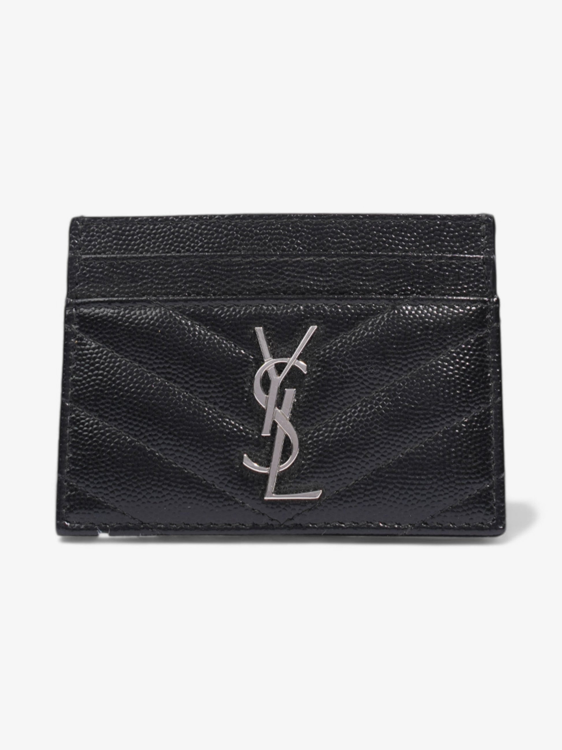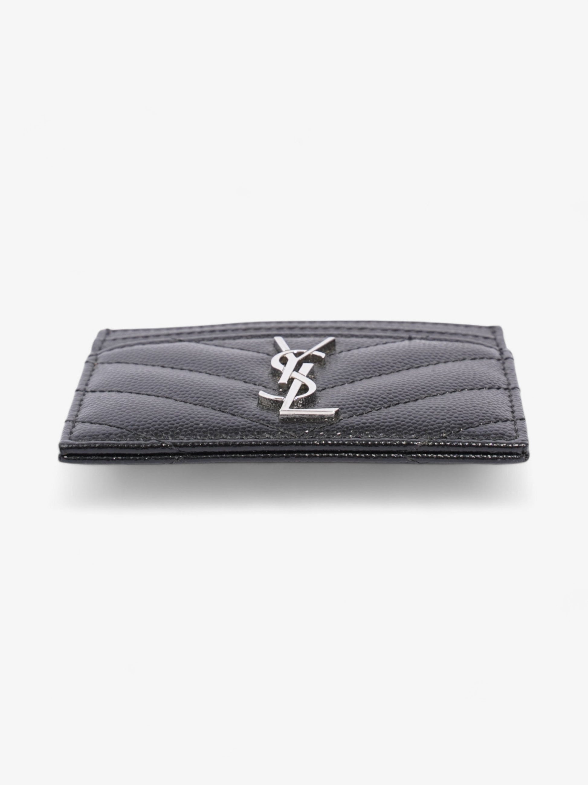 Saint Laurent Cassandre Card Holder Black / Silver Grained Leather