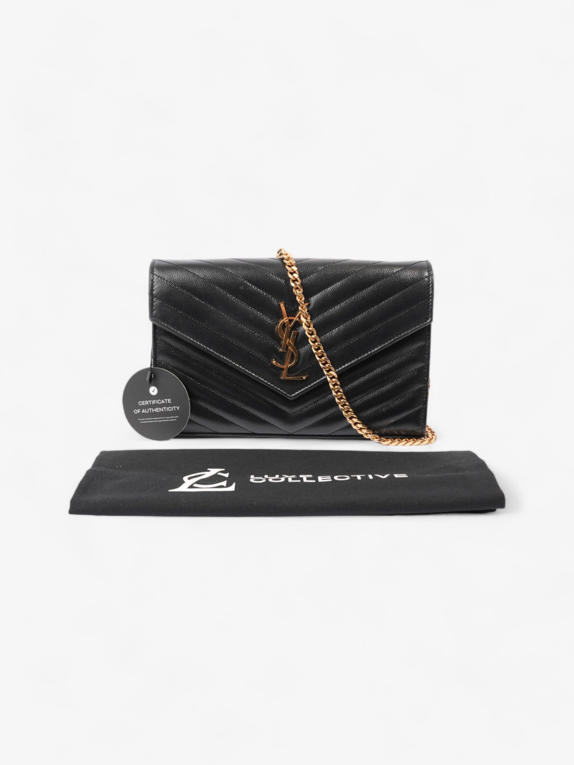 Saint Laurent Cassandre Envelope Black Grained Leather