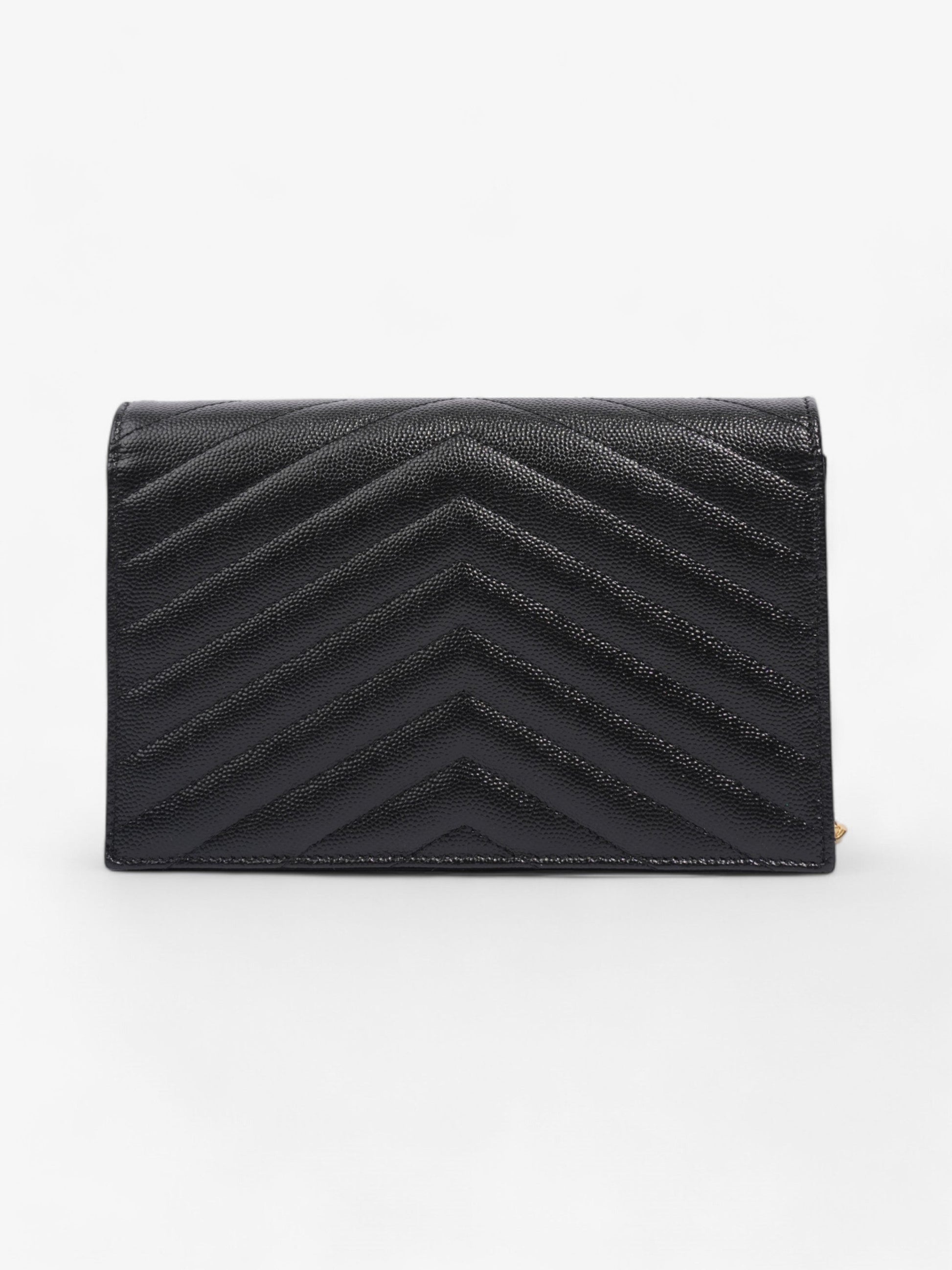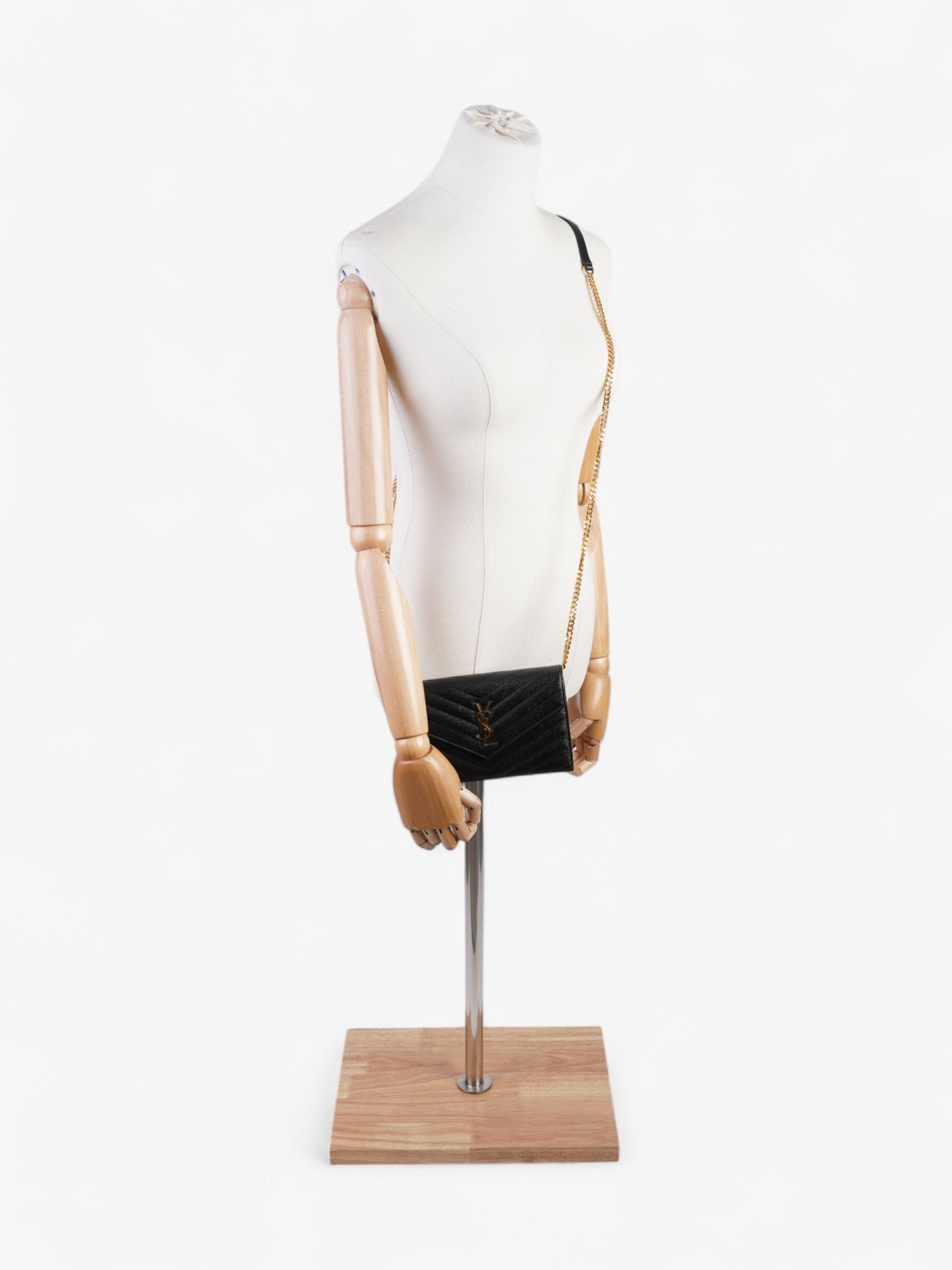 Saint Laurent Cassandre Envelope Chain Wallet Black Grained Leather