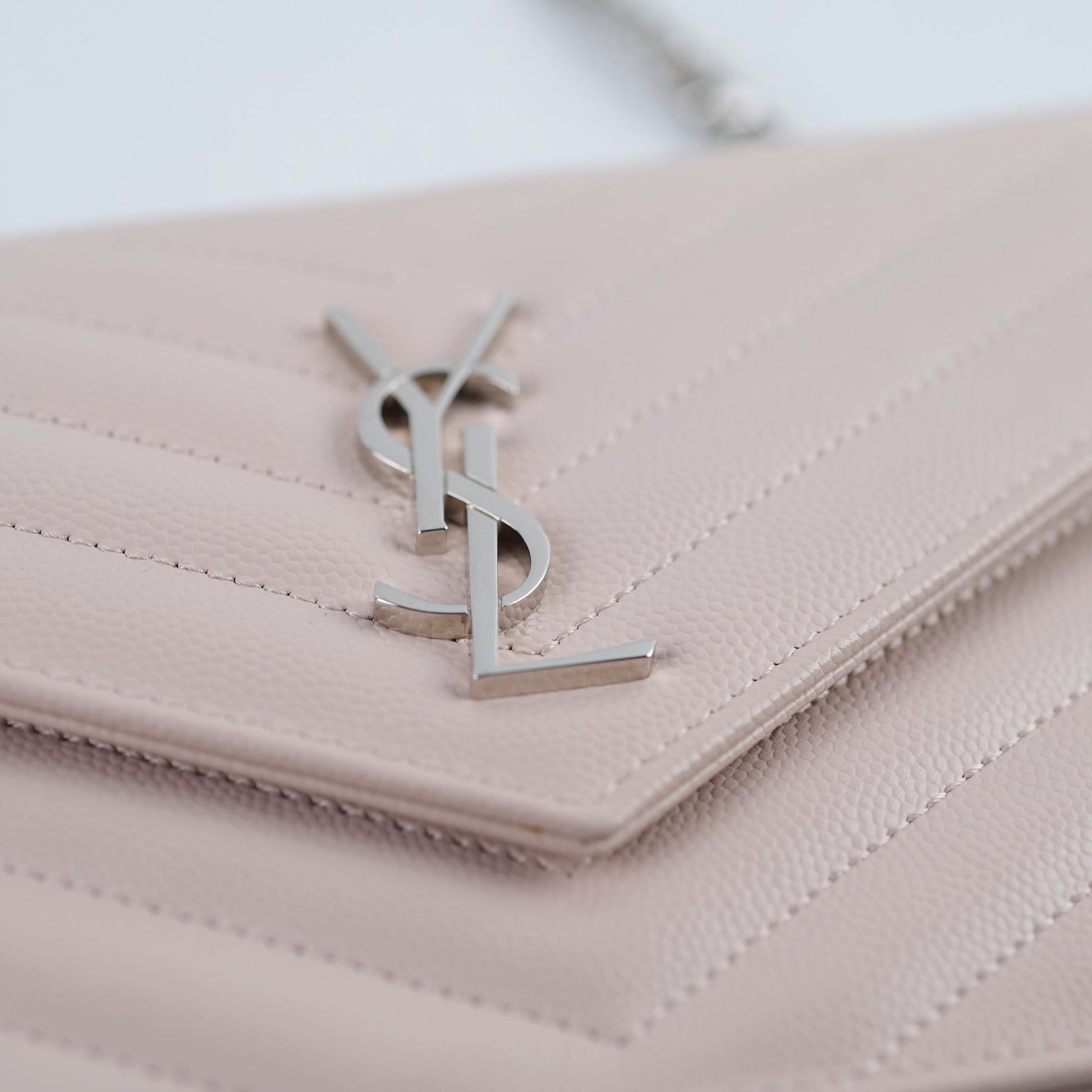 Saint Laurent Cassandre Envelope Wallet on Chain WOC Pink