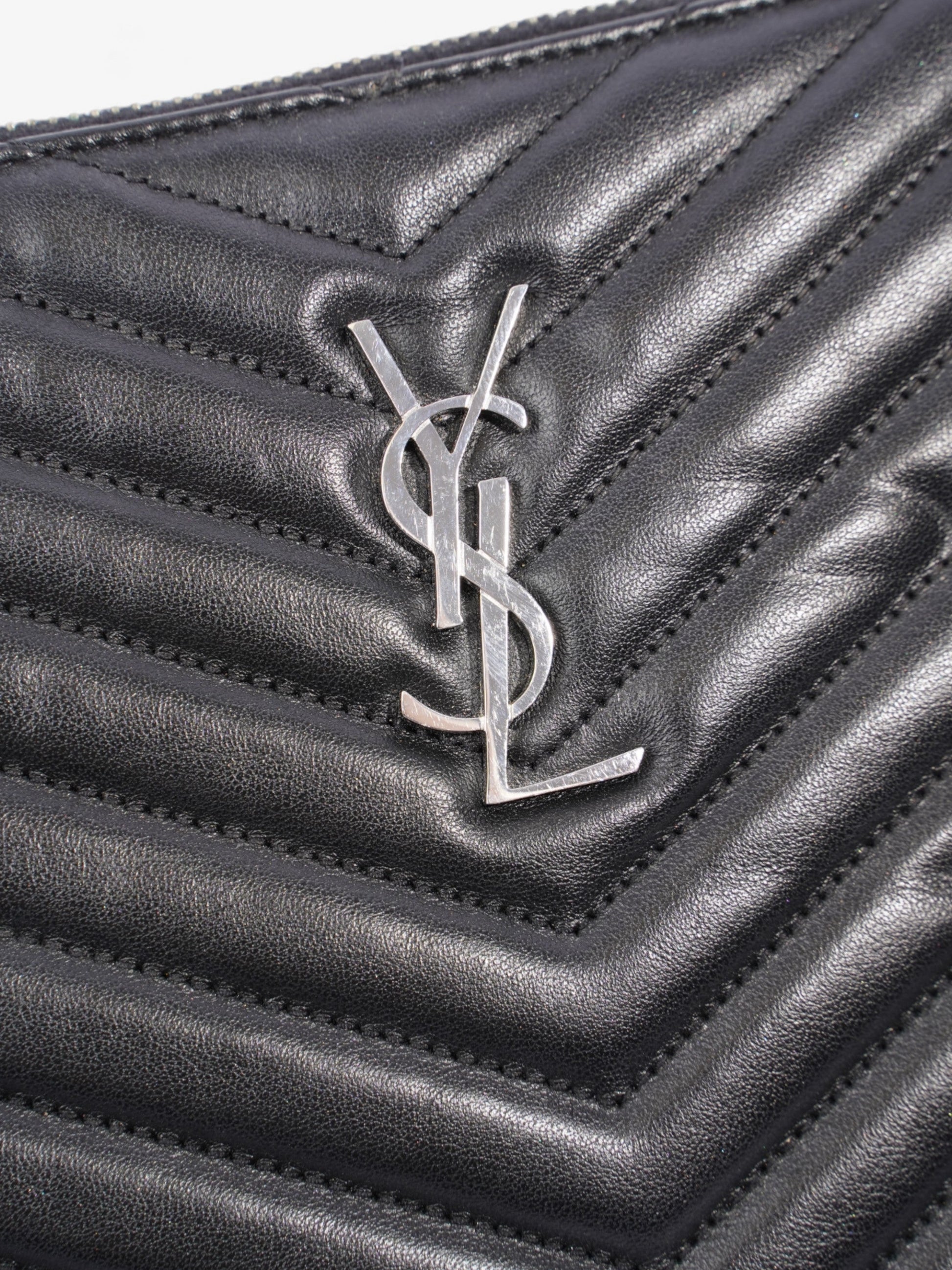 Saint Laurent Cassandre Wristlet Tablet Pouch Black Matelasse Leather