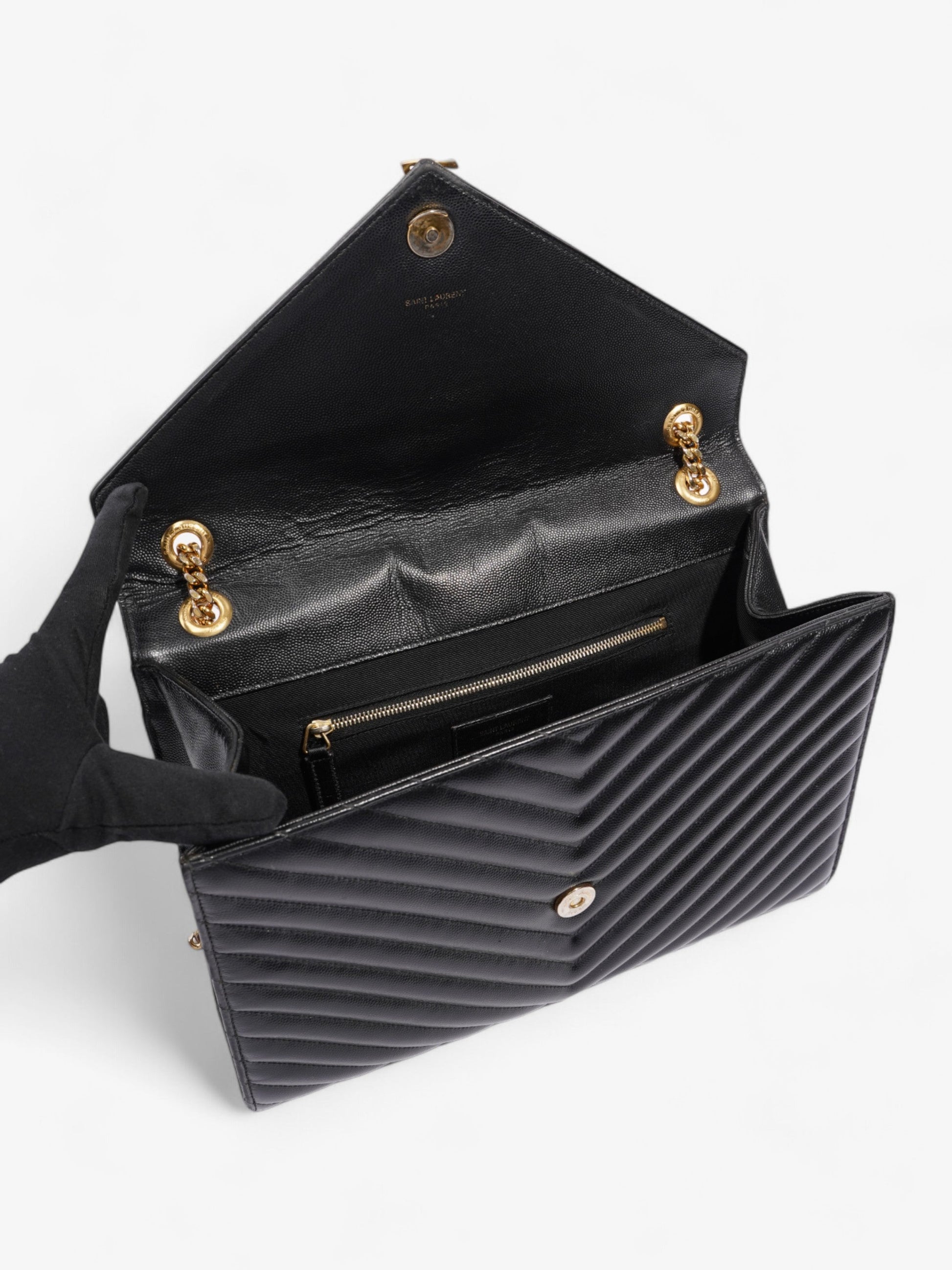 Saint Laurent Envelope Black Grained Leather Large