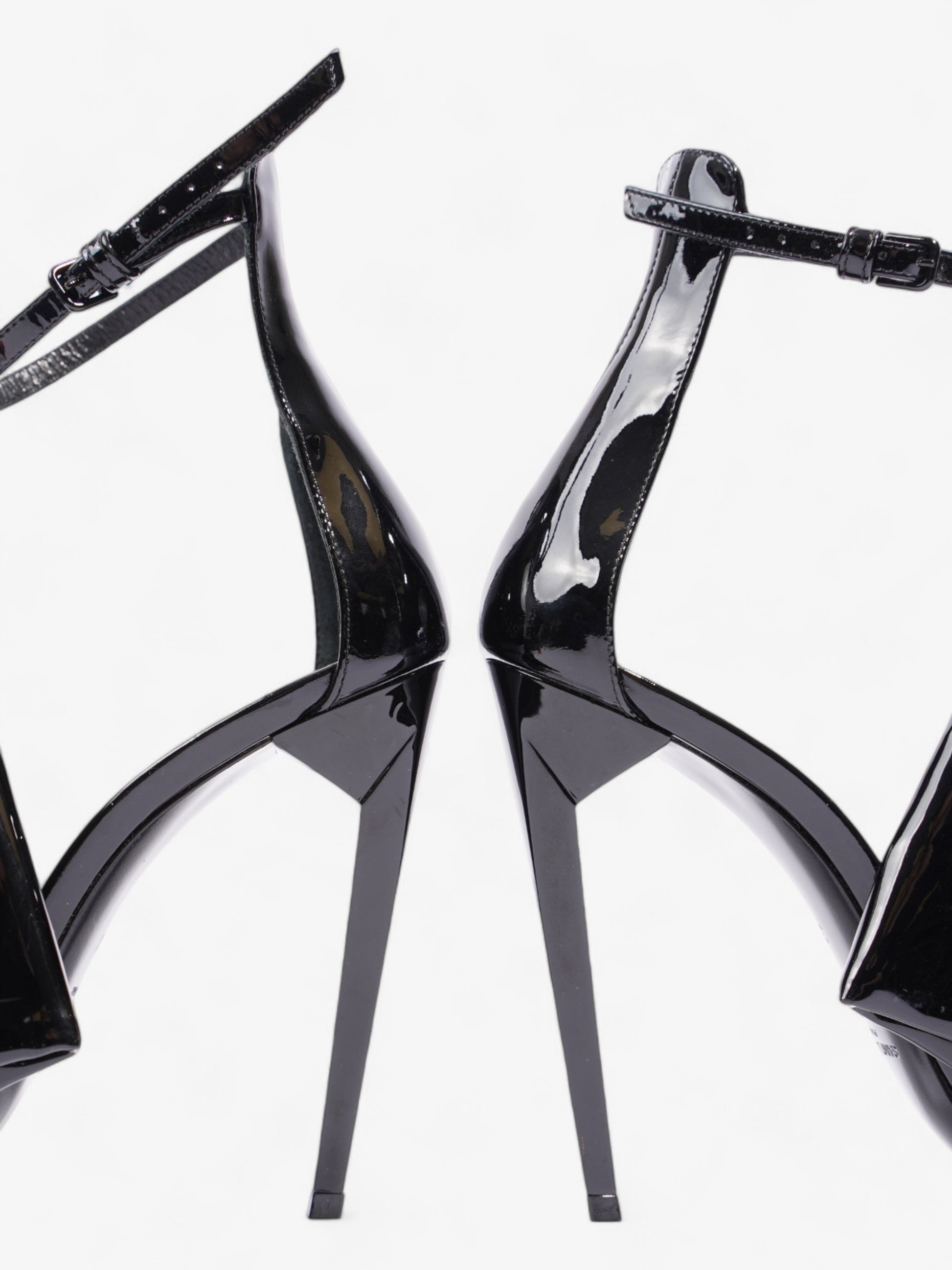 Saint Laurent Freja Bow Heels 110 Black Patent Leather EU 38 UK 5