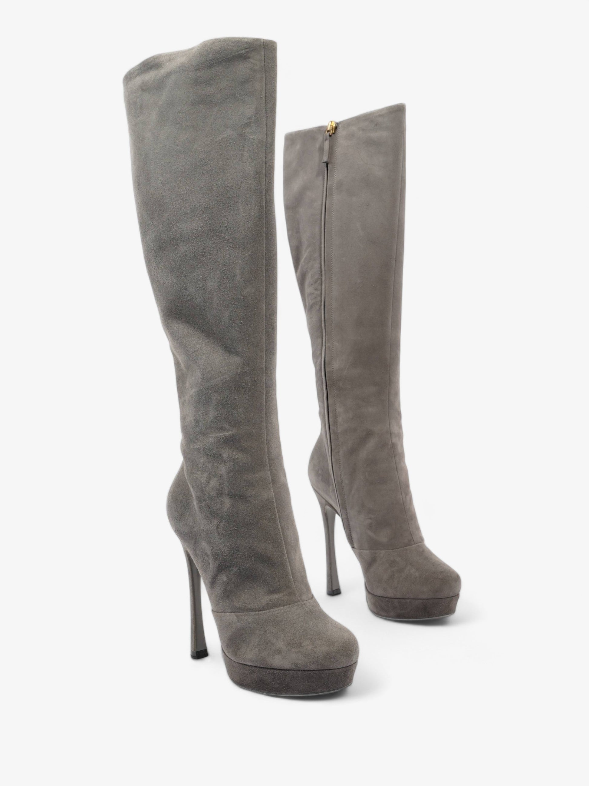 Saint Laurent Gisele Boots 105 Grey Suede EU 38.5 UK 5.5