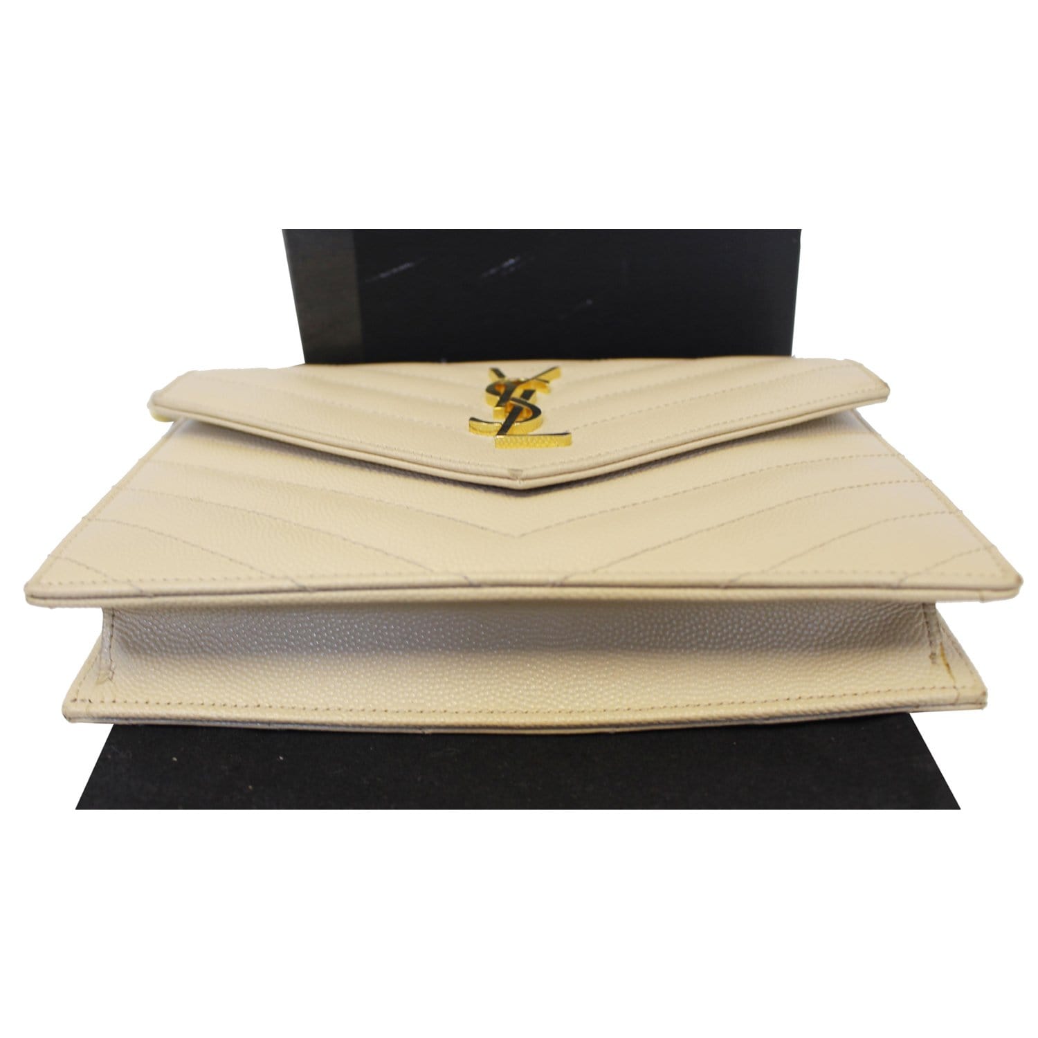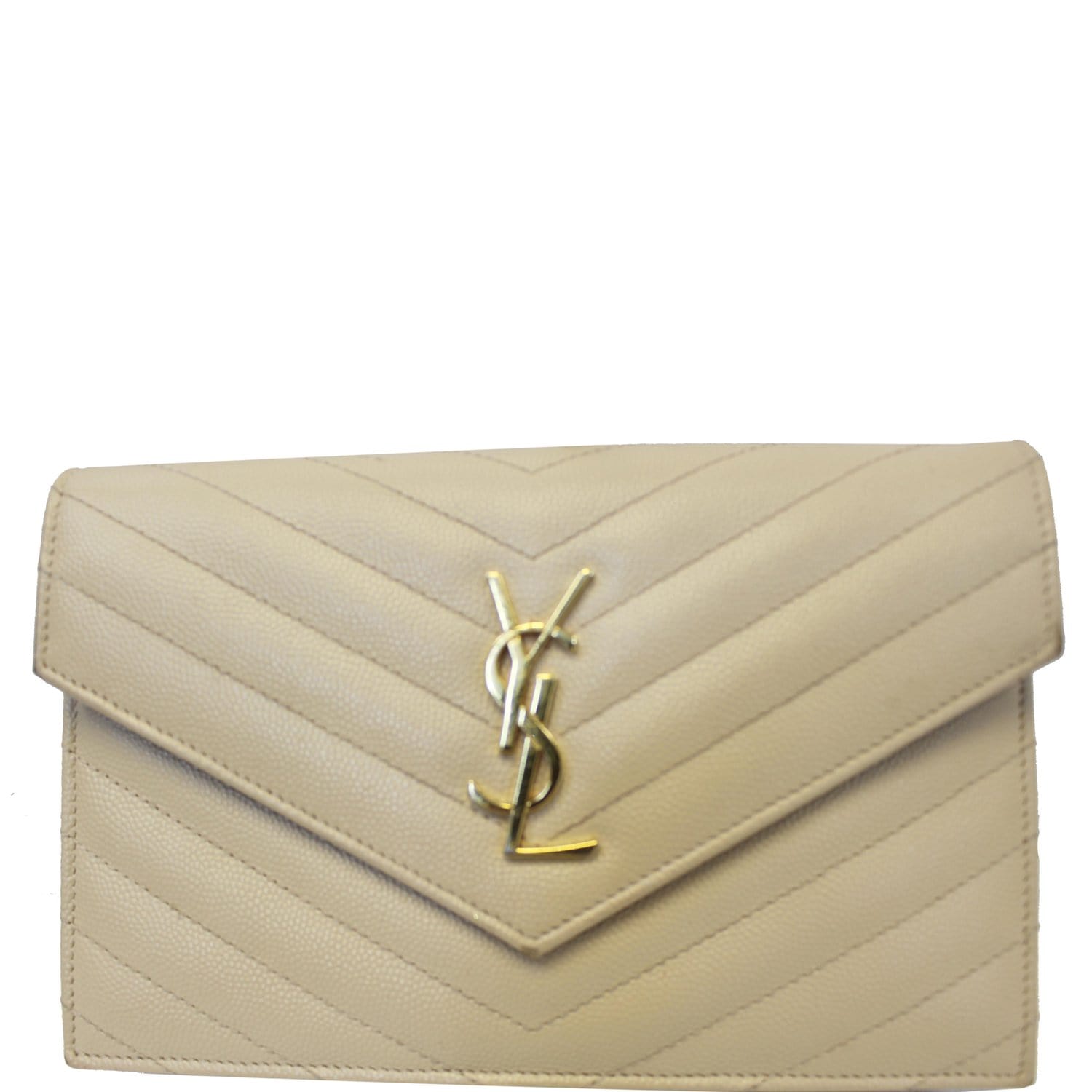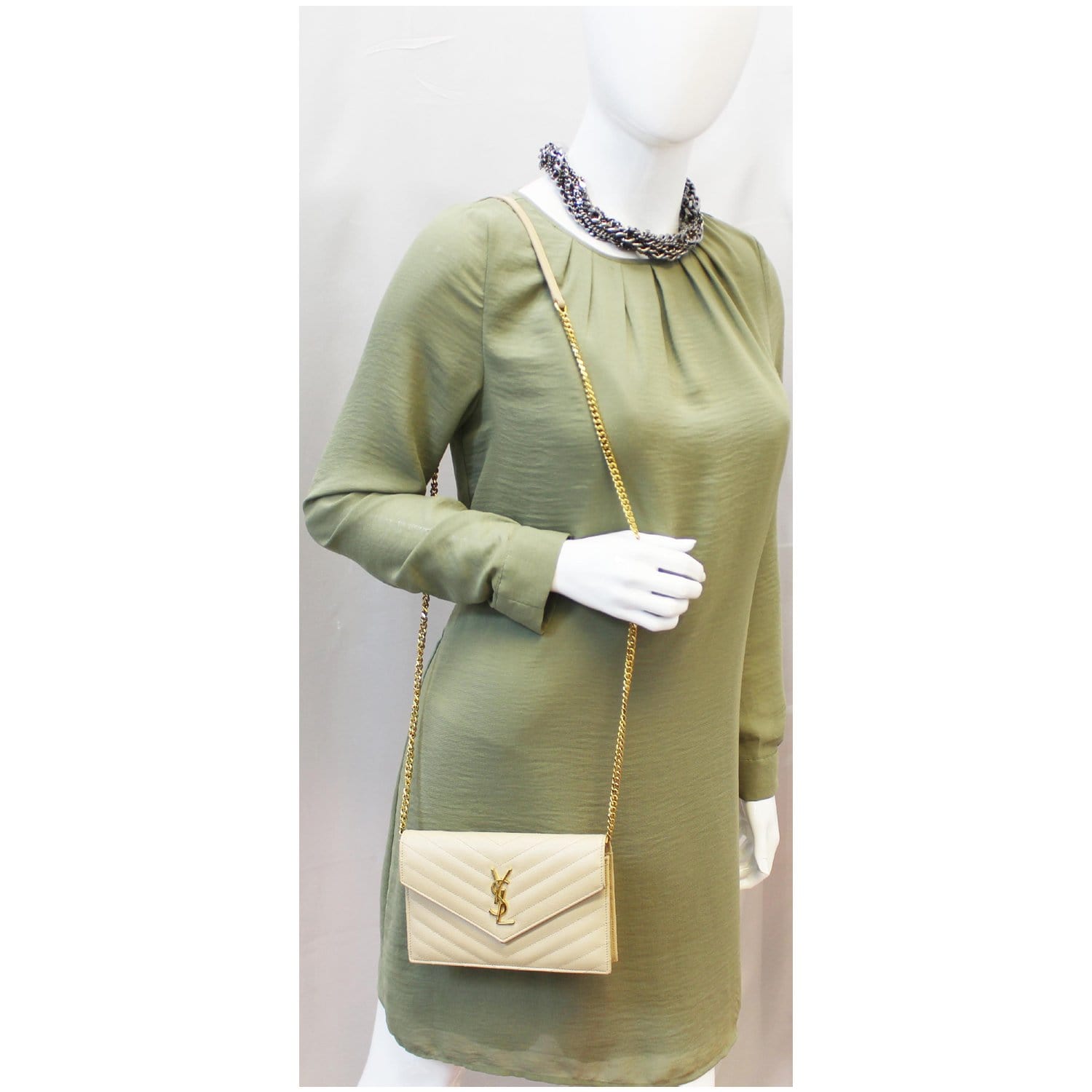 SAINT LAURENT Grain De Poudre Monogram Chain Wallet Powder