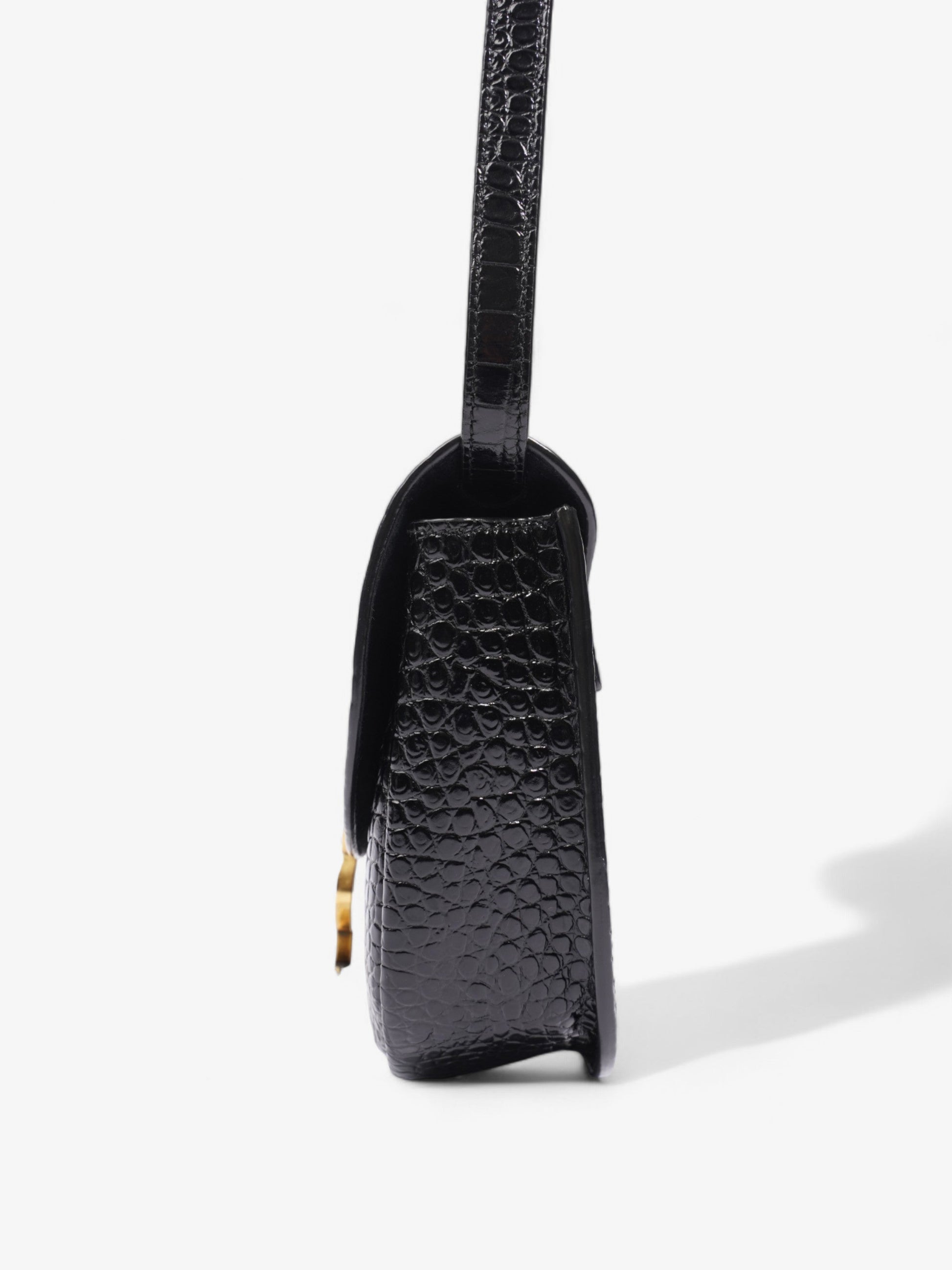 Saint Laurent Kaia Shoulder Bag Black Embossed Leather Small