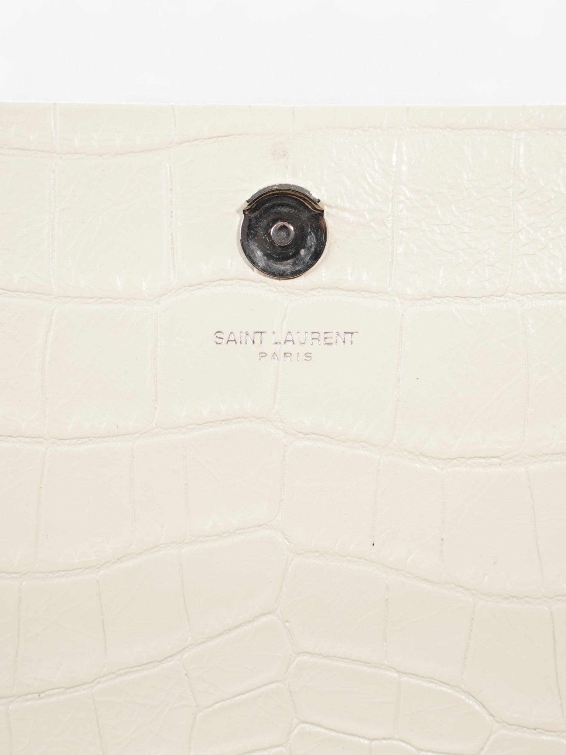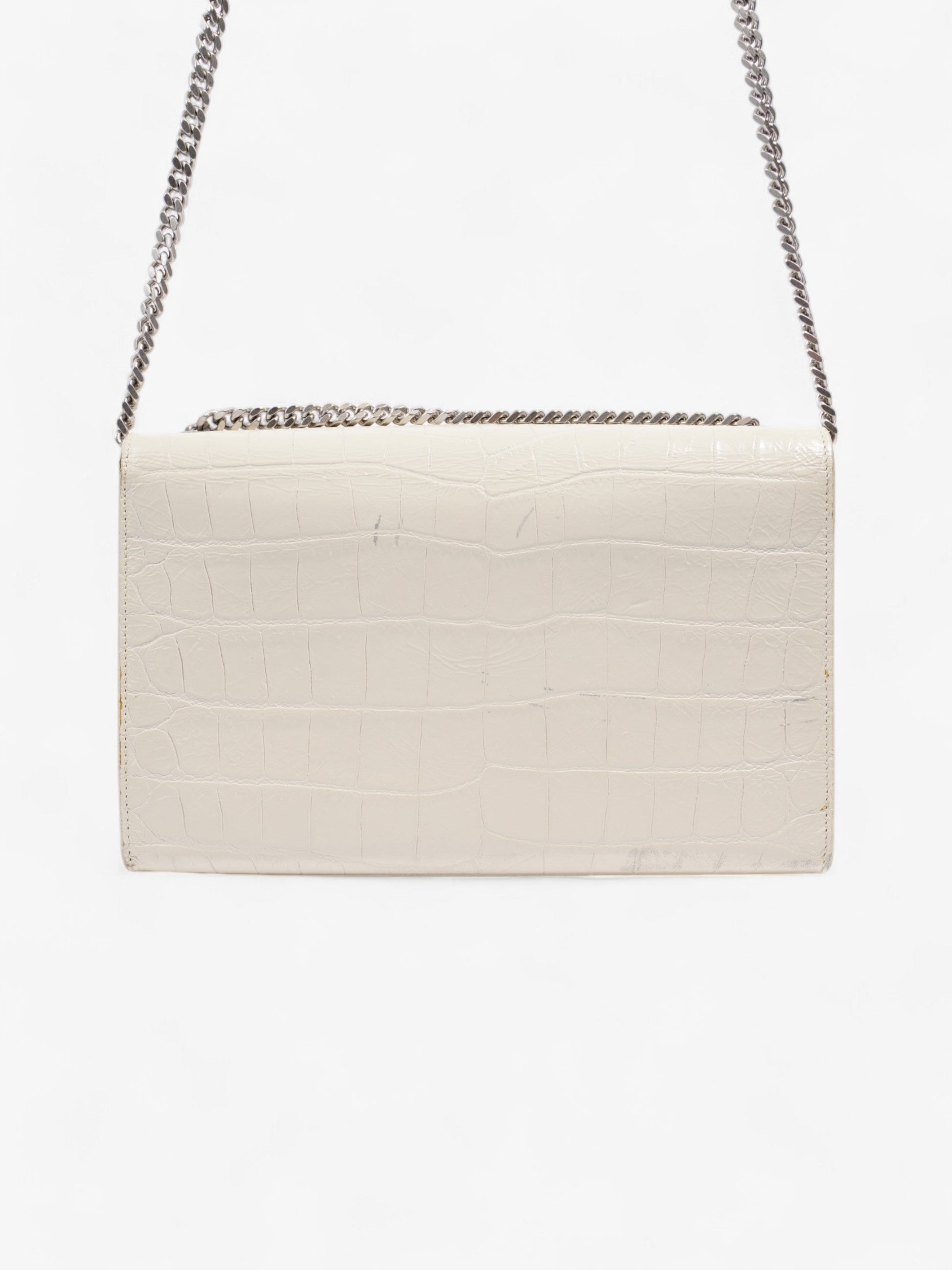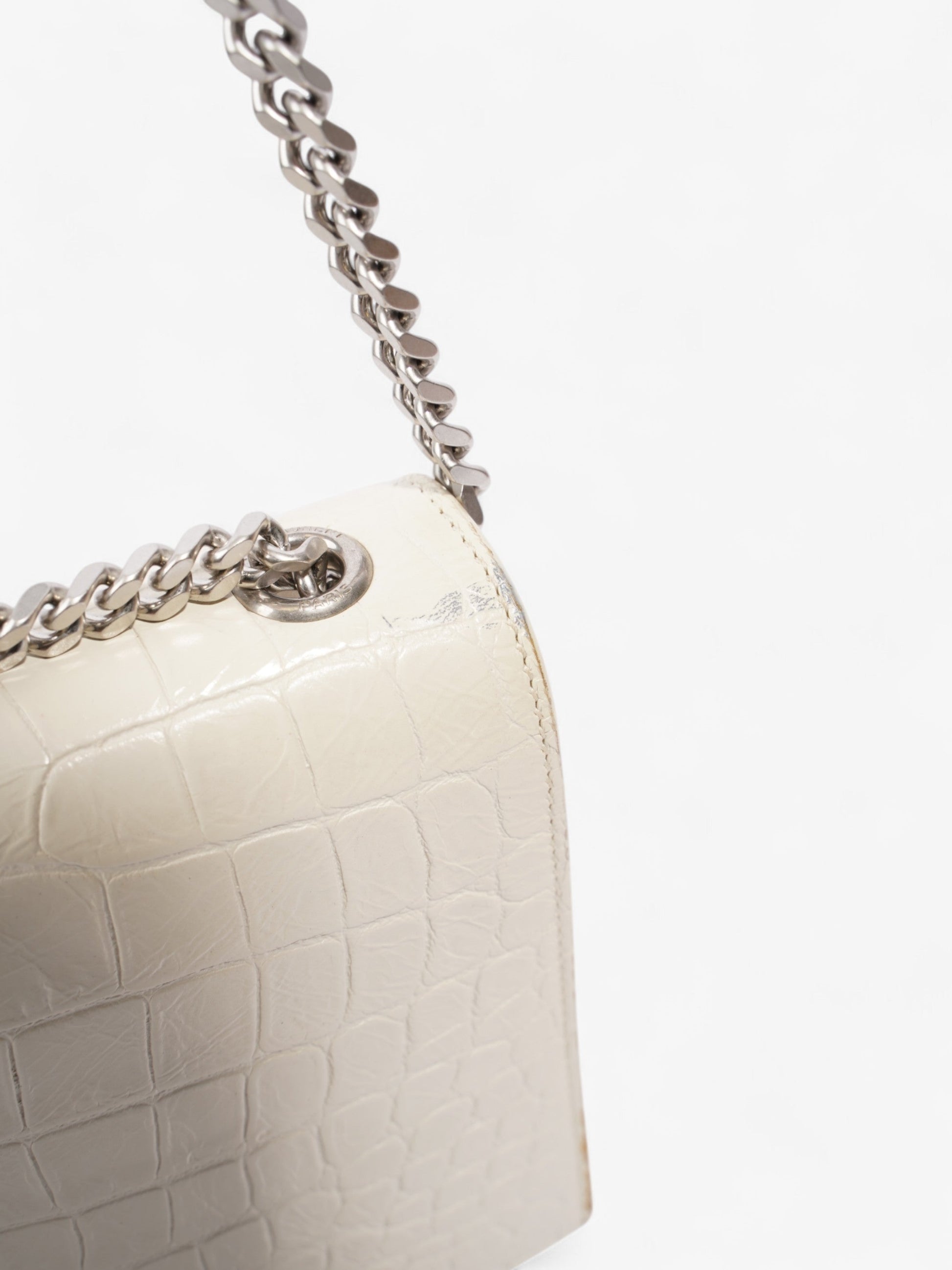 Saint Laurent Kate Tassel Bag White Embossed Leather Medium