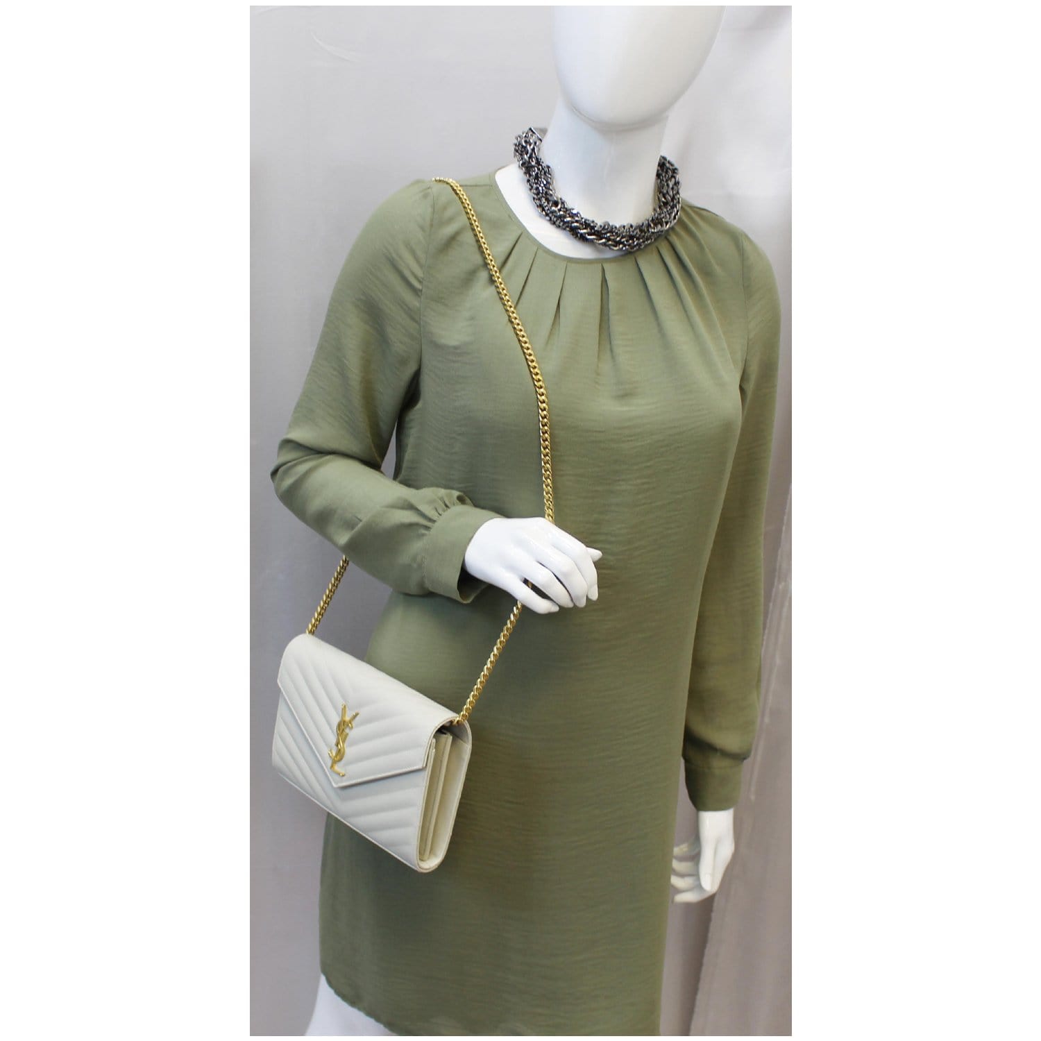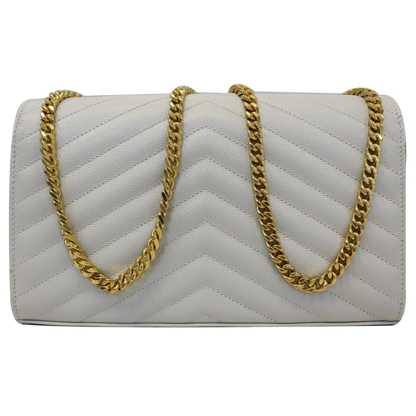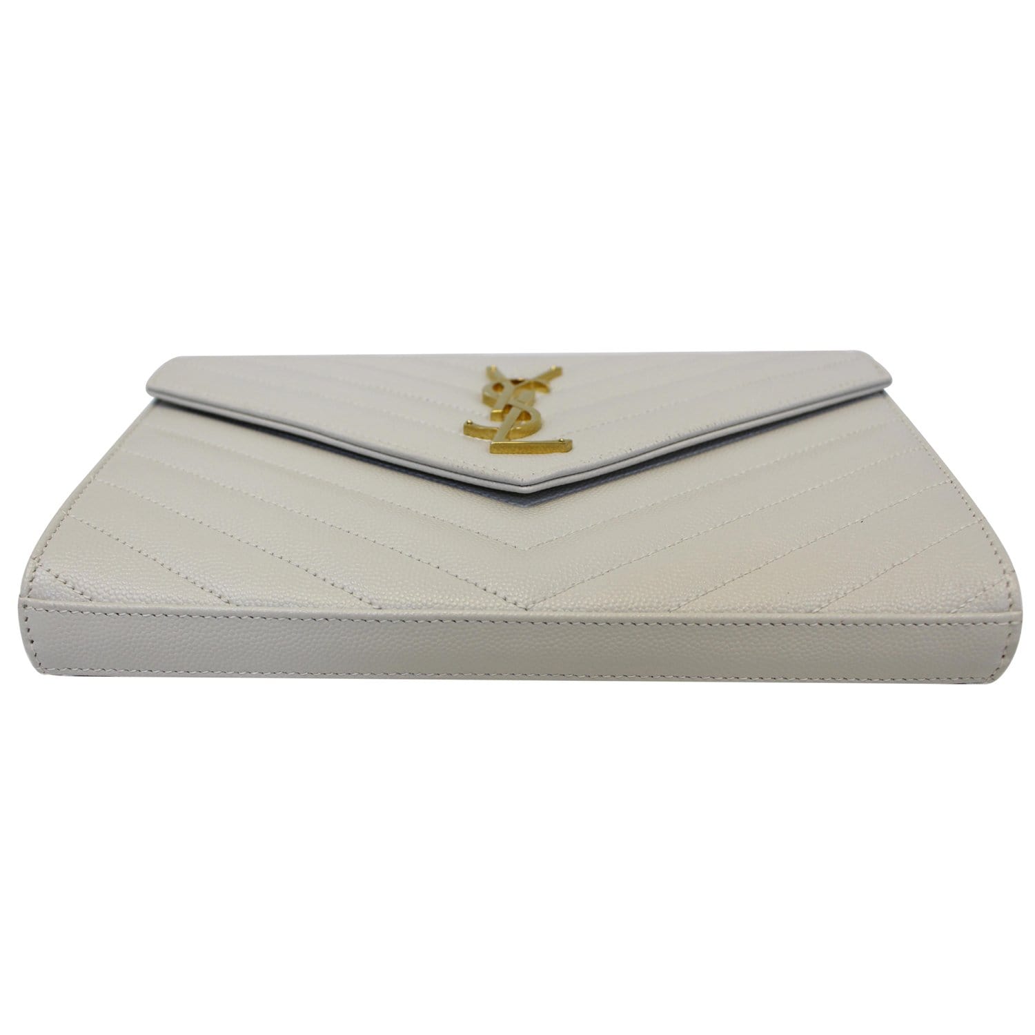 YVES SAINT LAURENT Matelasse Chevron Grain De Poudre Envelope Chain Wallet White