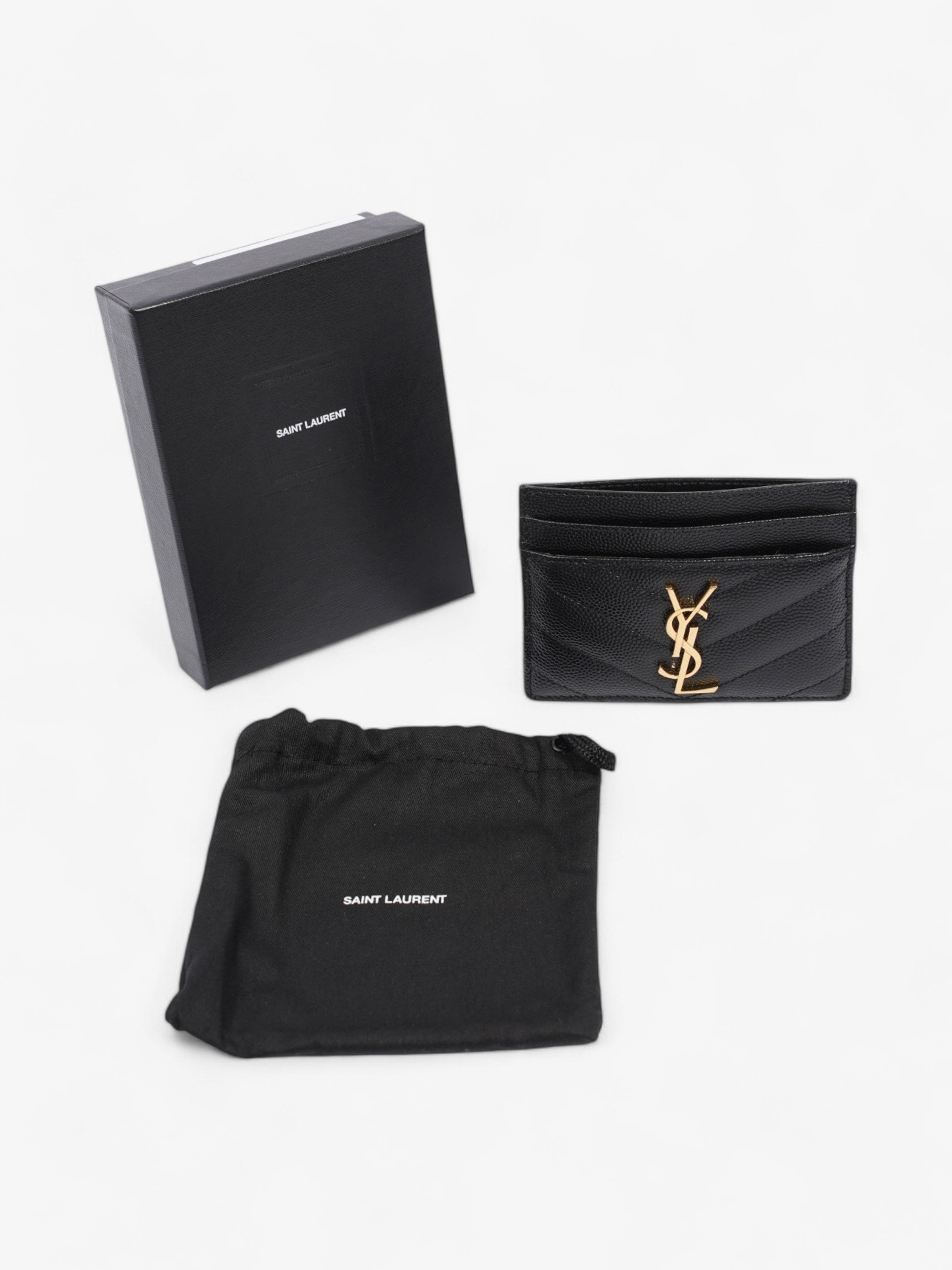 Saint Laurent Monogram Card Holder Black / Gold Grained Leather