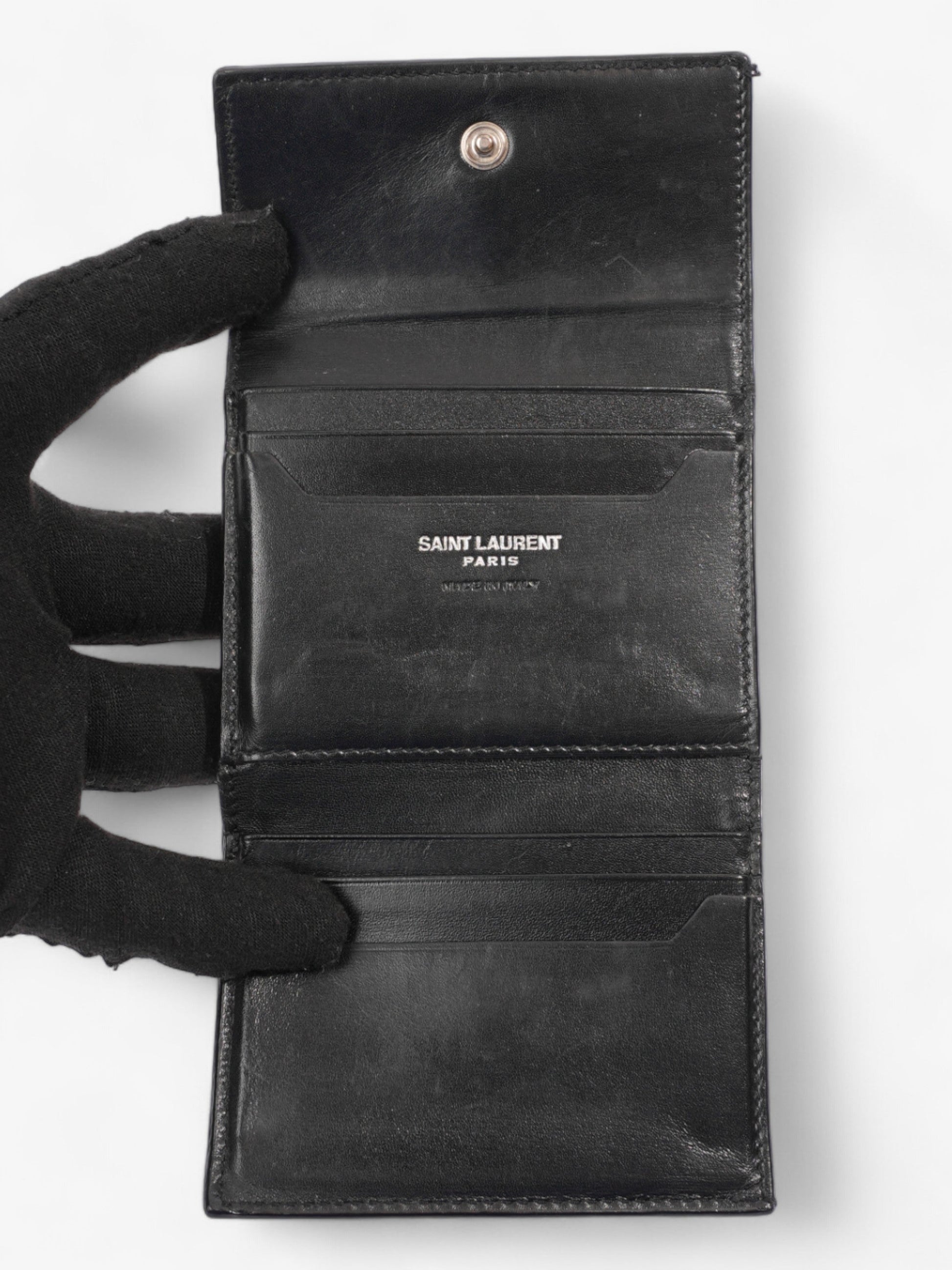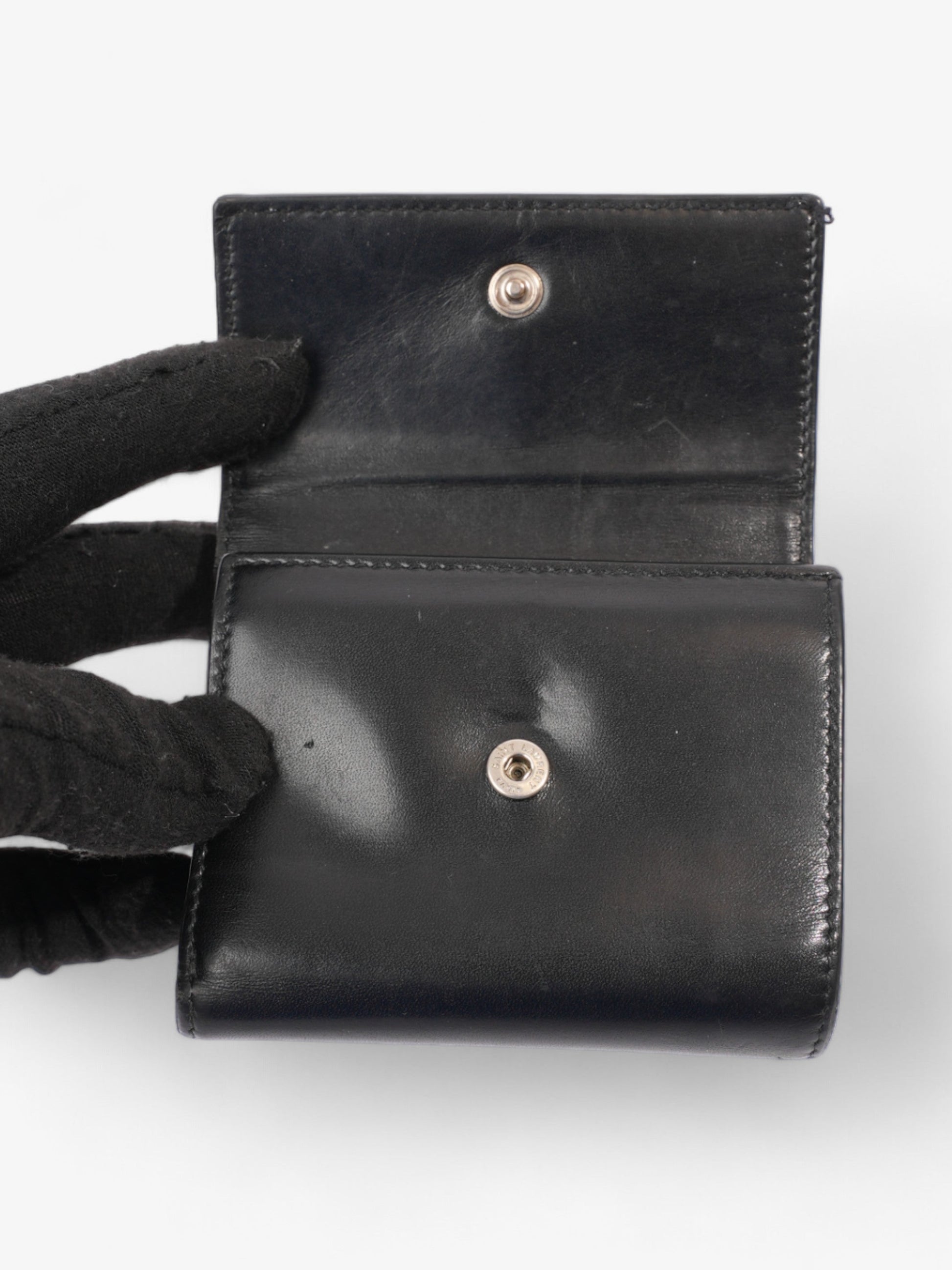 Saint Laurent Monogram Compact Wallet Black / Silver Leather